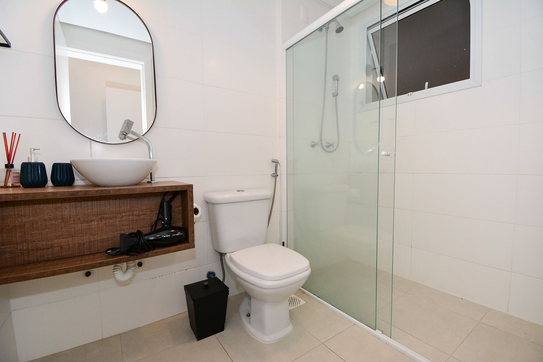 • Banheiro privativo com box de vidro, chuveiro a gás, toalhas de banho e rosto disponíveis.