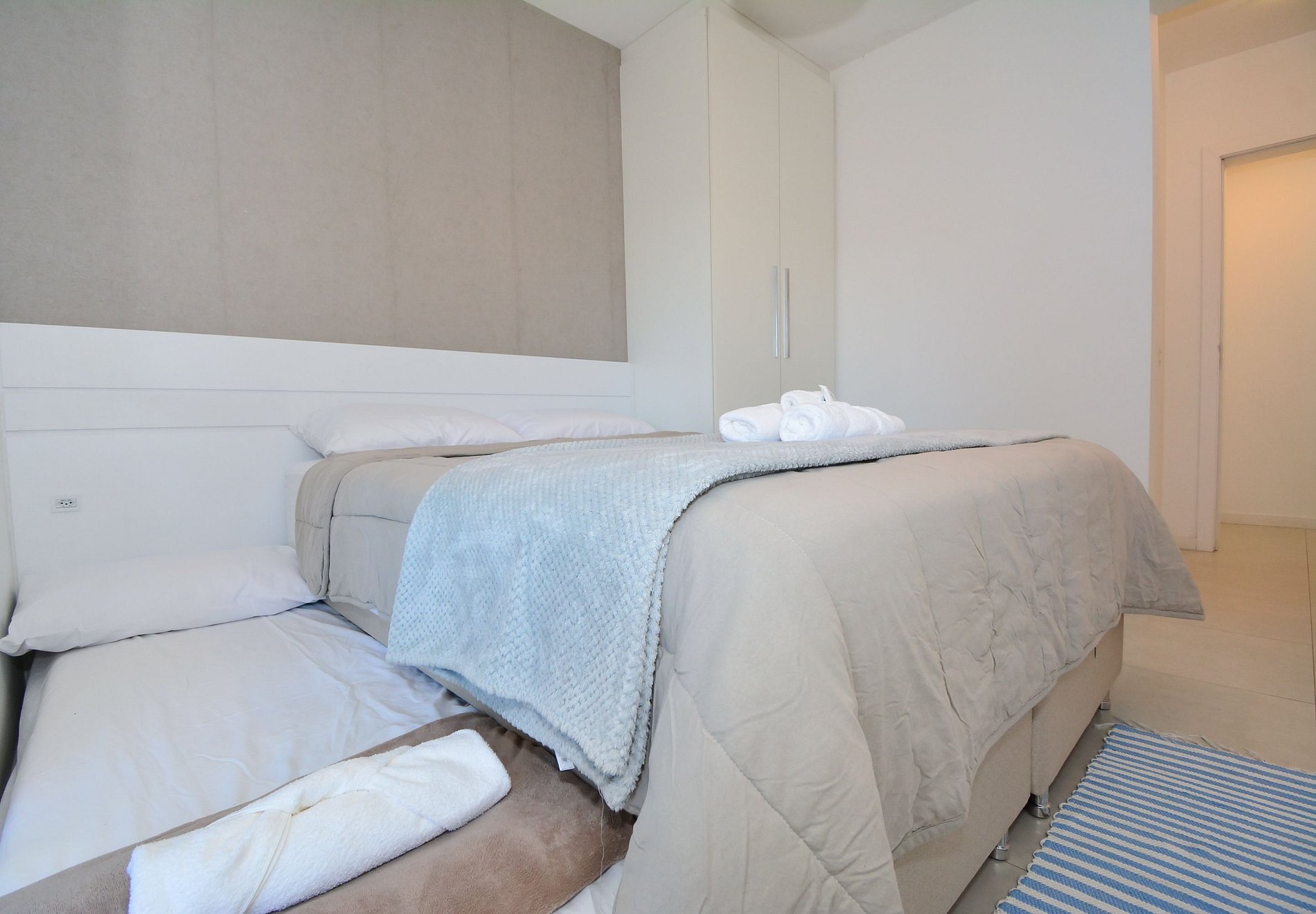 1 suíte com cama de casal + cama auxiliar de solteiro