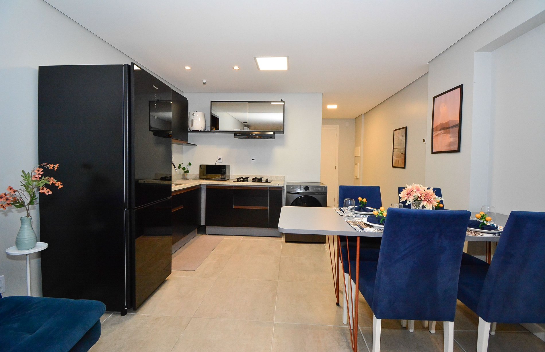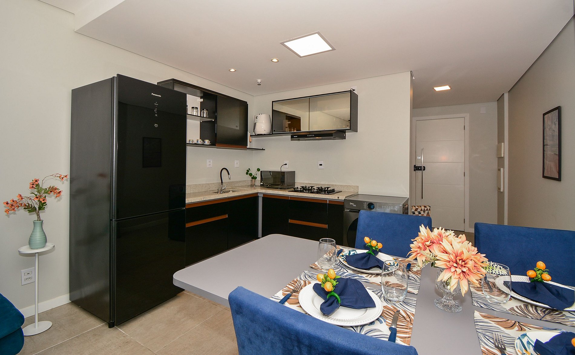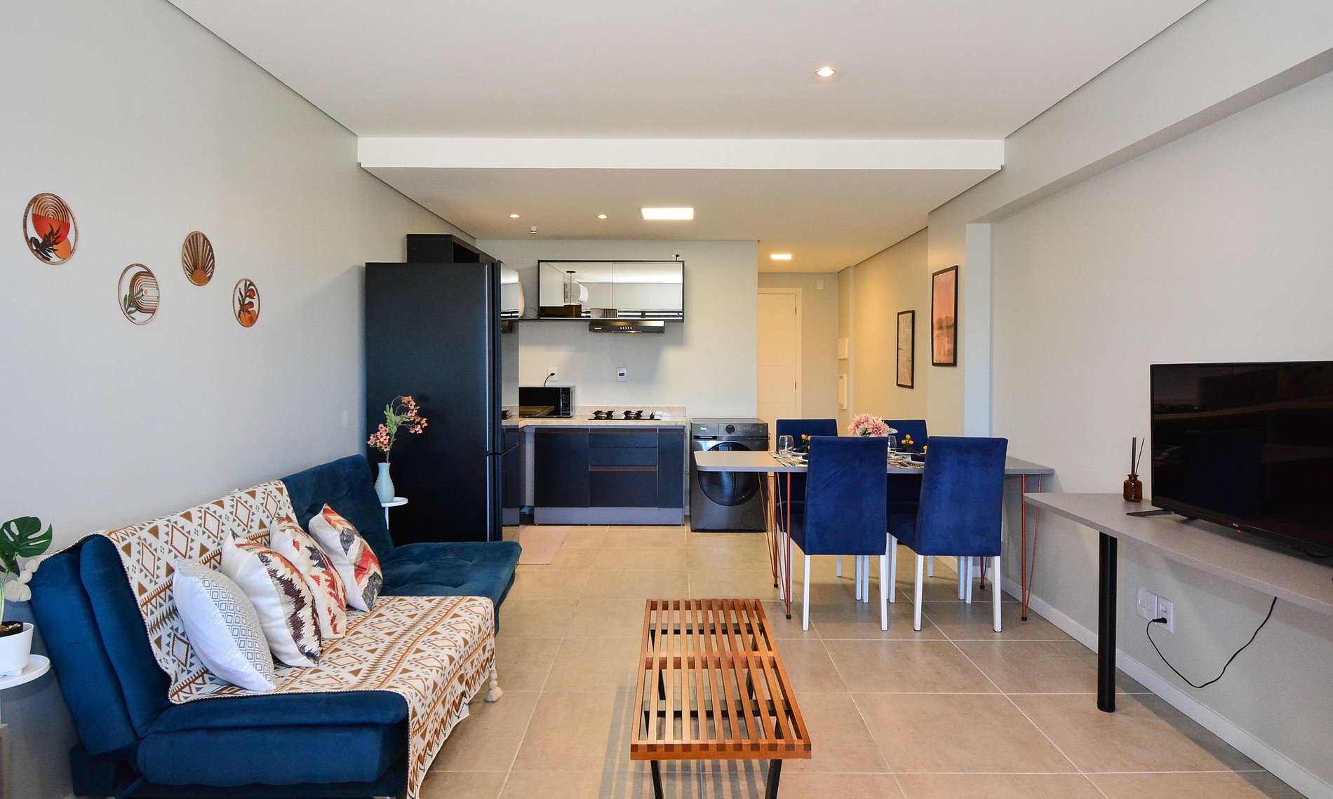 Acomoda até 4 hóspedes, com cama queen e sofá-cama. A cozinha completa permite preparar suas refeições com praticidade, enquanto o ar-condicionado, Wi-Fi e Smart TV garantem comodidade e entretenimento, tornando sua estadia agradável e sem preocupações.
