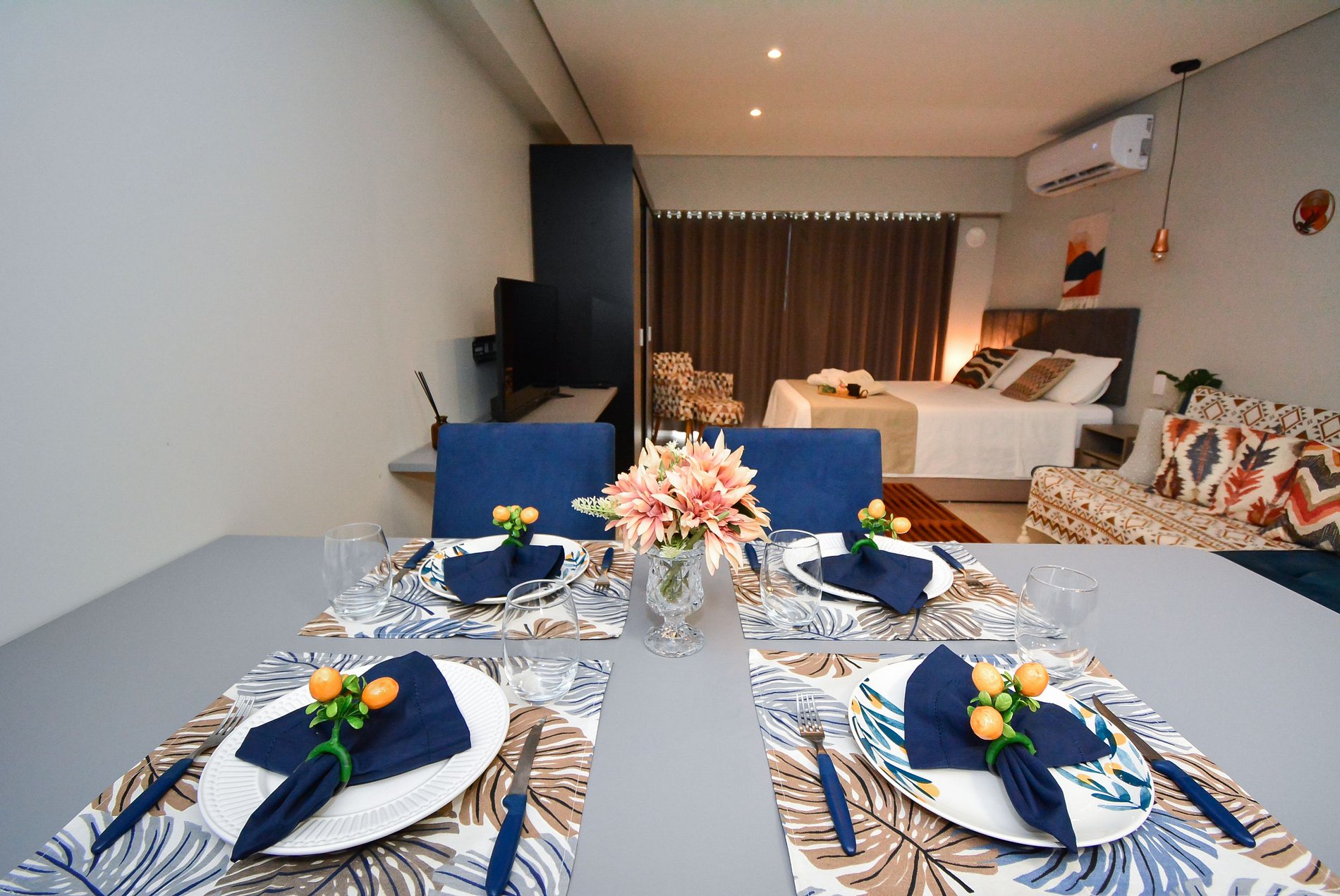 Hospede-se em um empreendimento moderno com lazer completo, piscina de borda infinita, shopping interno e acesso inteligente para uma estadia prática e sofisticada.