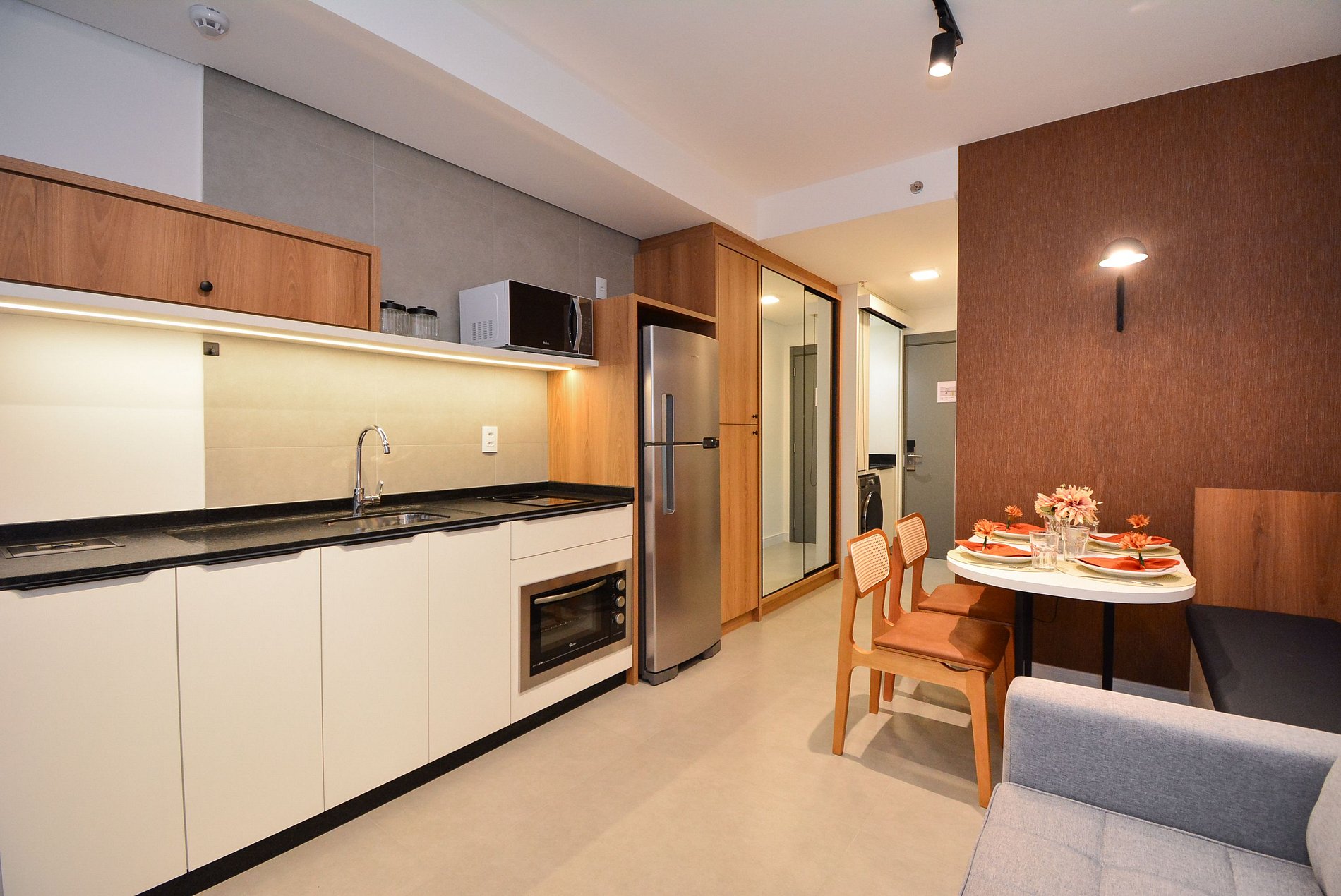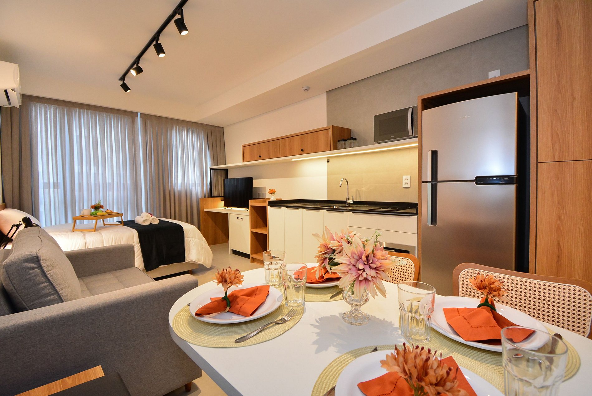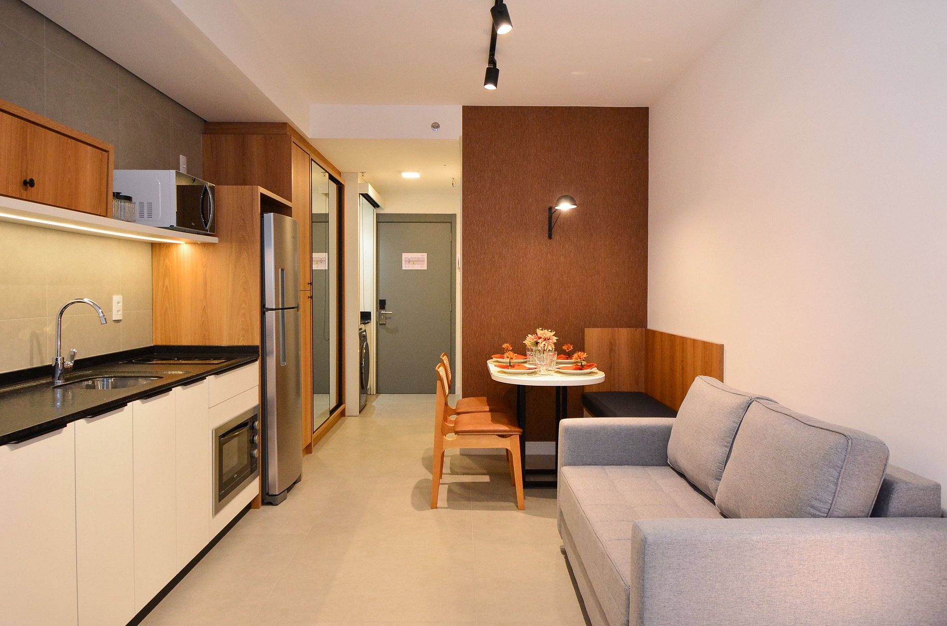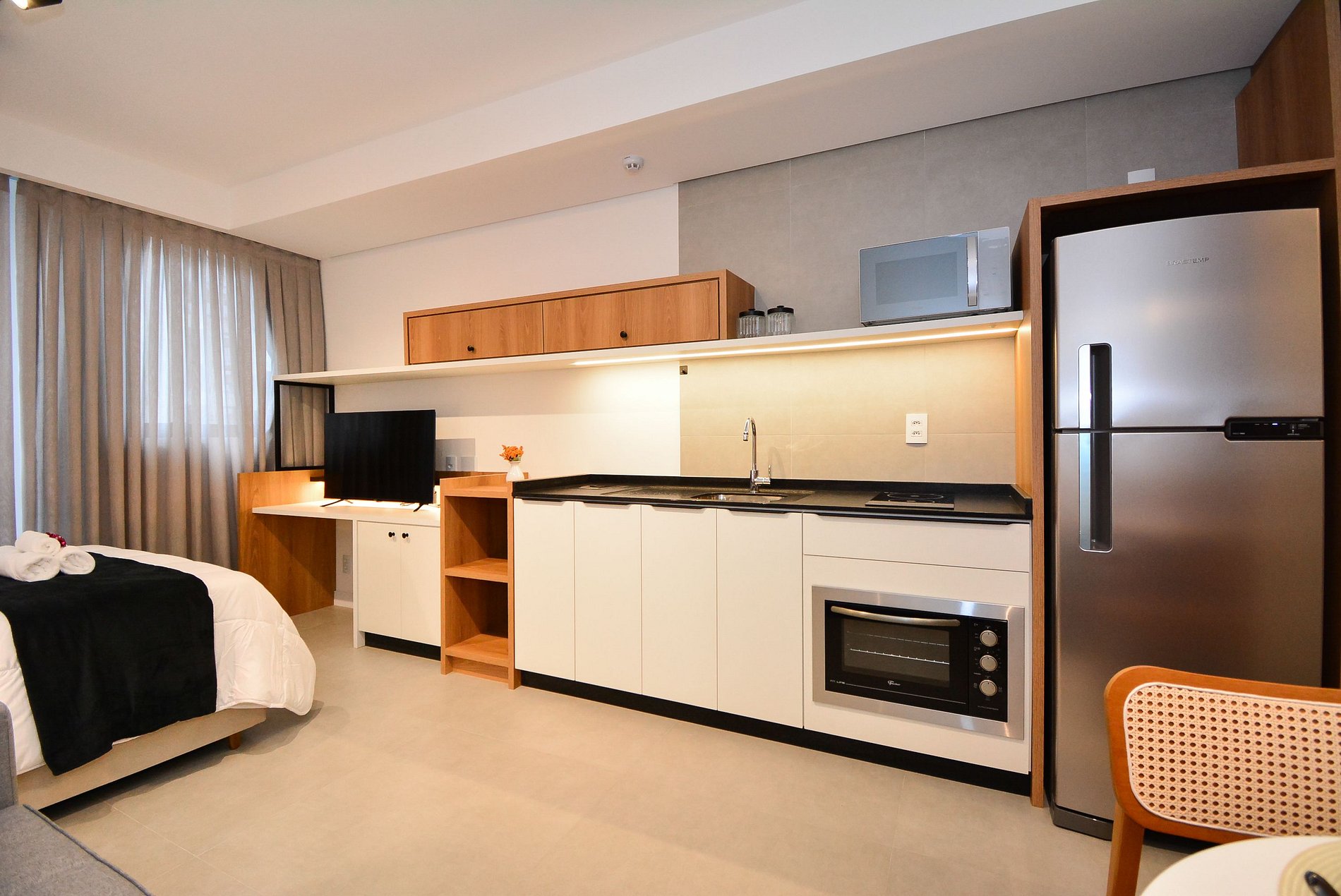 Este studio bem planejado oferece uma estrutura completa para garantir uma estadia prática e confortável. Um espaço que une charme, funcionalidade e comodidade, ideal para quem busca se sentir em casa.