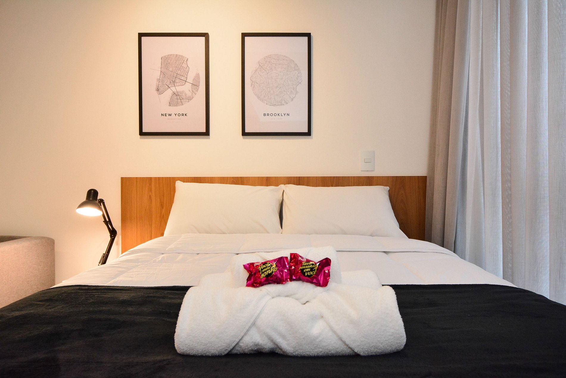 O acesso ao studio é feito por meio de fechadura eletrônica com senha personalizada, enviada antes da chegada, dispensando o uso de chaves físicas e oferecendo ainda mais praticidade.