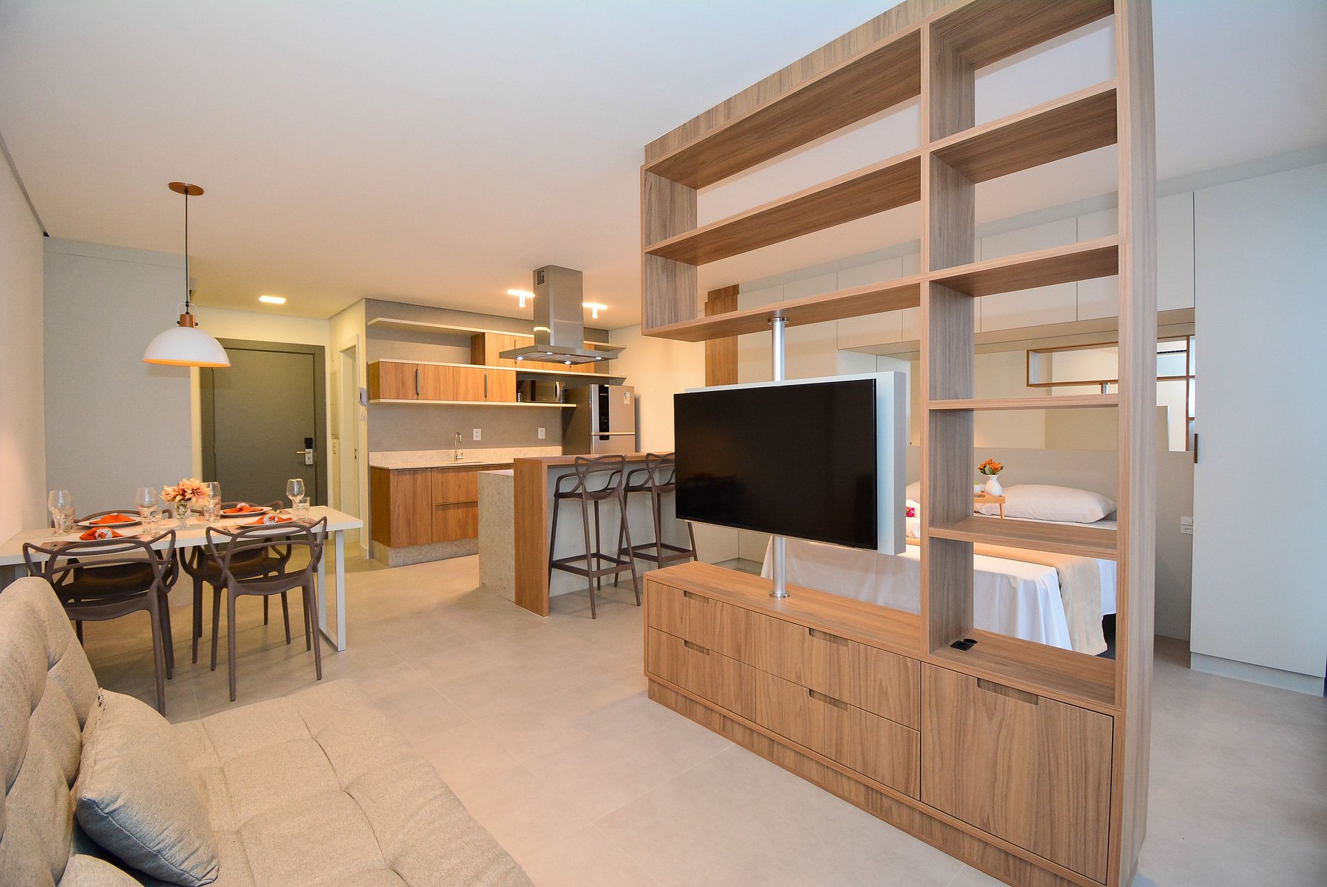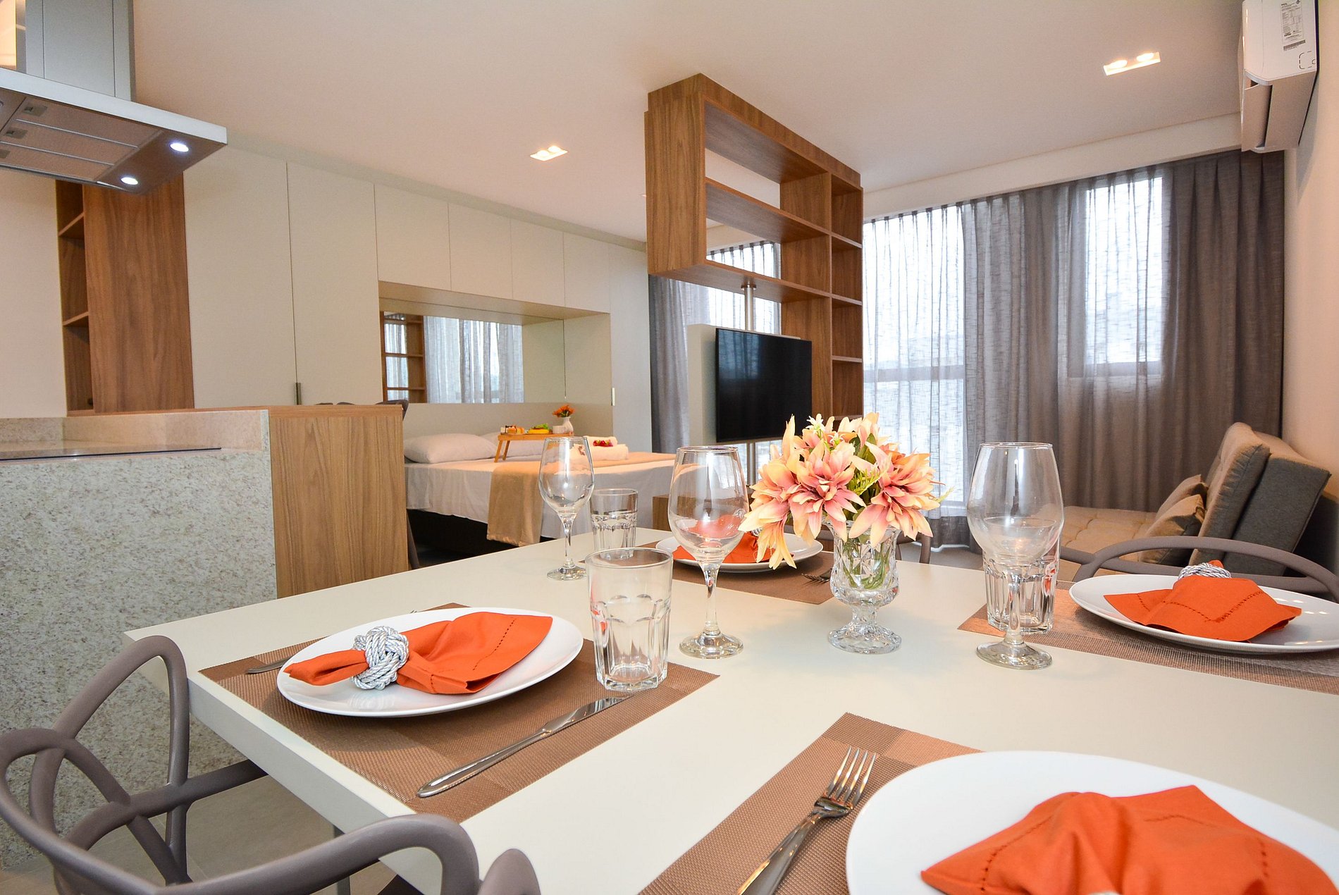 • Ar-condicionado, smart TV, roupeiro e armários organizadores