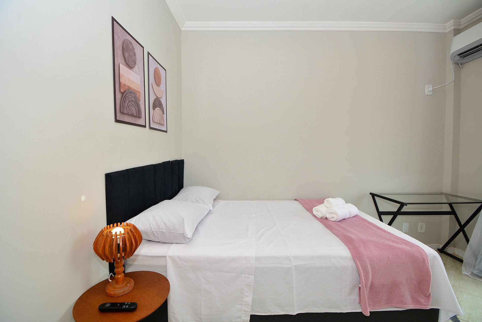 O apartamento possui ambientes bem distribuídos e funcionais. São 2 quartos com cama de casal, sendo uma suíte, além de um banheiro social.