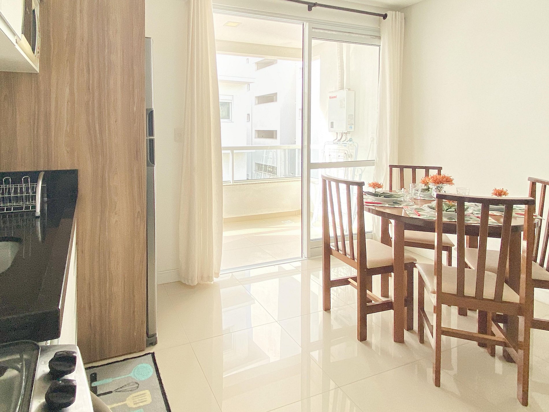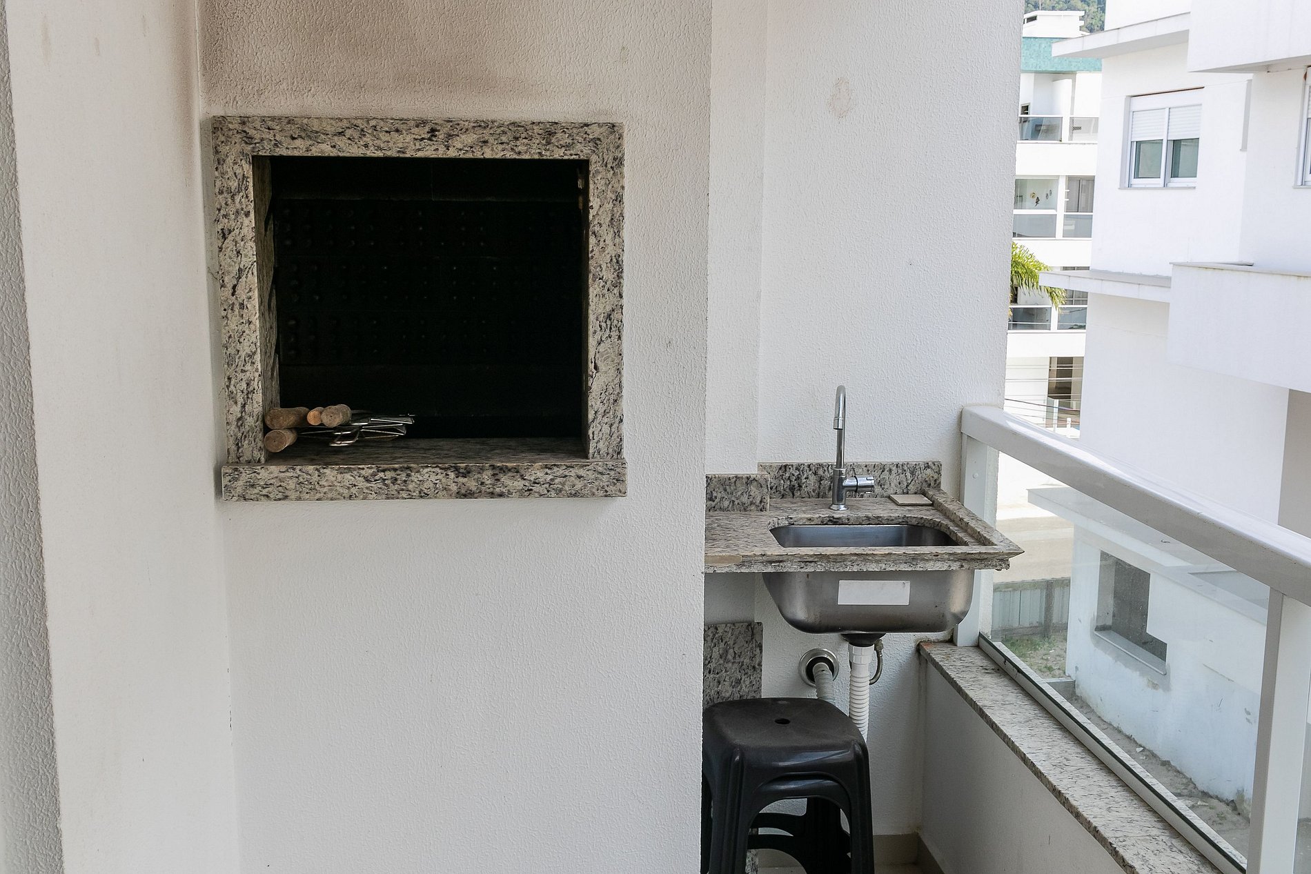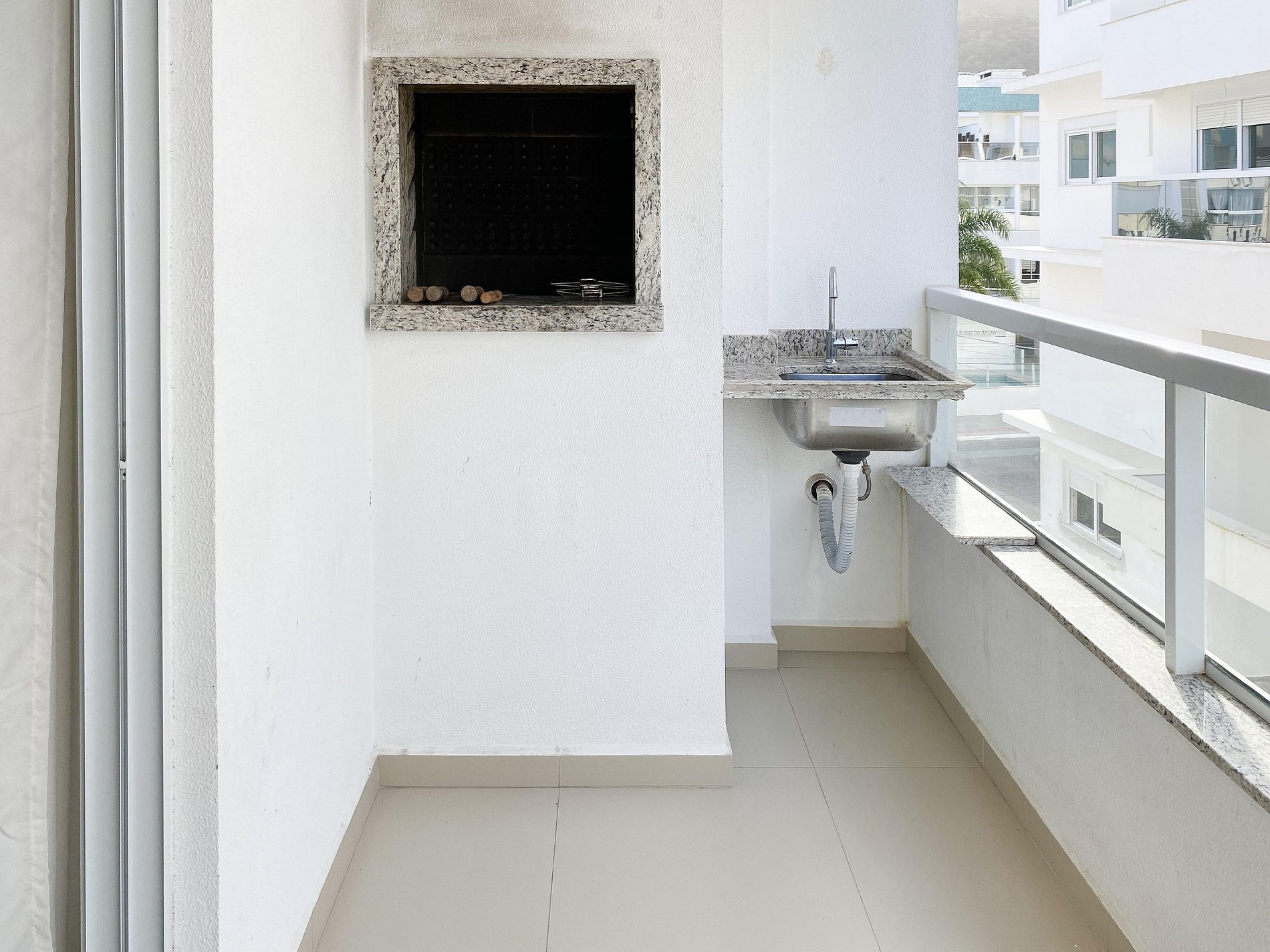 A cozinha está totalmente equipada para suas necessidades culinárias, e a sacada inclui uma churrasqueira para desfrutar de momentos de convívio.