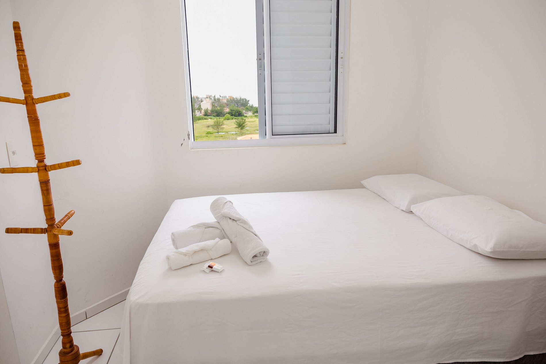 Nosso apartamento é espaçoso e acolhedor, proporcionando conforto aos nossos hóspedes com roupas de cama e banho disponíveis para garantir uma estadia aconchegante.