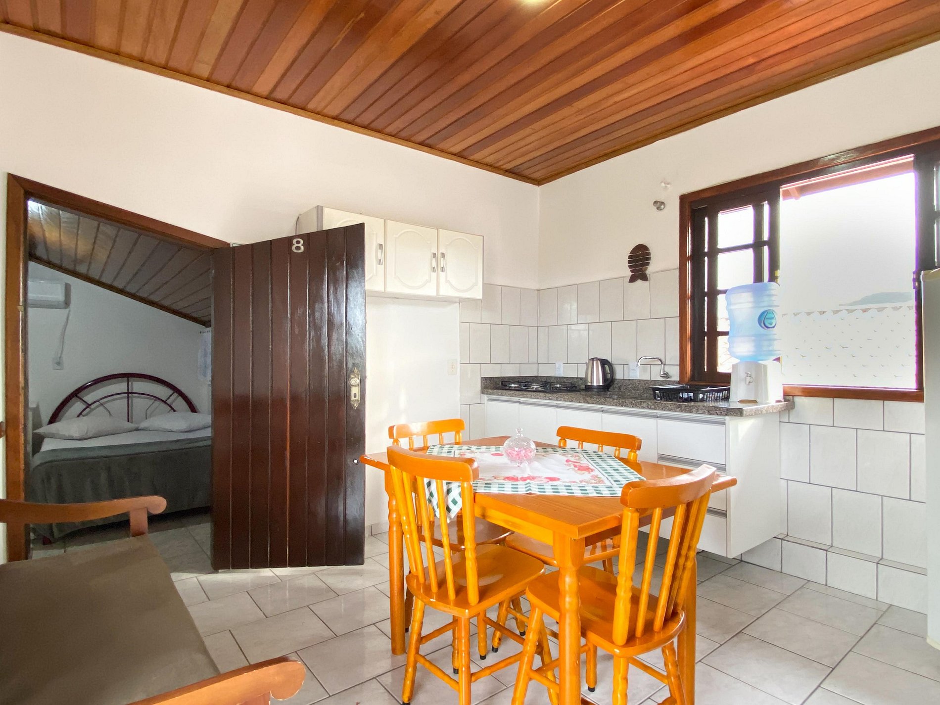 .É um ambiente tranquilo e acolhedor onde os hóspedes escutam o canto dos pássaros ao amanhecer.