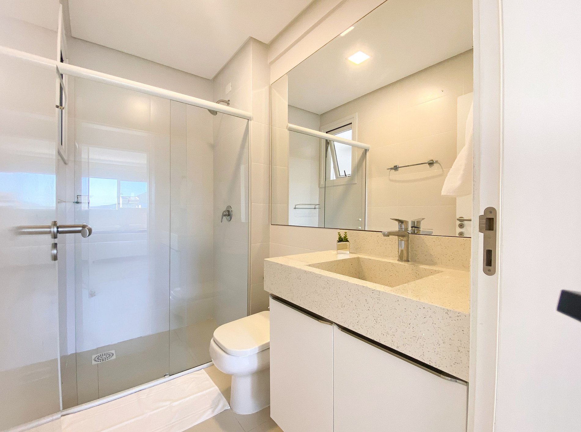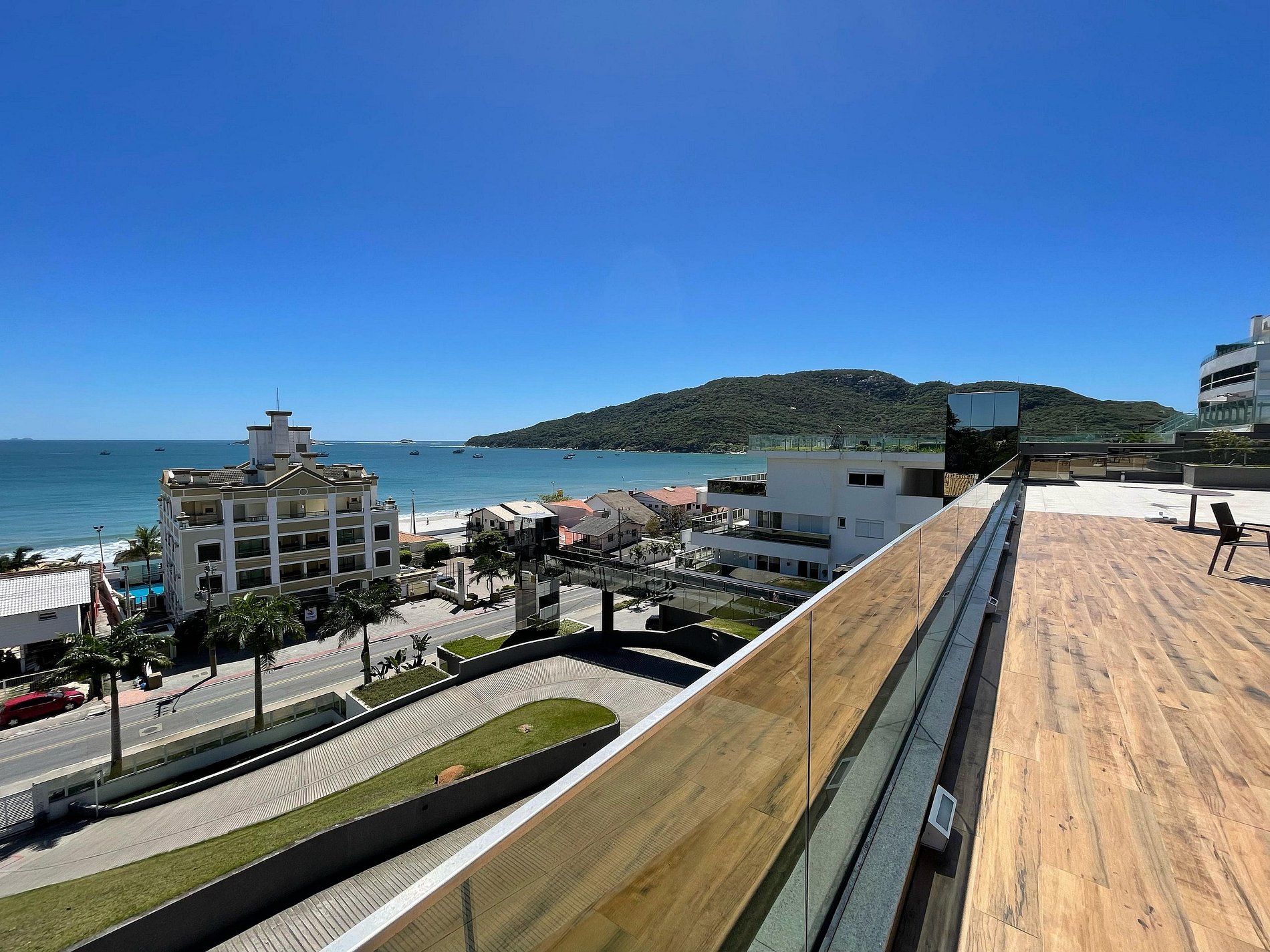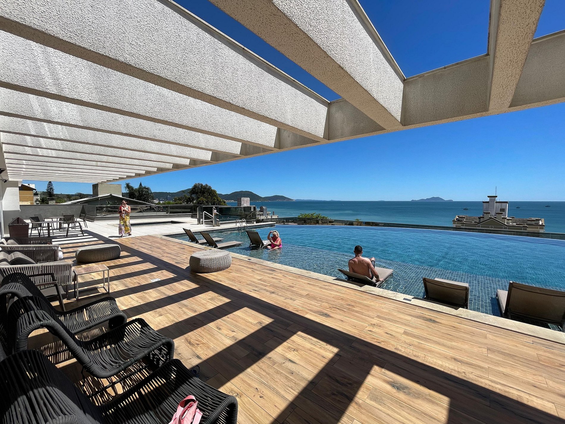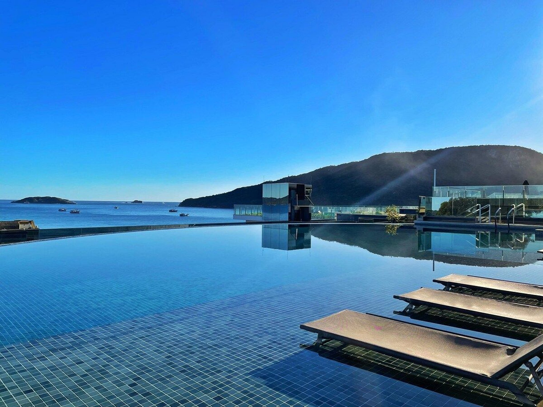 Com piscina de borda infinita e vista deslumbrante, o condomínio conta também uma lavanderia compartilhada e uma loja de conveniência 24h.