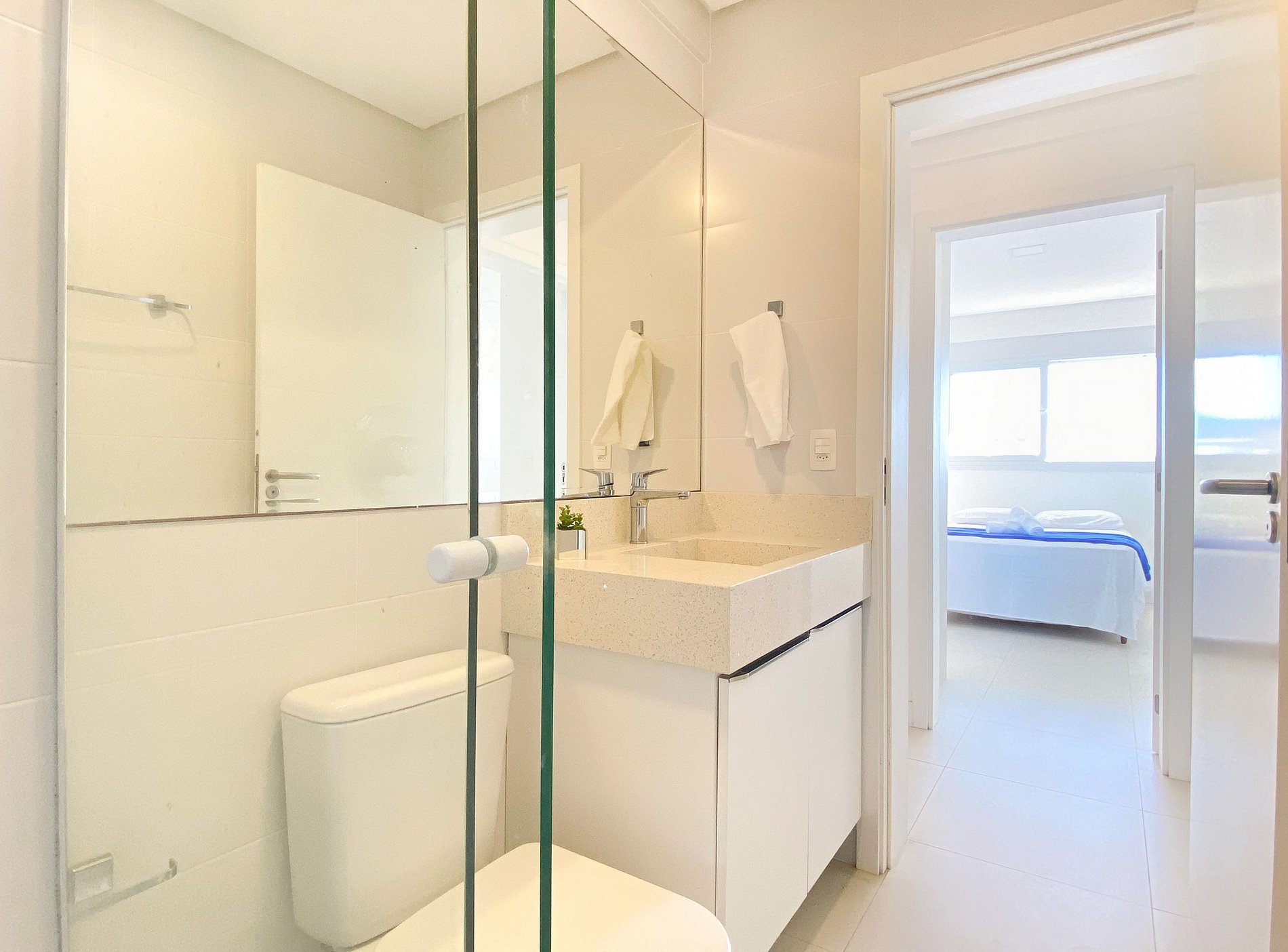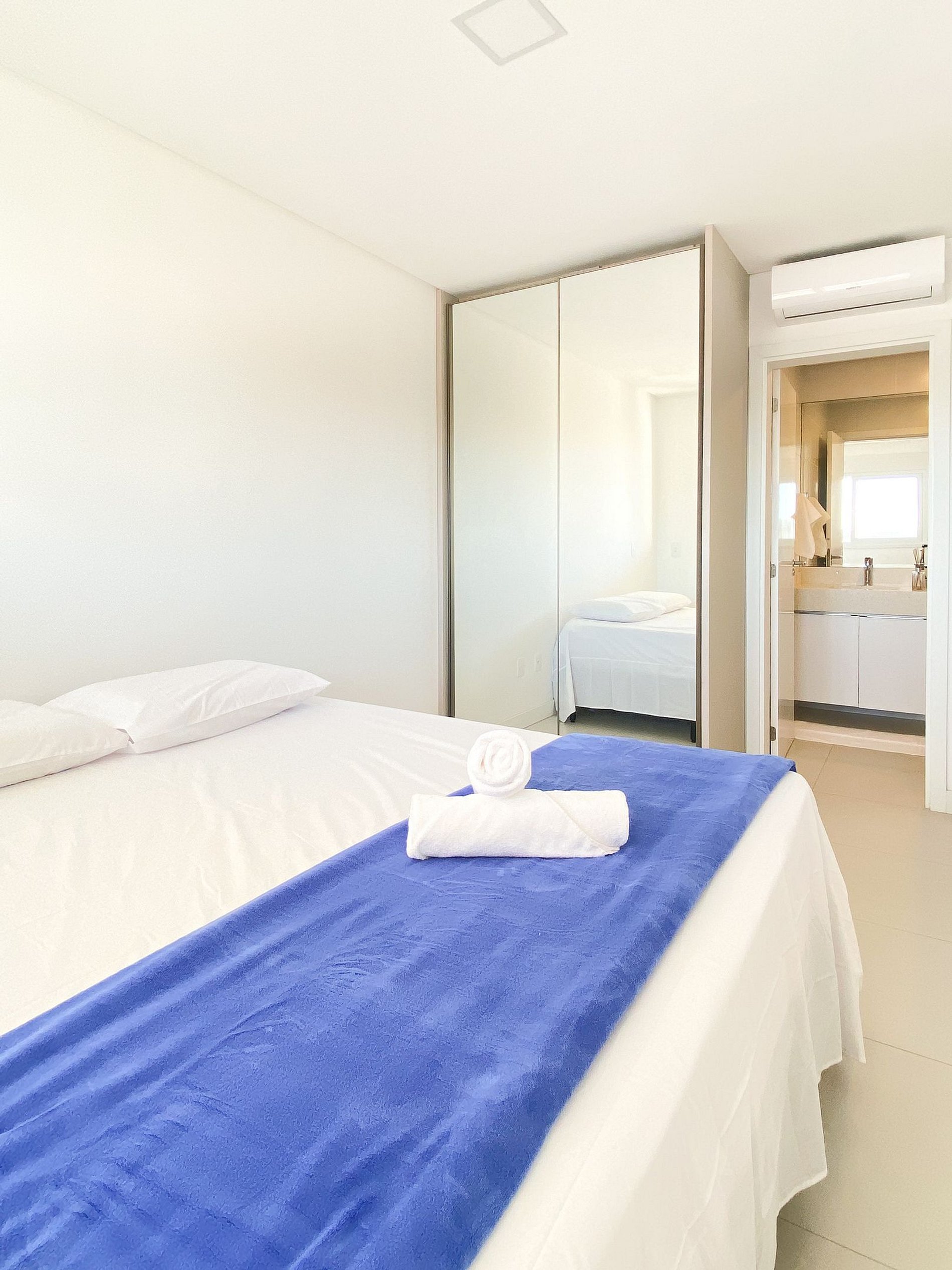 Nosso apartamento fica localizado no bloco D e é espaçoso e acolhedor, proporcionando conforto aos nossos hóspedes com roupas de cama e banho disponíveis para garantir uma estadia aconchegante.