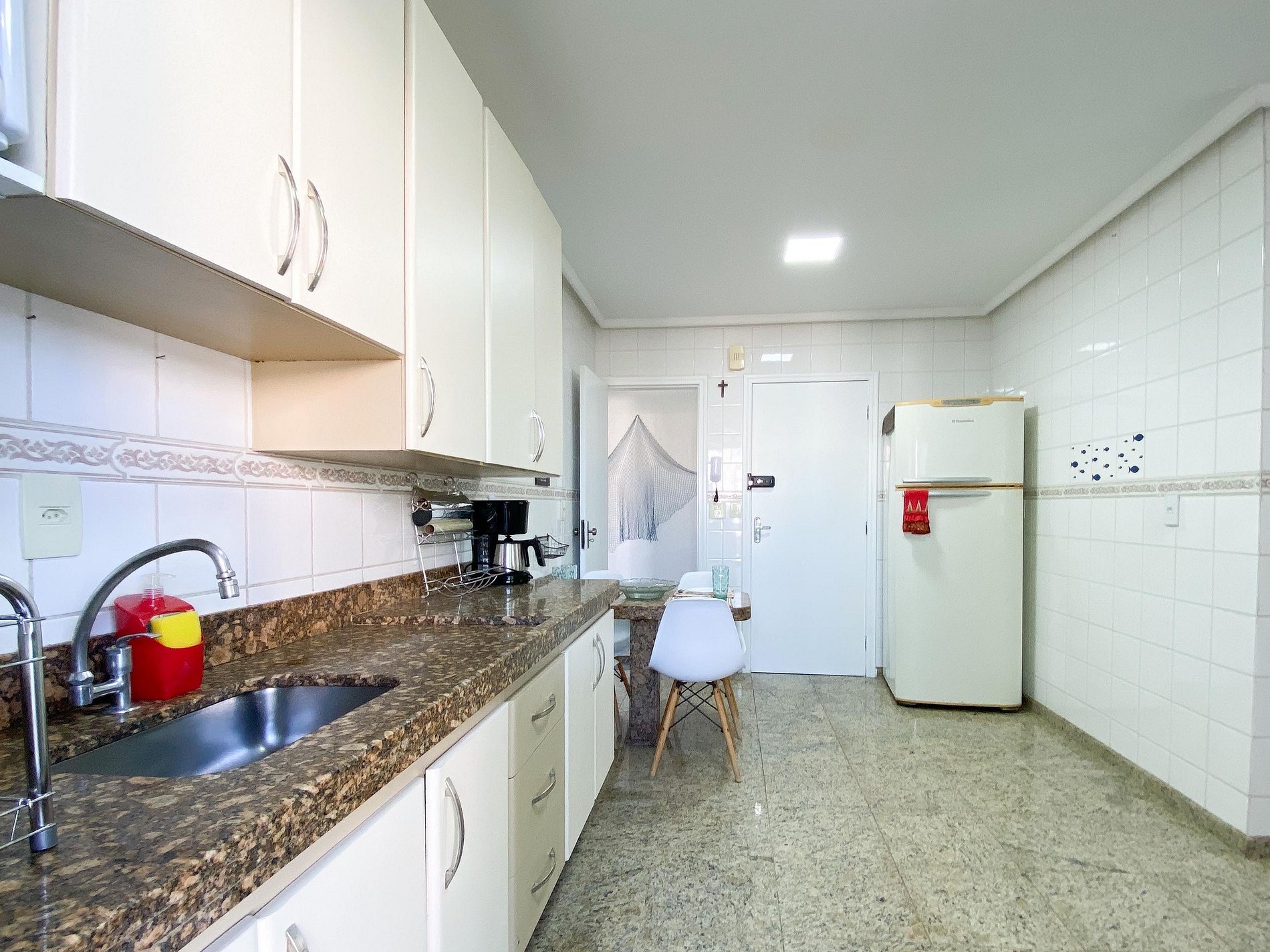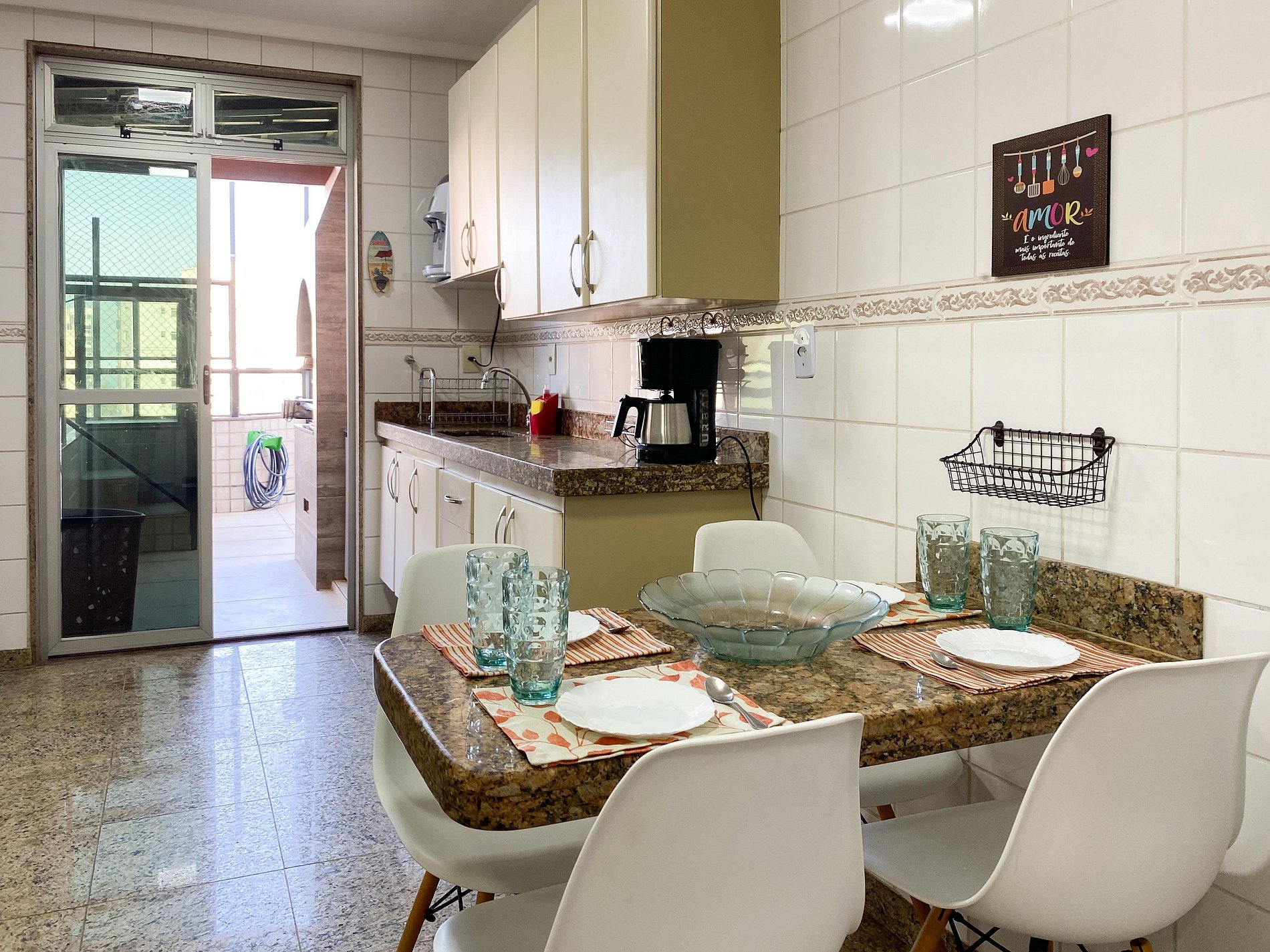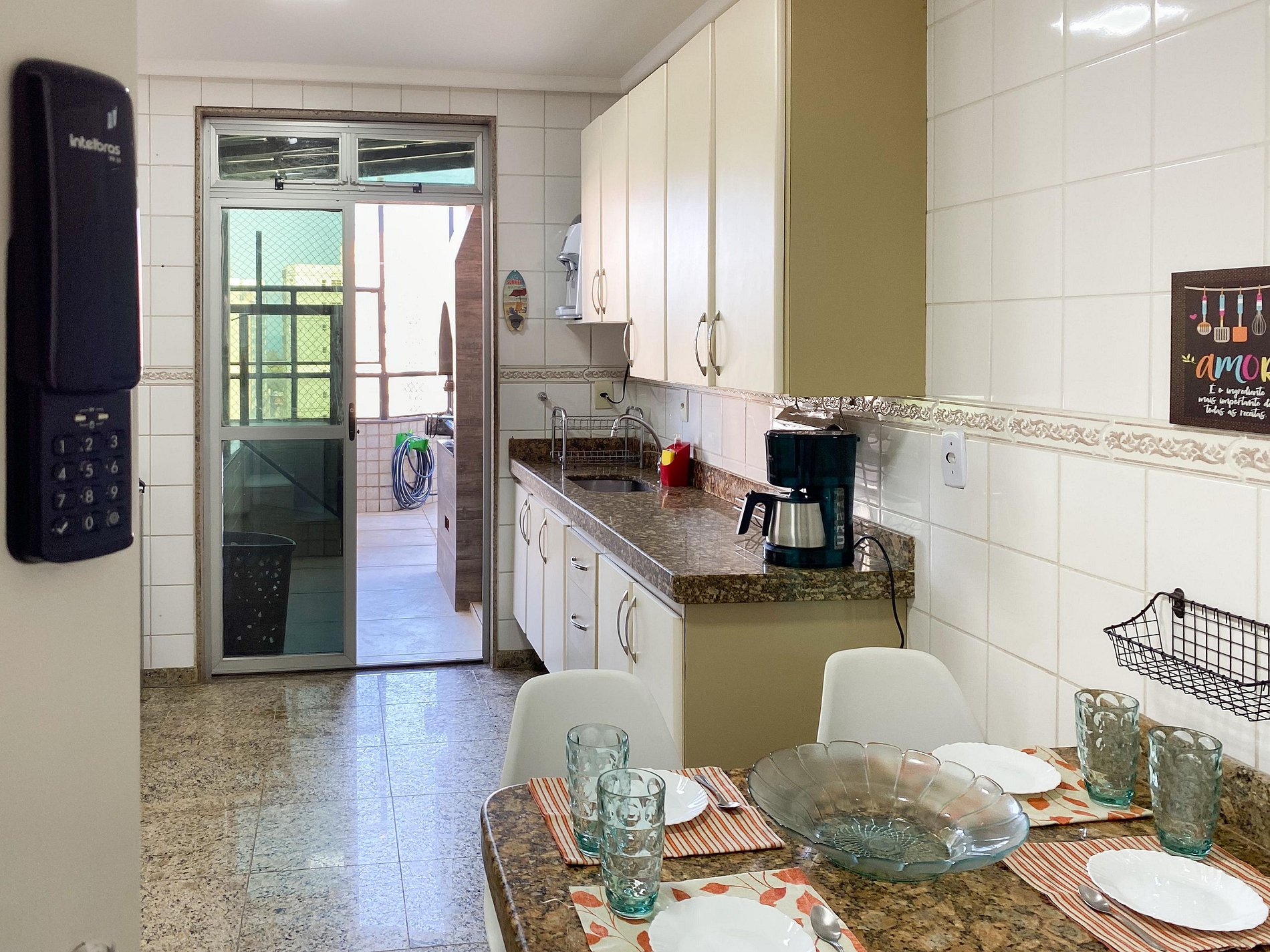 A cozinha é ampla e completa, equipada com todos os utensílios necessários para uma estadia prática.
