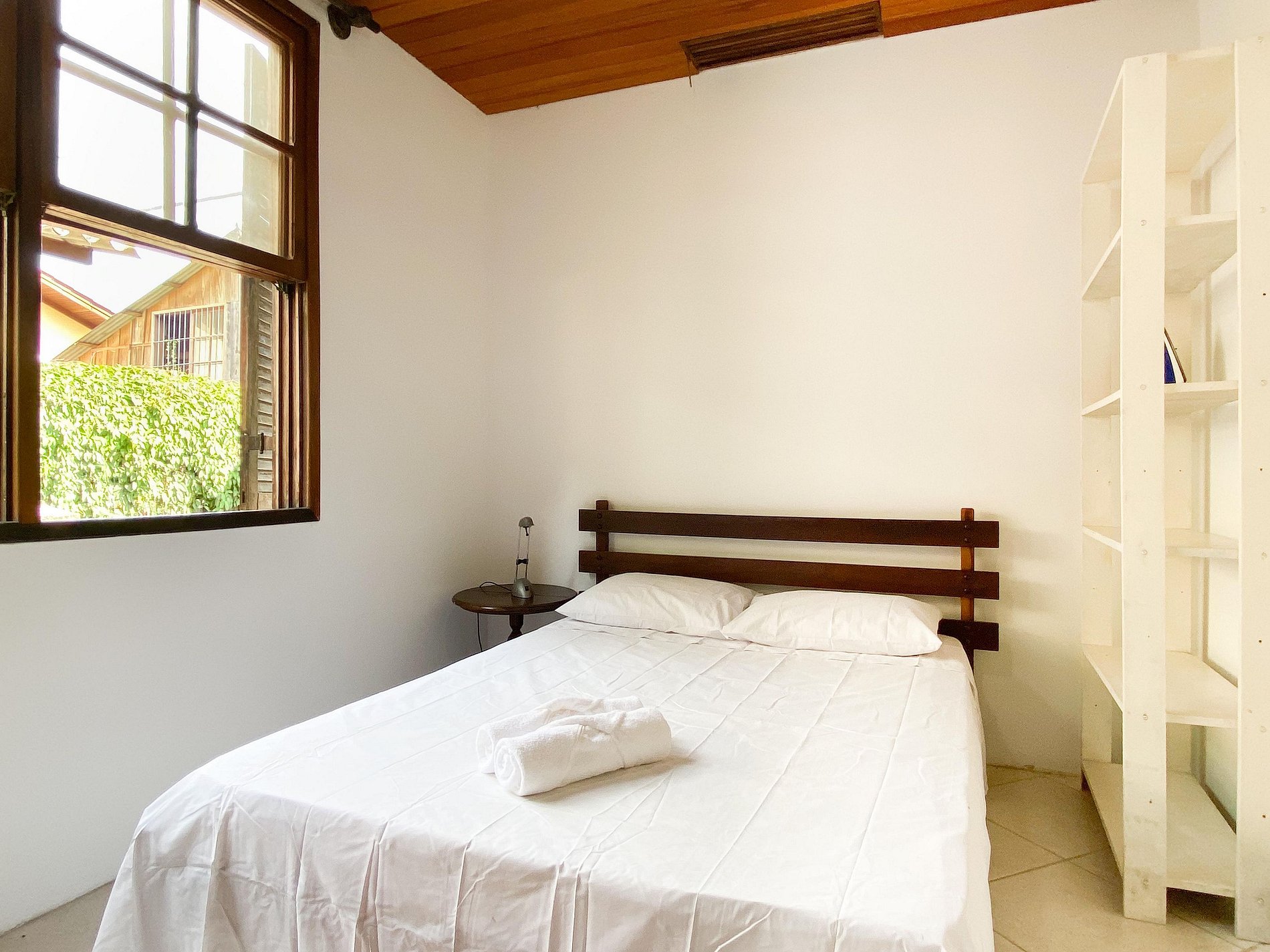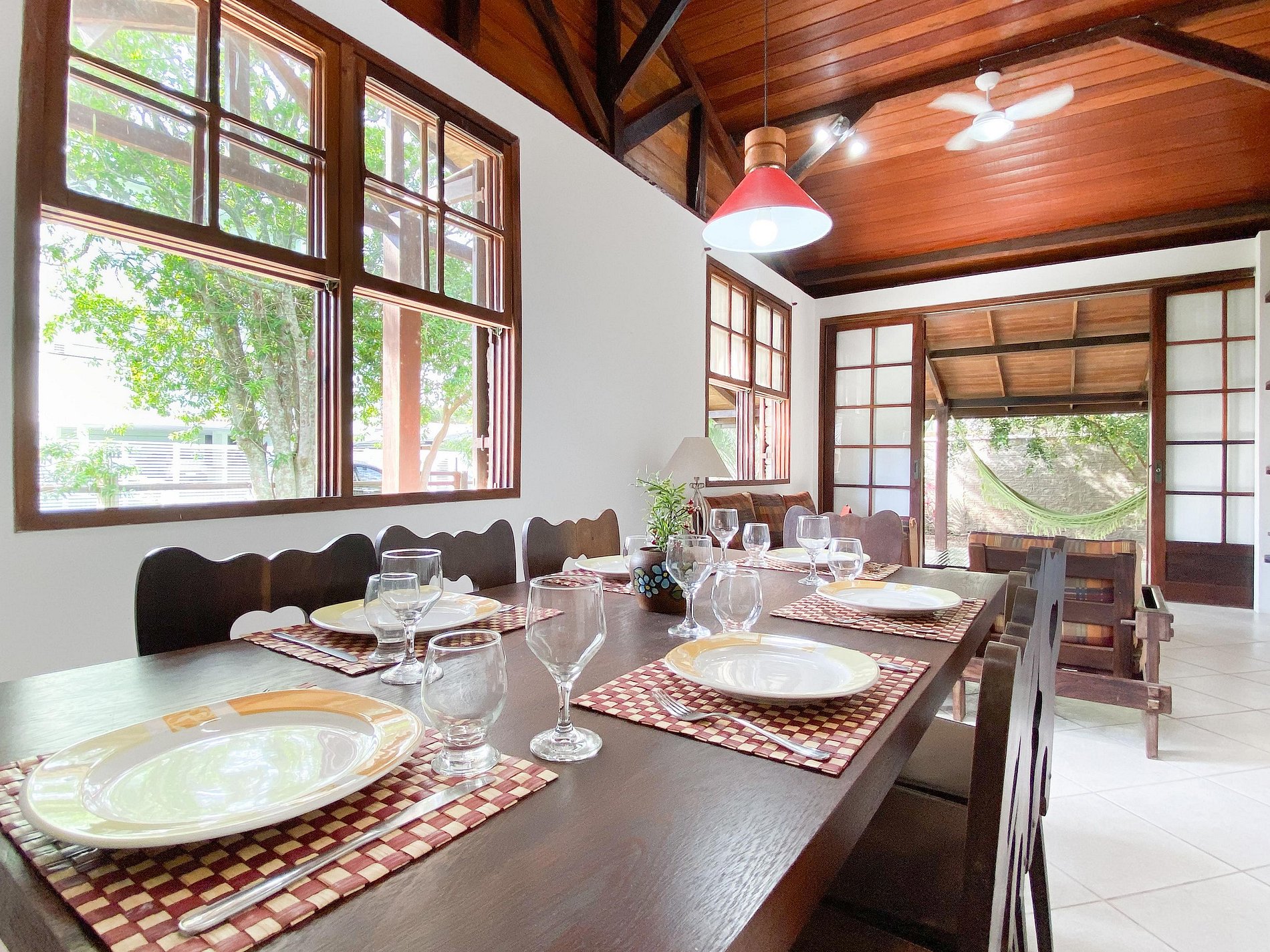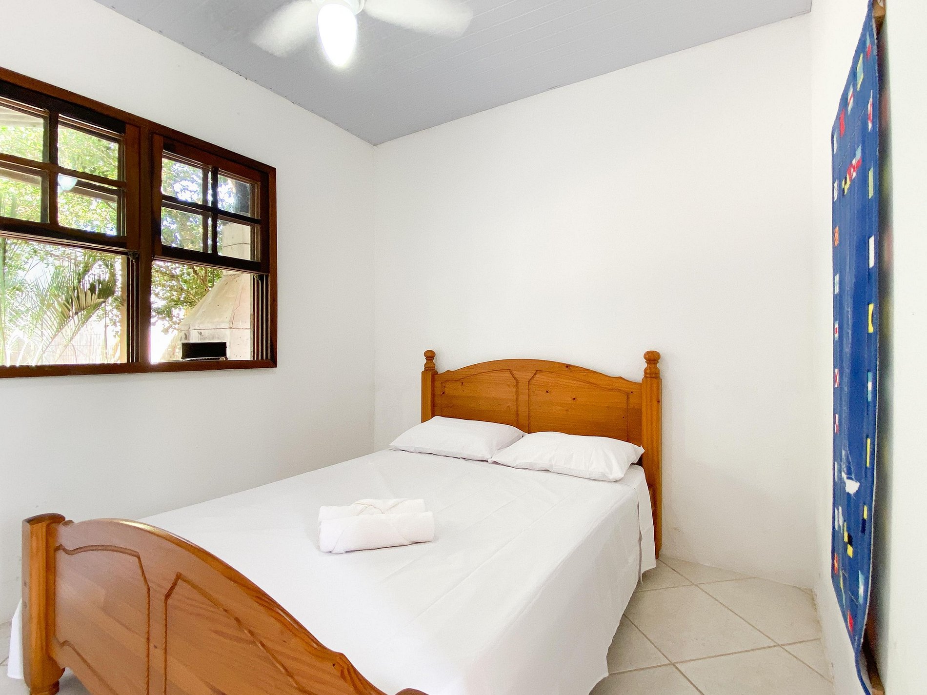 Casa de pedra, ampla e acolhedora, a apenas 300 m do mar de Canasvieiras. Com espaço para até 10 pessoas, área de churrasqueira, varanda generosa e terreno arborizado, é o refúgio ideal para férias em família ou entre amigos.