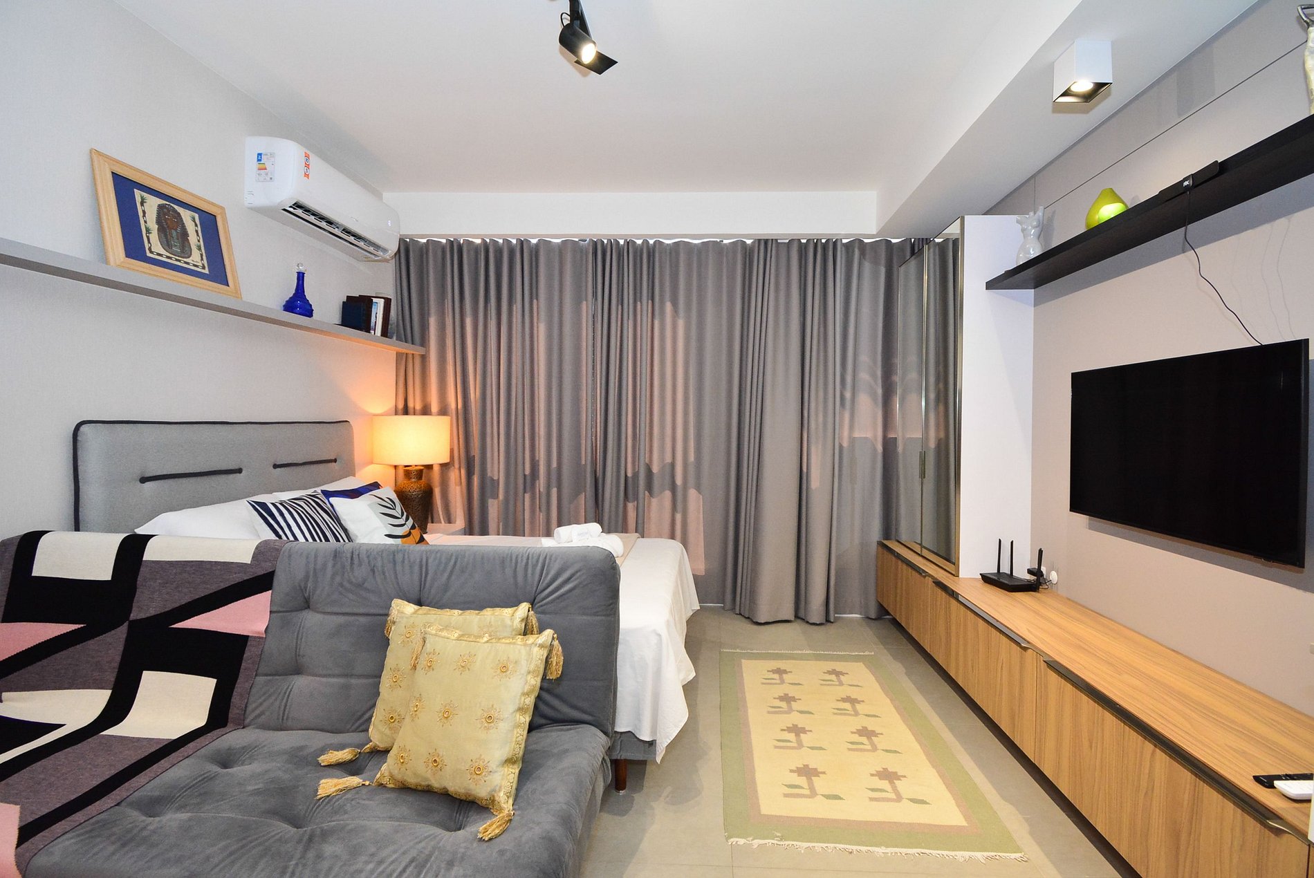 • Ar-condicionado, TV, roupeiro e armários organizadores