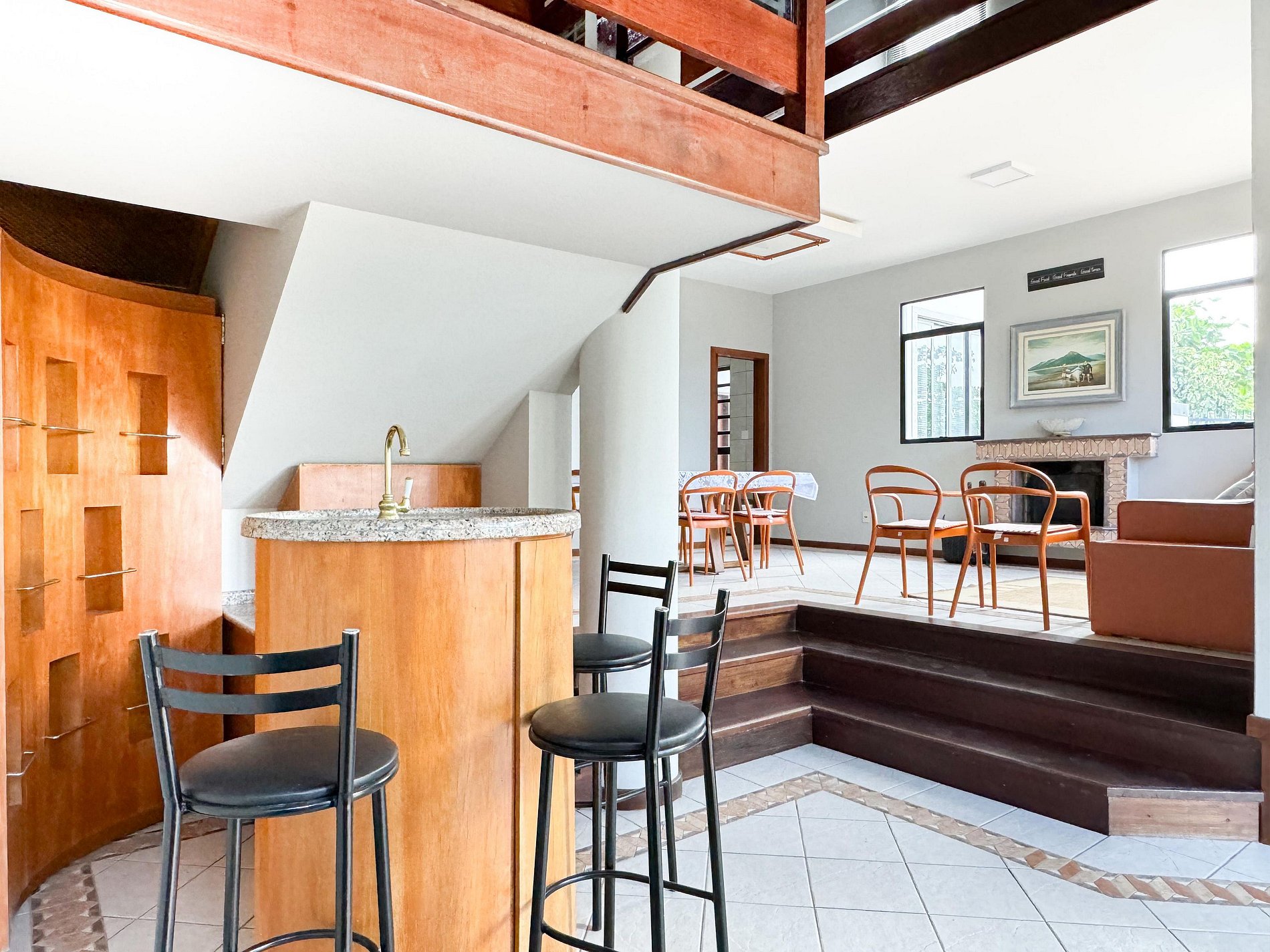 A propriedade conta com uma piscina coberta e uma generosa área gourmet, completa com churrasqueira, perfeita para confraternizar com familiares e amigos, além de uma sala de jogos com mesa de bilhar.