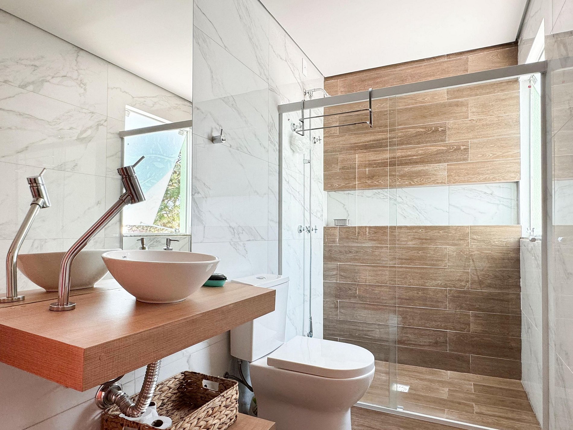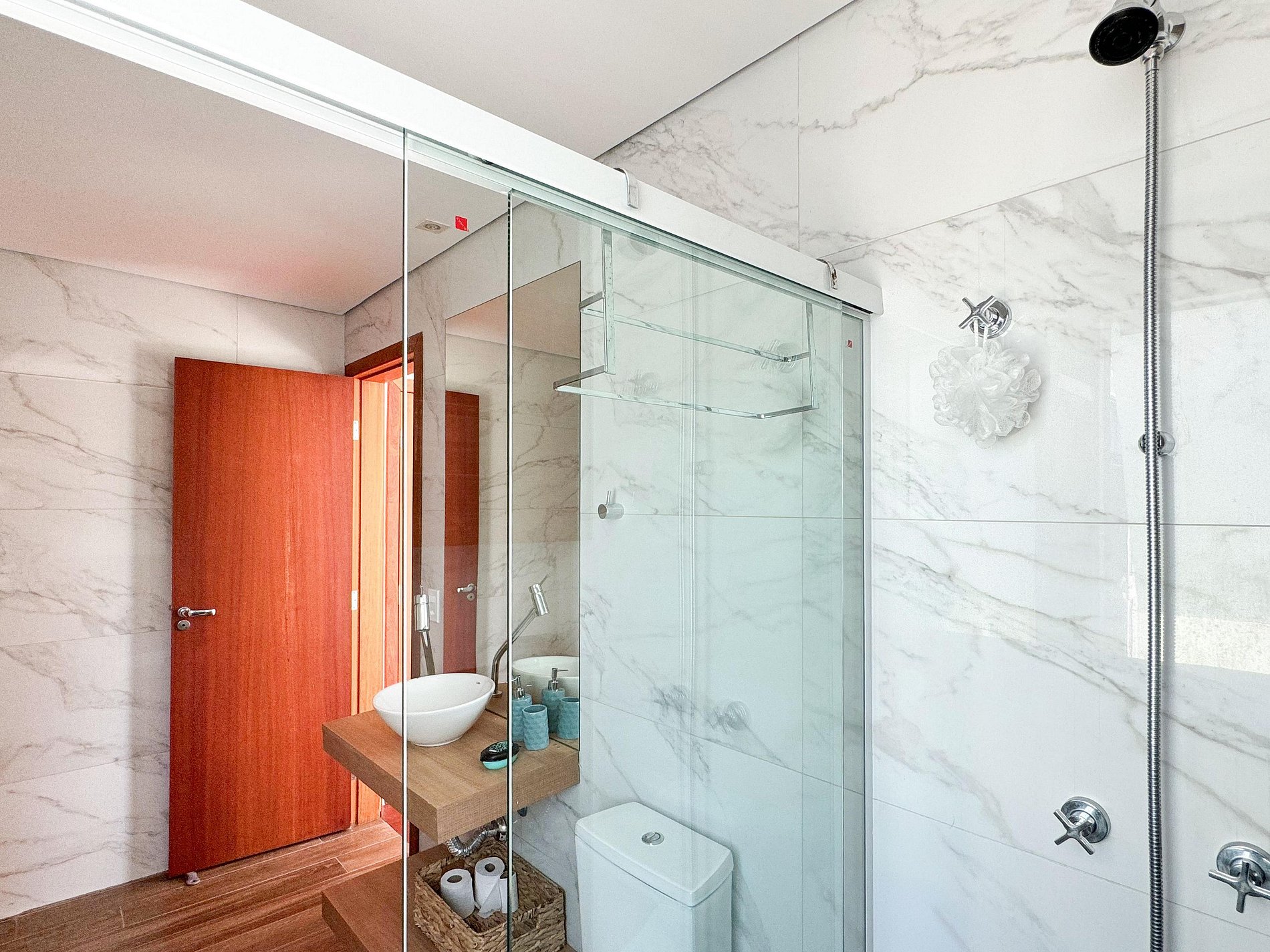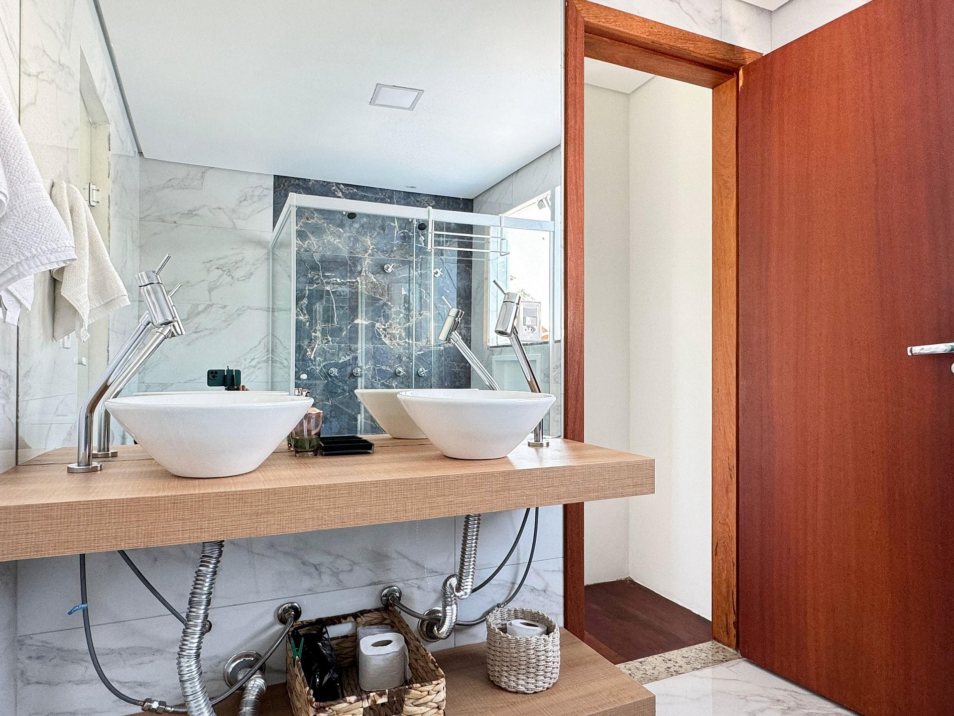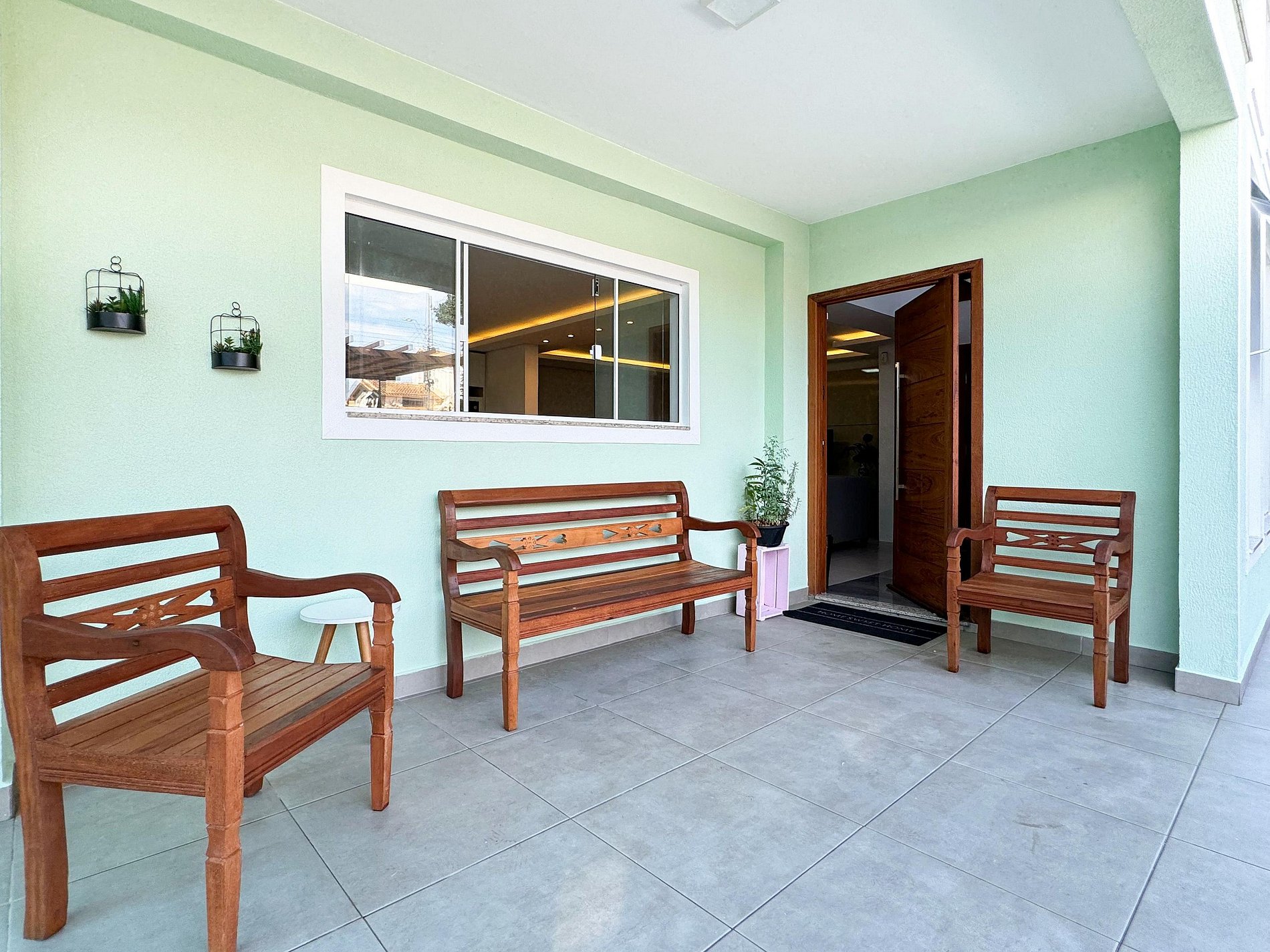 A casa possui 4 quartos, sendo uma suíte no térreo com varanda e vista para o jardim e piscina, no andar superior, uma segunda suíte com duas duchas, duas pias e uma ampla varanda também com vista para o jardim e piscina, além de dois quartos demi-suíte, onde o banheiro é compartilhado entre os dois e oferece vista para um terreno onde frequentemente se avistam cavalos, trazendo a tranquilidade do campo, o que tona o local tranquilo. Todos os quartos estão equipados com ar-condicionado, proporcionando um ambiente fresco e agradável. Para maior comodidade, fornecemos roupas de cama e banho.