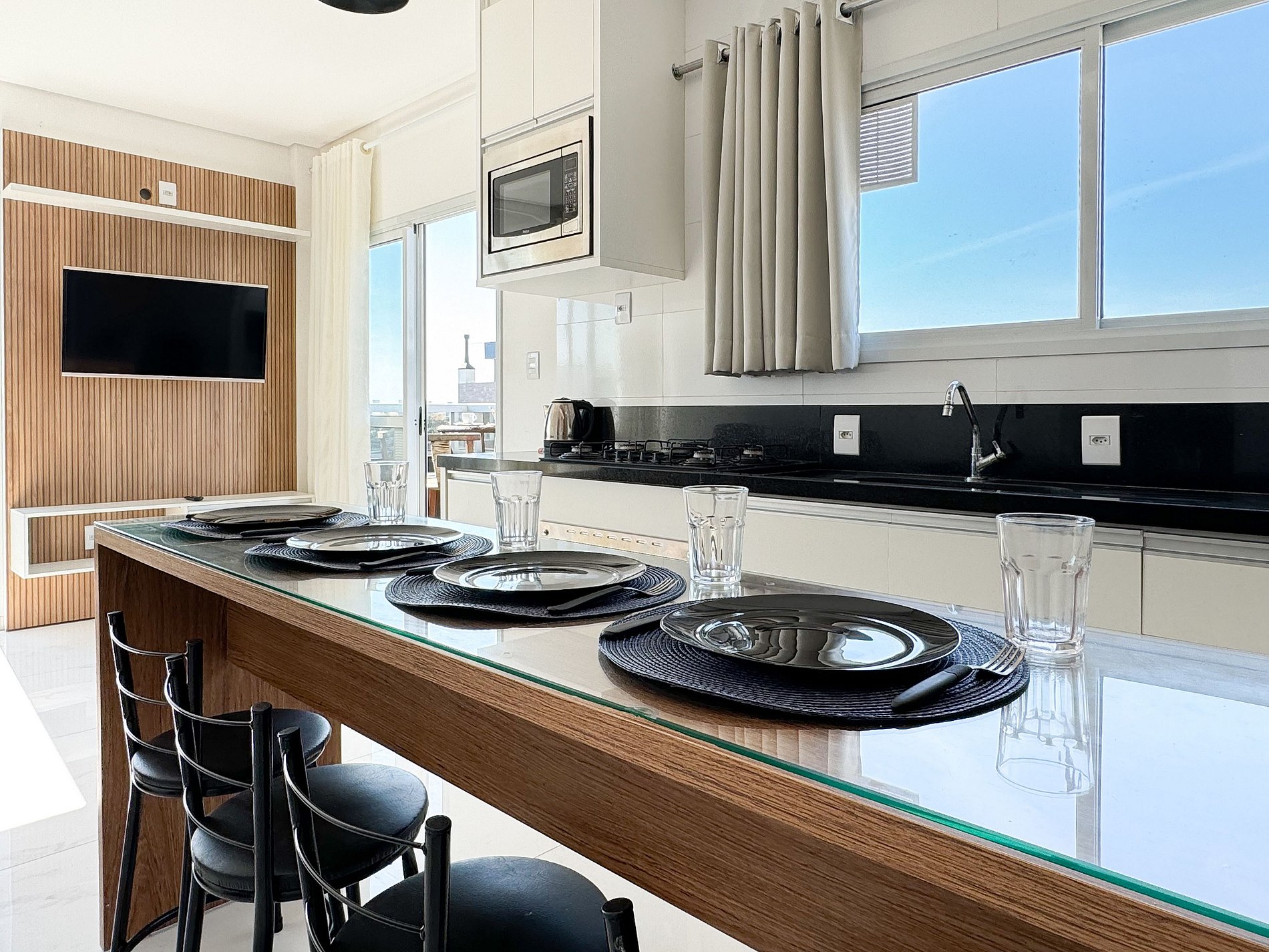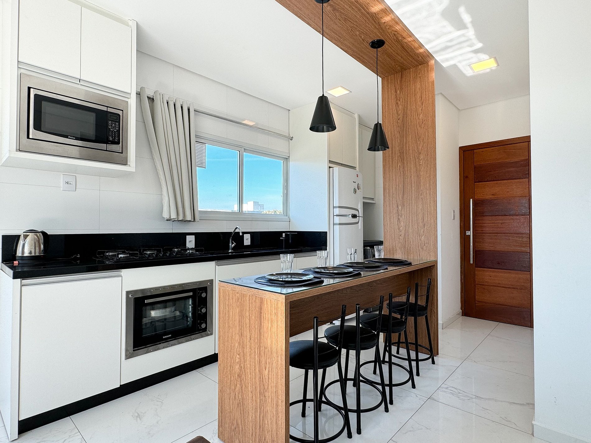 Possui uma cozinha completa, totalmente mobiliada, perfeita para preparar suas refeições favoritas. Possui máquina de lavar roupa facilita o dia a dia, permitindo que você se sinta em casa enquanto desfruta de todas as comodidades oferecidas.