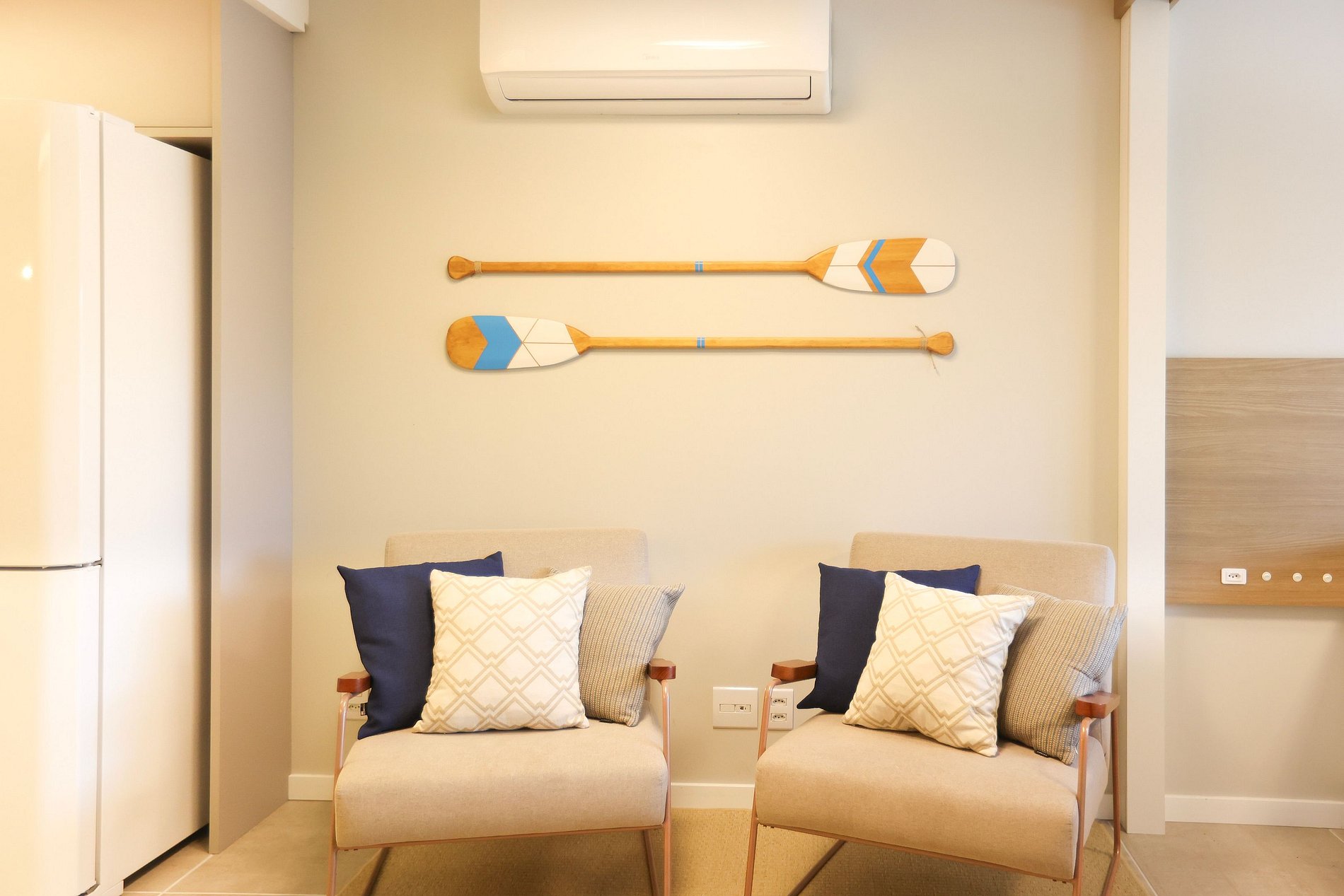 Equipado com ar condicionado individual tanto no quarto quanto na sala, você poderá ajustar a temperatura de cada ambiente conforme sua preferência, garantindo noites de sono tranquilas e dias agradáveis.