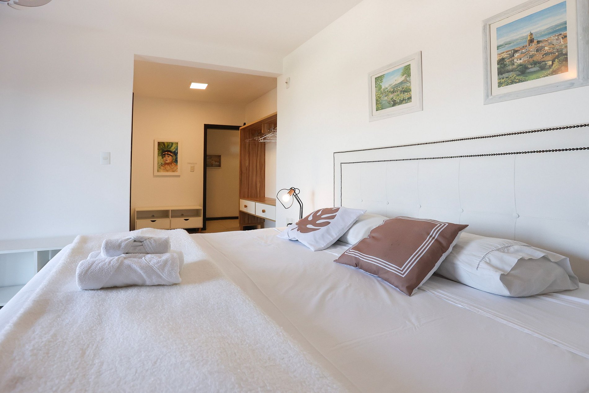 As acomodações incluem 4 suítes confortáveis, sendo duas equipadas com banheira, proporcionando um ambiente relaxante e luxuoso. Todas as suítes possuem ar condicionado e ficam no piso superior. Decoradas com conforto e estilo. Para sua conveniência, disponibilizamos roupas de cama e banho de alta qualidade.