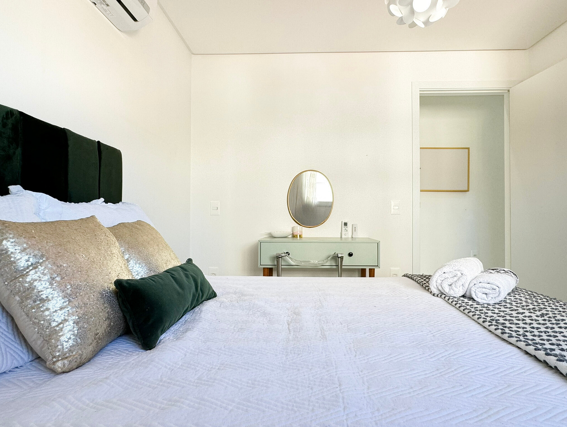 Além disso, o apartamento conta com ar-condicionado em todos os quartos, internet Wi-Fi, máquina de lavar roupas e uma vaga de garagem.