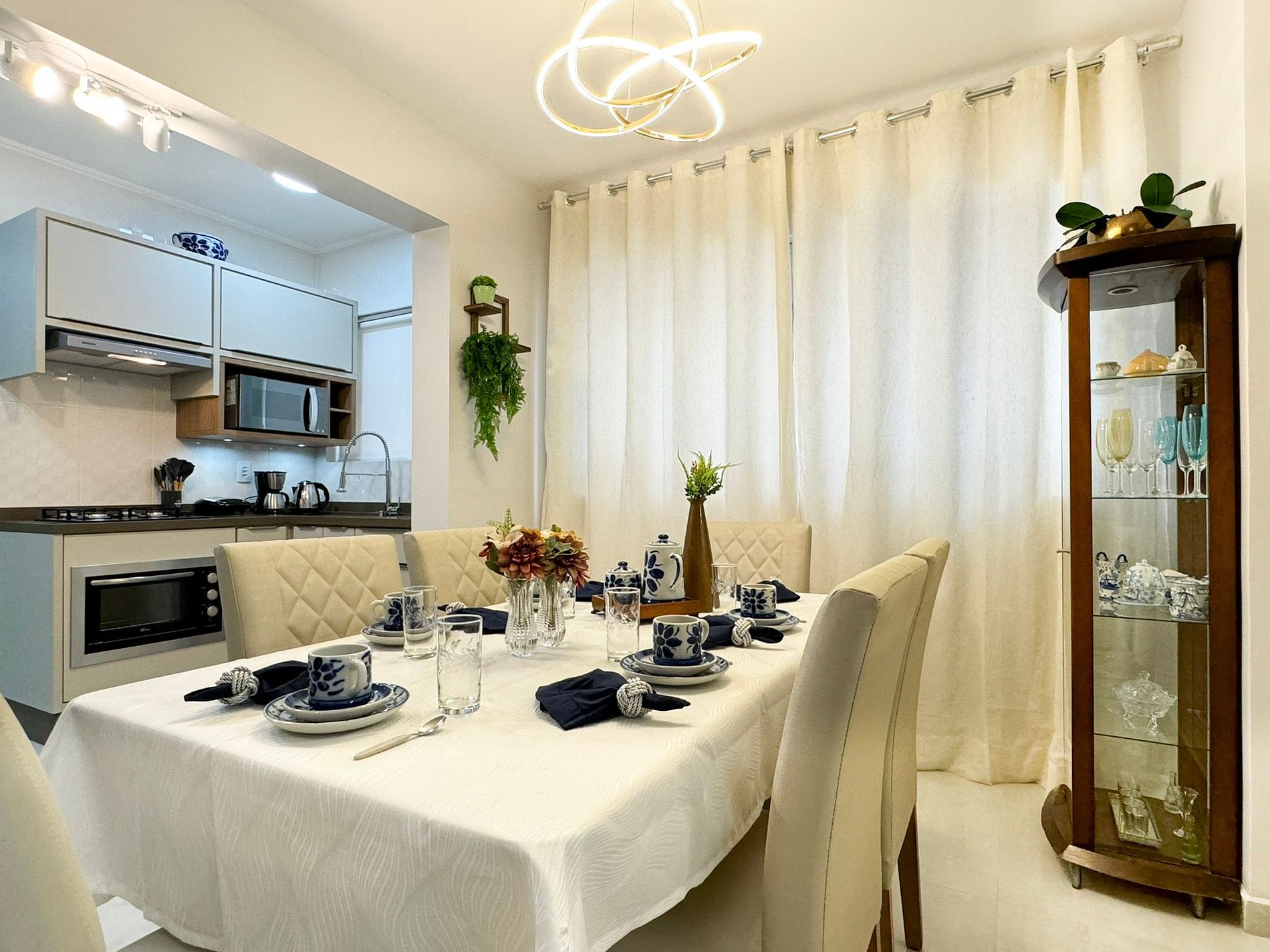 Com uma sala ampla, integrada à cozinha e à sala de jantar, o ambiente é perfeito para socializar ou relaxar. A cozinha totalmente equipada oferece todos os utensílios necessários para preparar suas refeições com facilidade. Além disso, todos os hóspedes recebem roupas de cama e banho, garantindo uma experiência tranquila e relaxante.