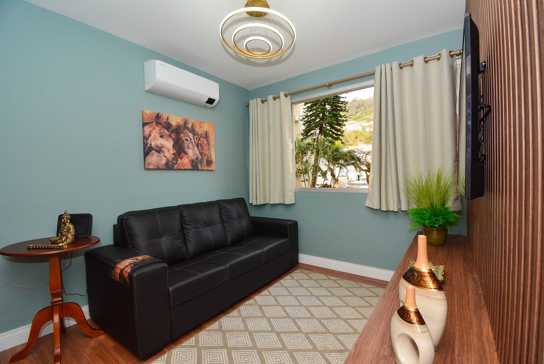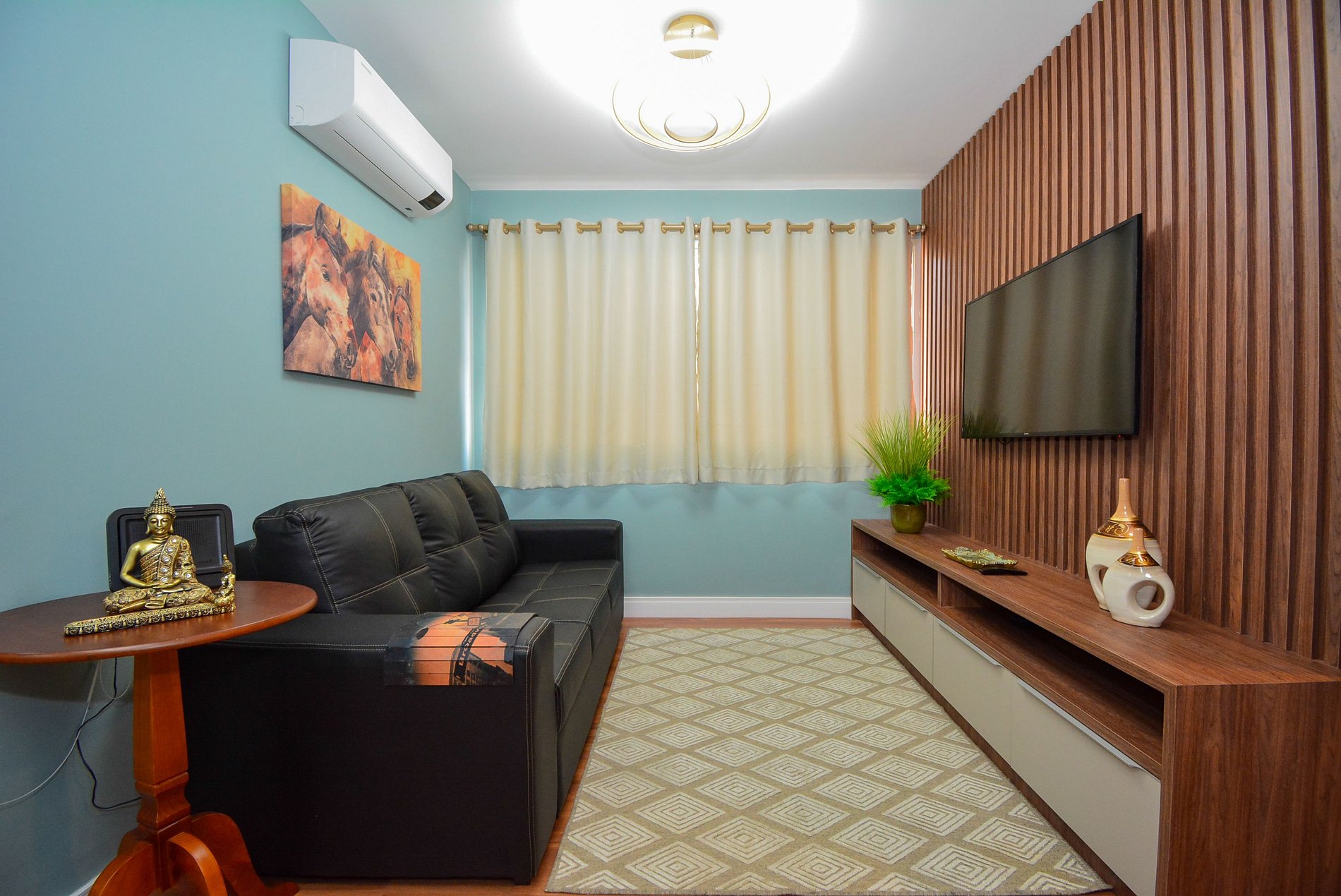 A cozinha completa está pronta para você preparar suas refeições, enquanto a sala de estar oferece um ambiente acolhedor para relaxar após um dia de passeios. Roupas de cama e banho são fornecidas, garantindo conforto e conveniência durante toda a sua estadia.