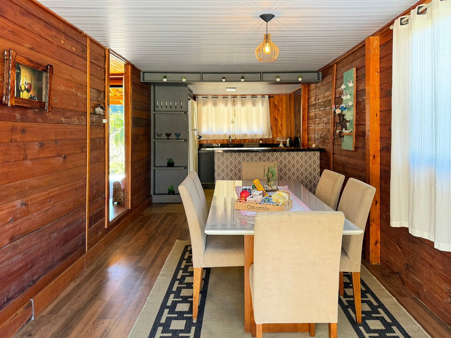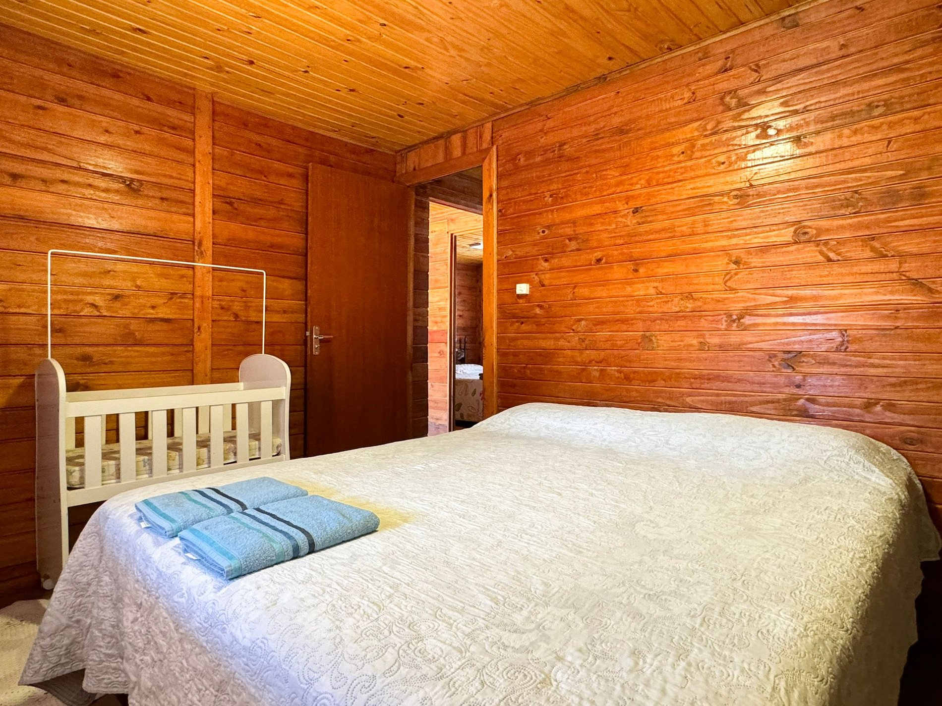 A casa possui três quartos confortáveis, acomodando até seis pessoas. Um dos quartos é equipado com um berço, pensando no bem-estar das famílias.