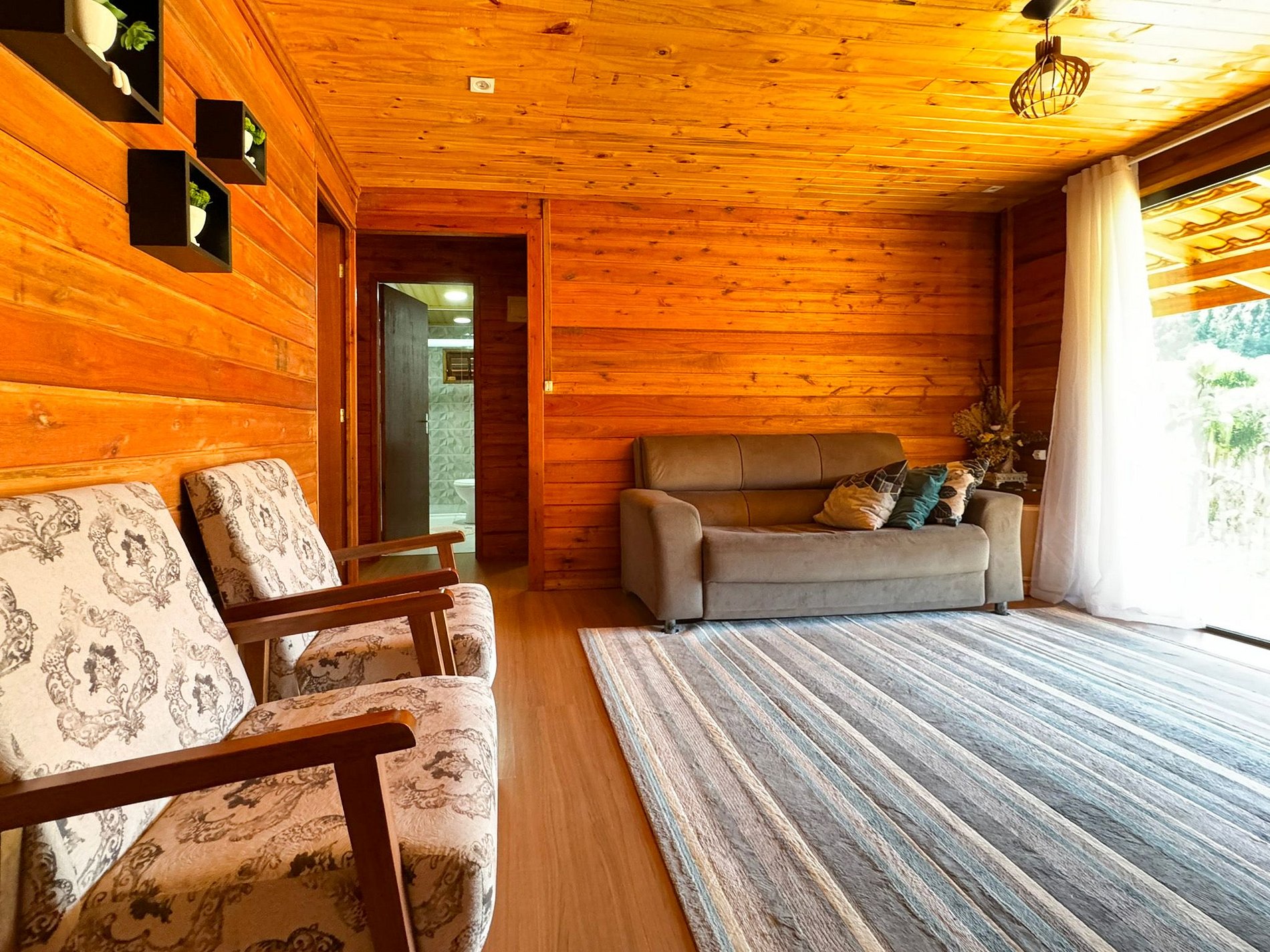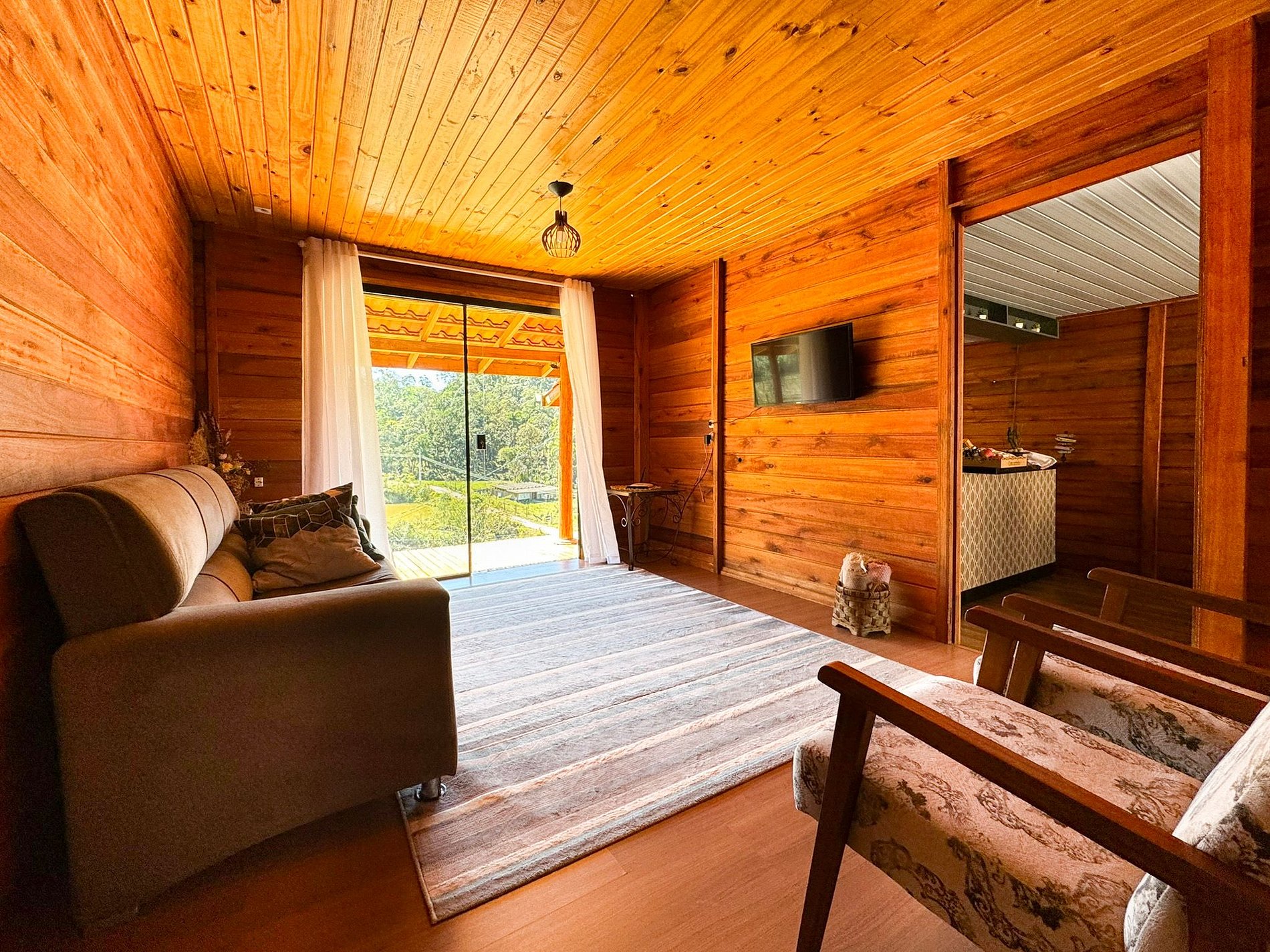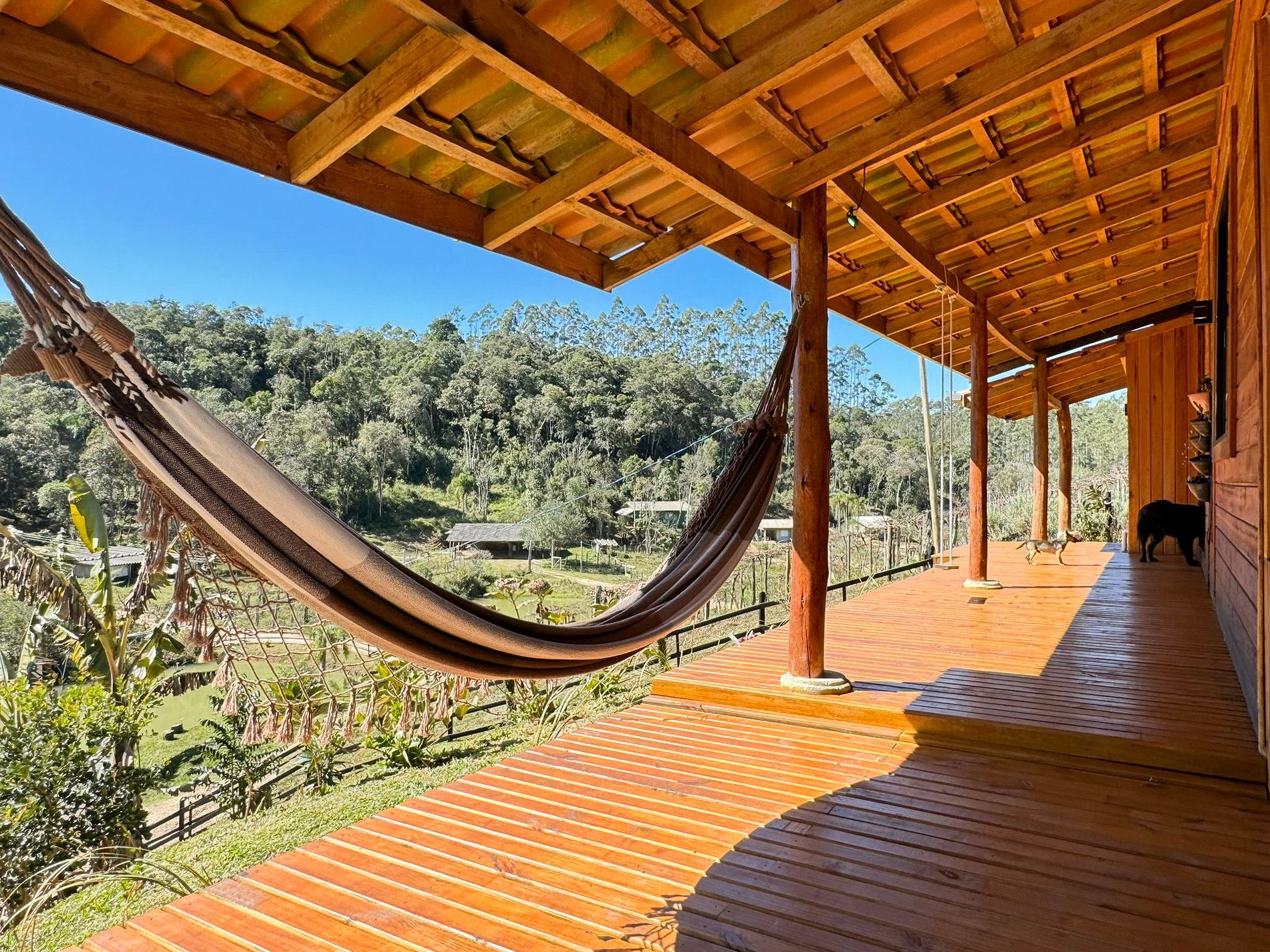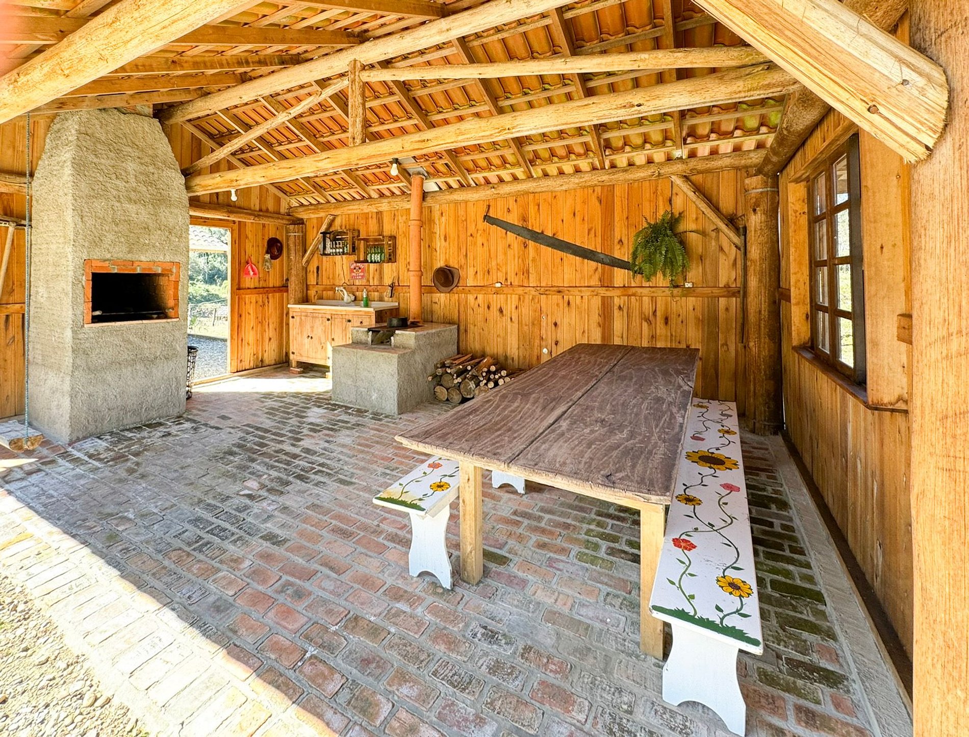 No lado externo, aproveite momentos únicos ao redor da fogueira, compartilhando histórias sob o céu estrelado. Para completar o ambiente acolhedor, um balanço suspenso proporciona uma vista deslumbrante para as montanhas, criando uma conexão perfeita com a natureza.