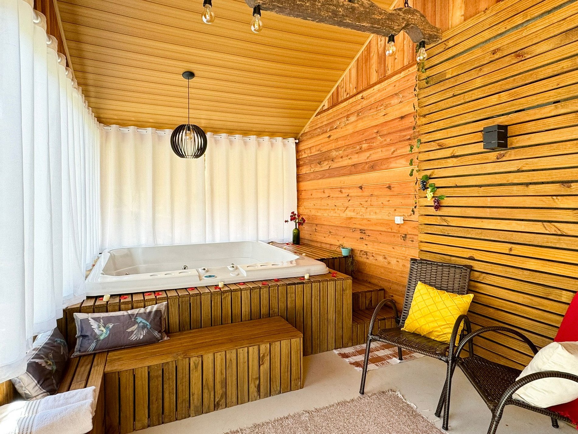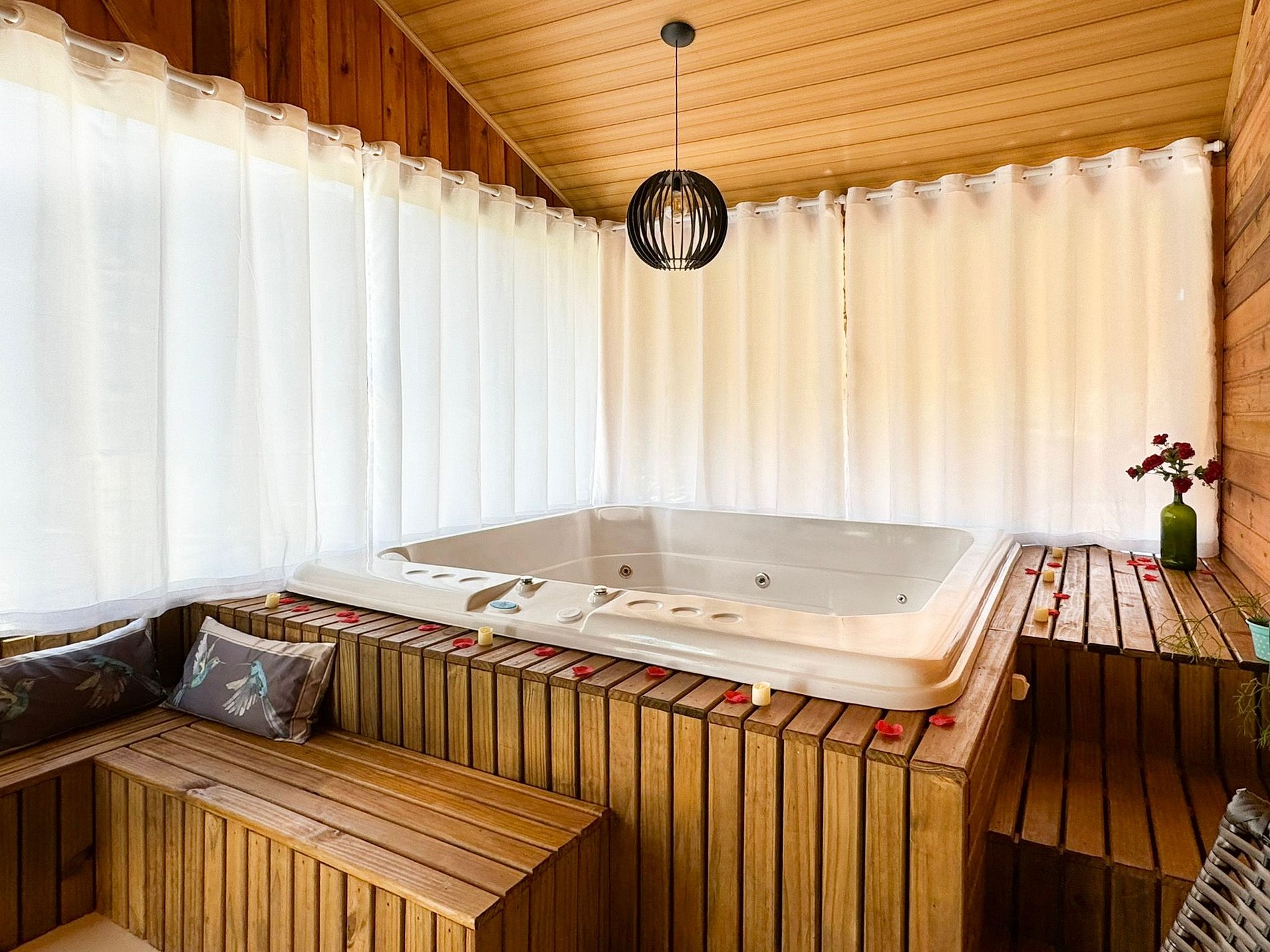 Relaxe em nossa jacuzzi, ideal para aliviar o estresse e desfrutar de momentos de puro descanso.