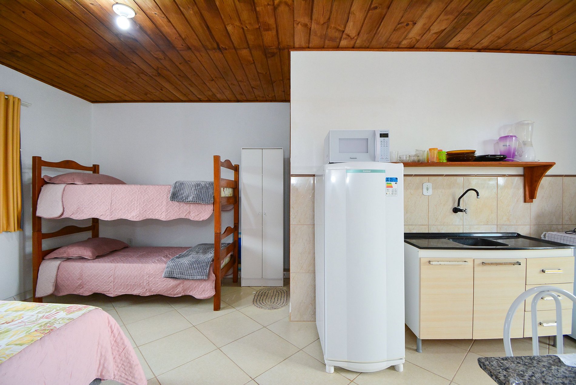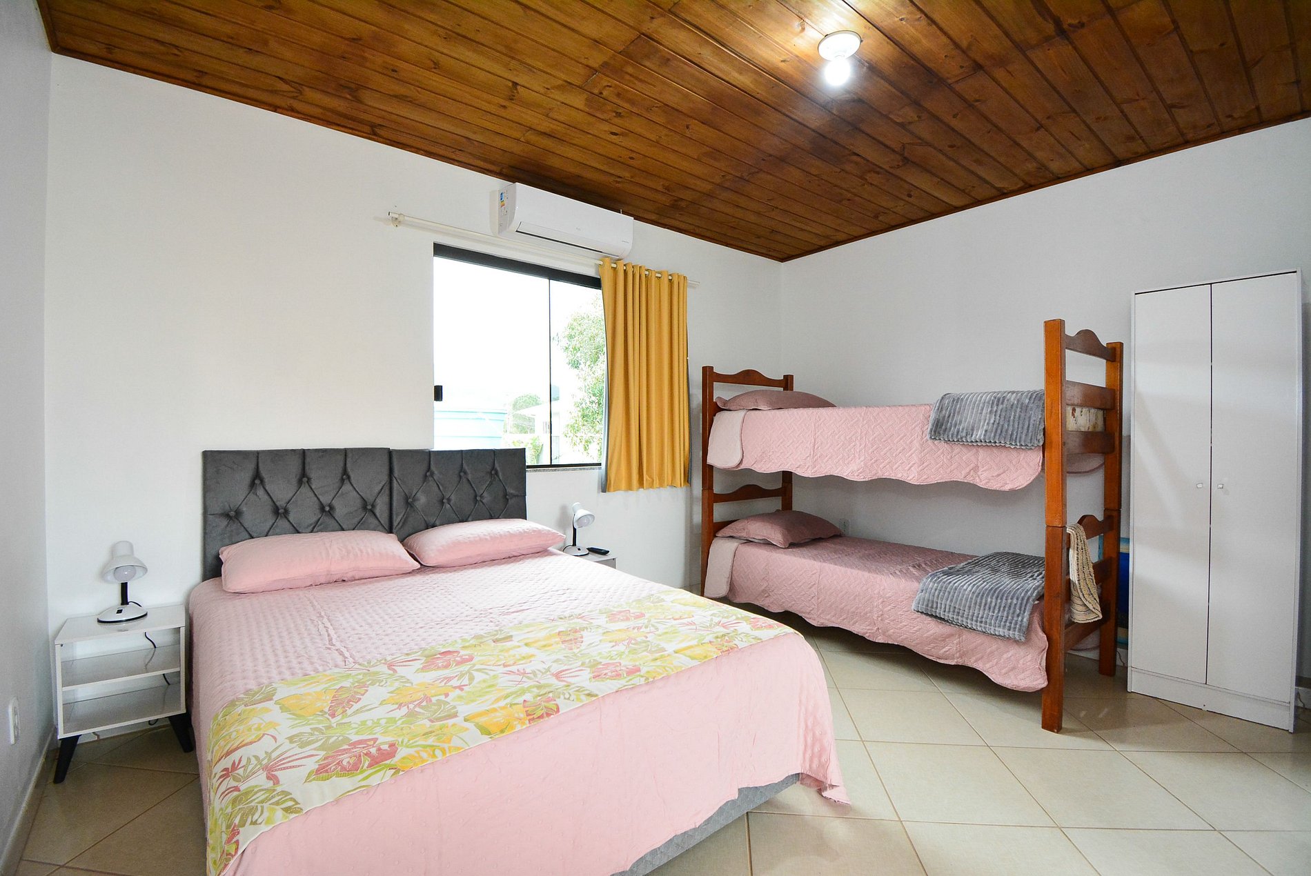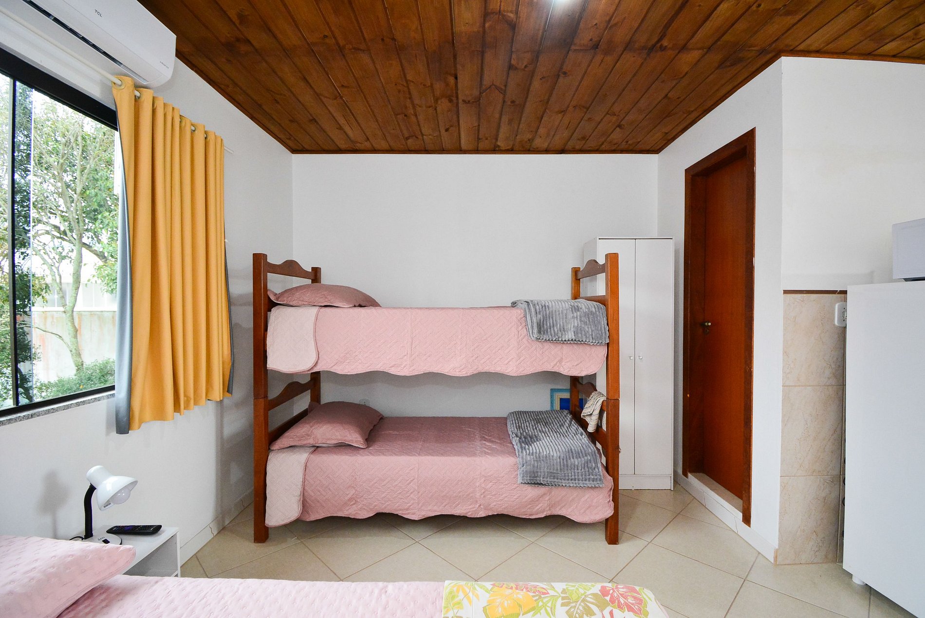 O apartamento acomoda até 4 pessoas e dispõe de uma cama de casal e um beliche, ideal para acomodar famílias ou grupos de amigos.