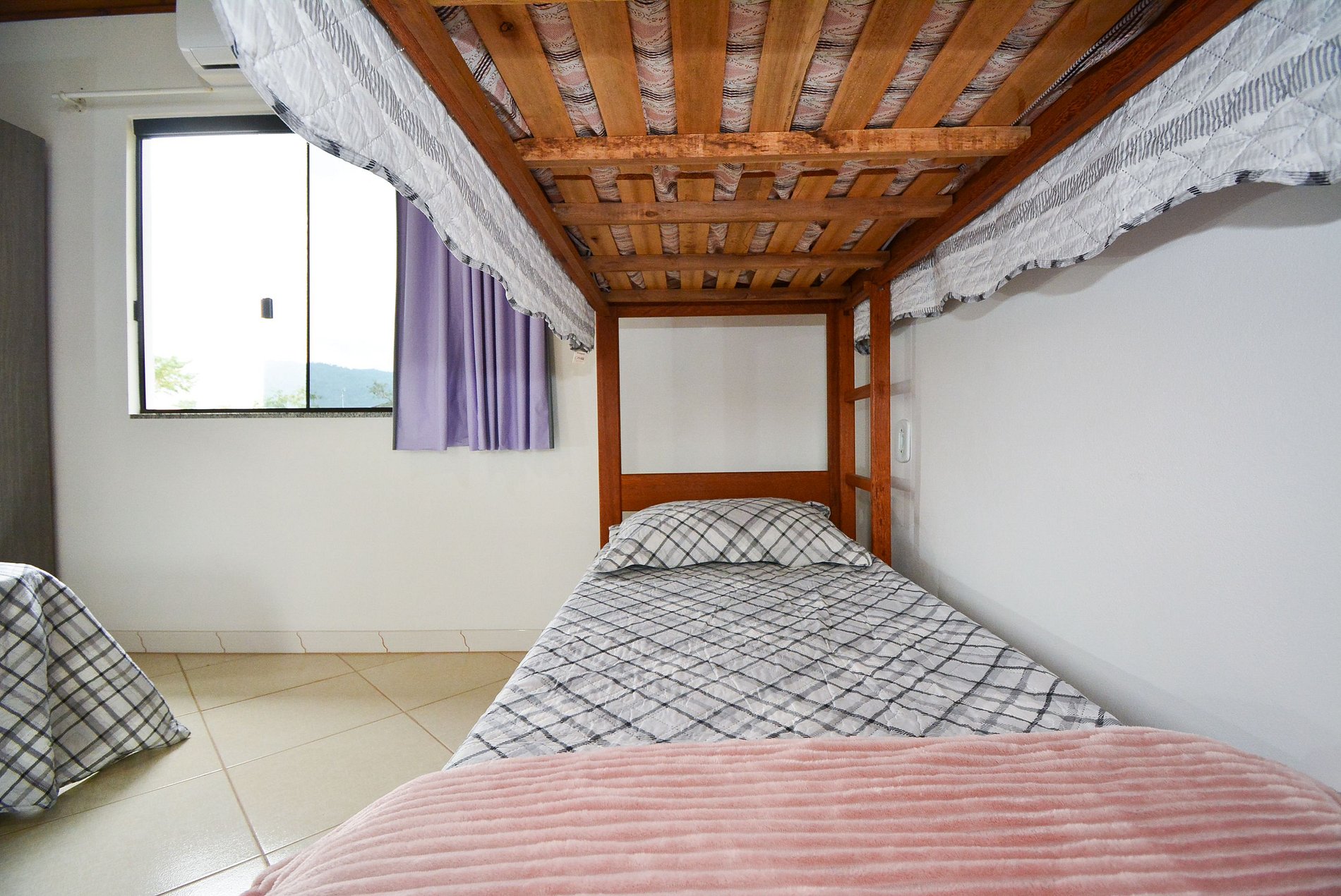 O apartamento acomoda até 4 pessoas e dispõe de uma cama de casal e um beliche, ideal para acomodar famílias ou grupos de amigos.