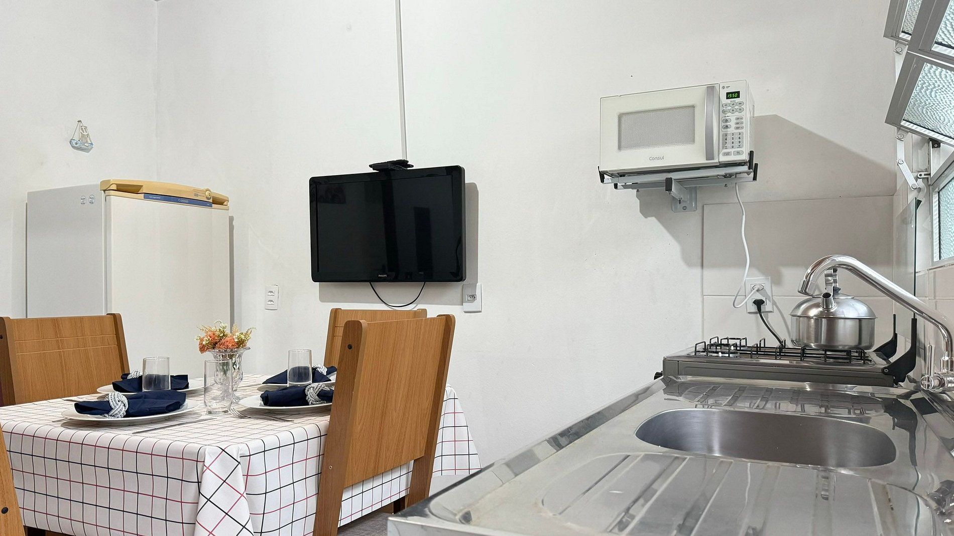 A cozinha está totalmente equipada com todos os utensílios necessários, permitindo que você prepare suas refeições como se estivesse em casa. Além disso, oferecemos roupas de cama e banho para sua conveniência.