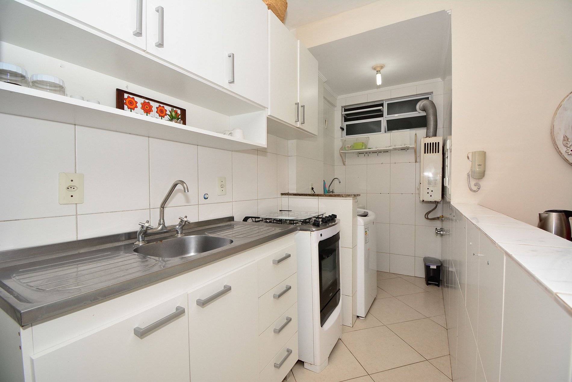 • Cozinha completa (geladeira, fogão, forno, micro-ondas, chaleira elétrica, sanduicheira, liquidificador, panelas e utensílios)