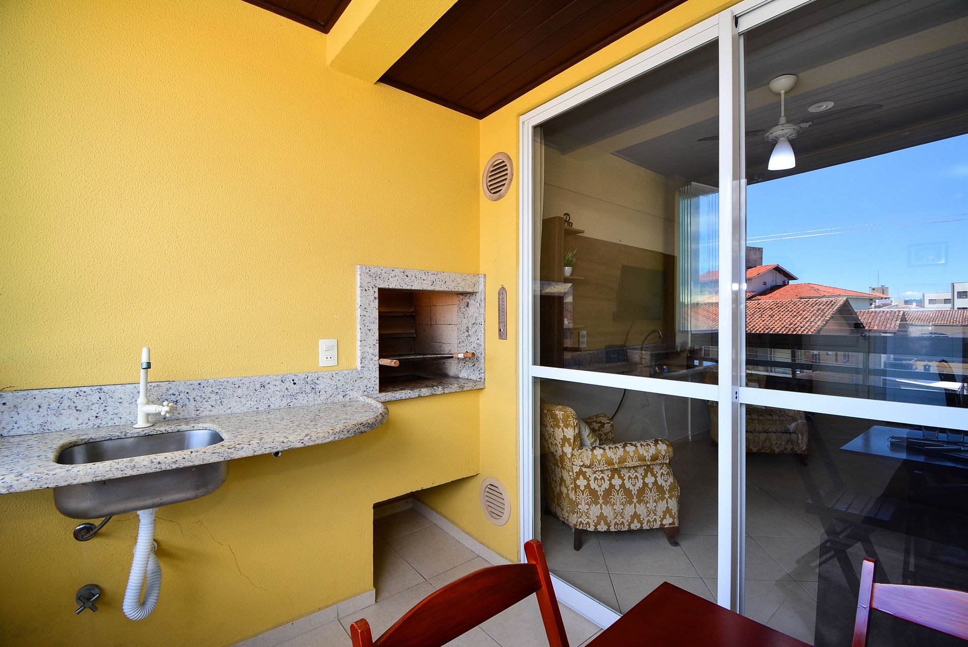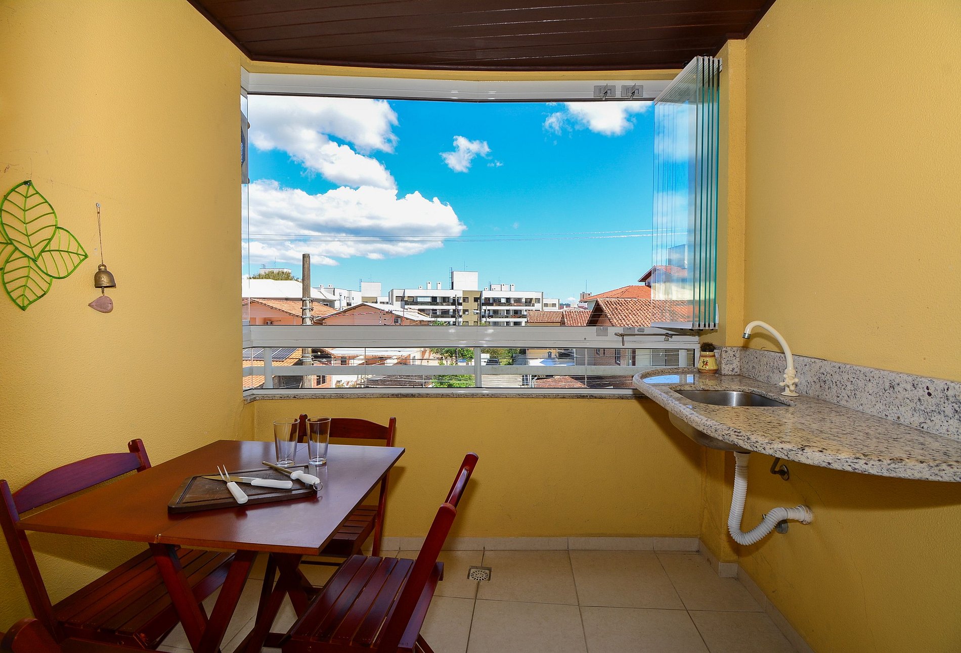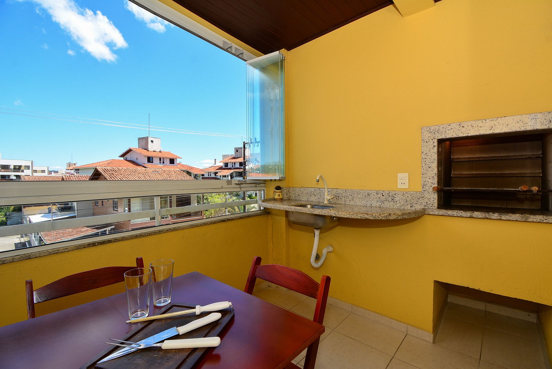 Possui ainda banheiro social, sala de estar aconchegante, cozinha completa e uma sacada com churrasqueira, mesa e cadeiras, perfeita para relaxar e compartilhar bons momentos.