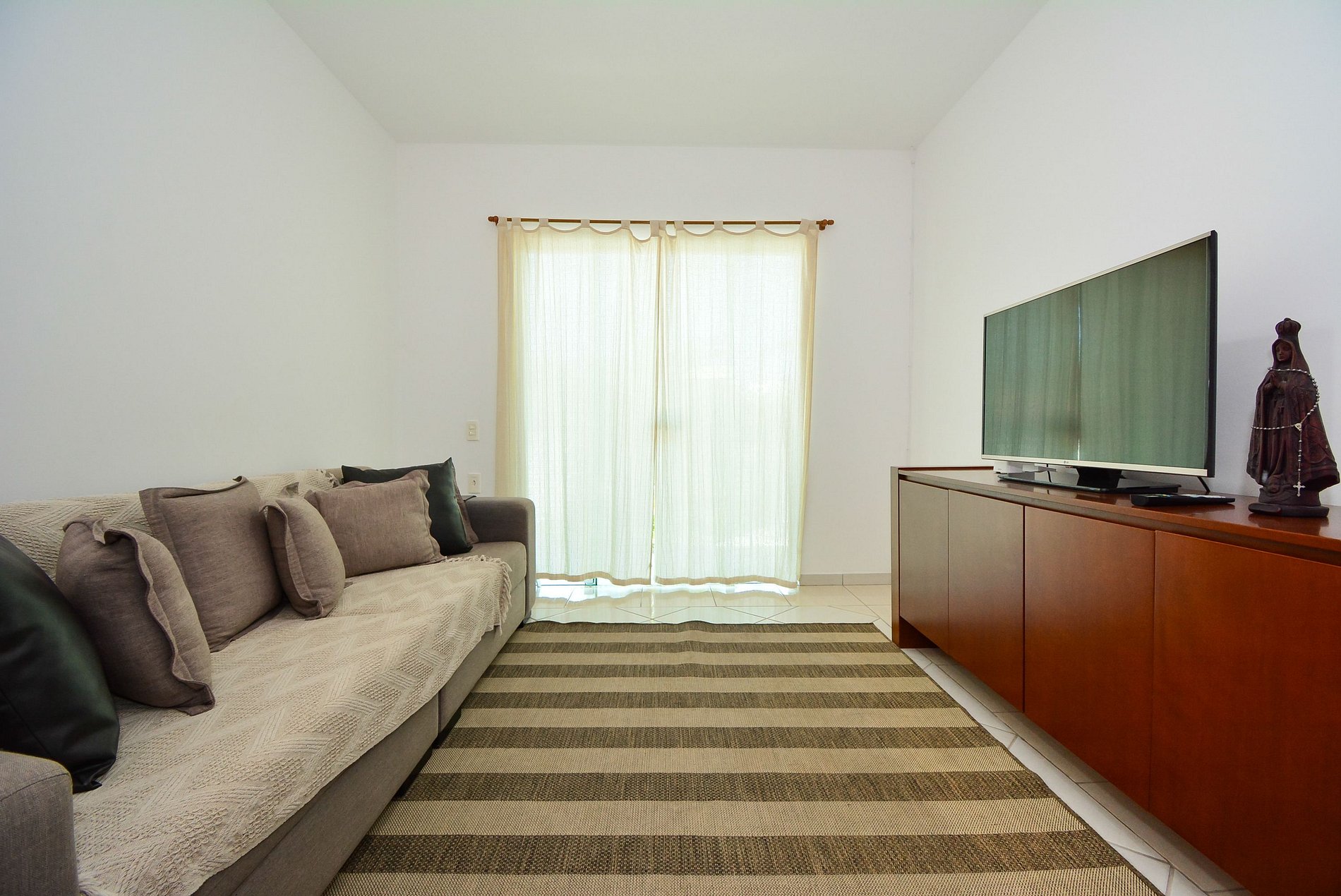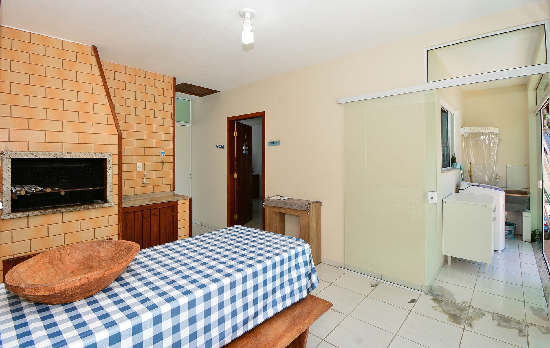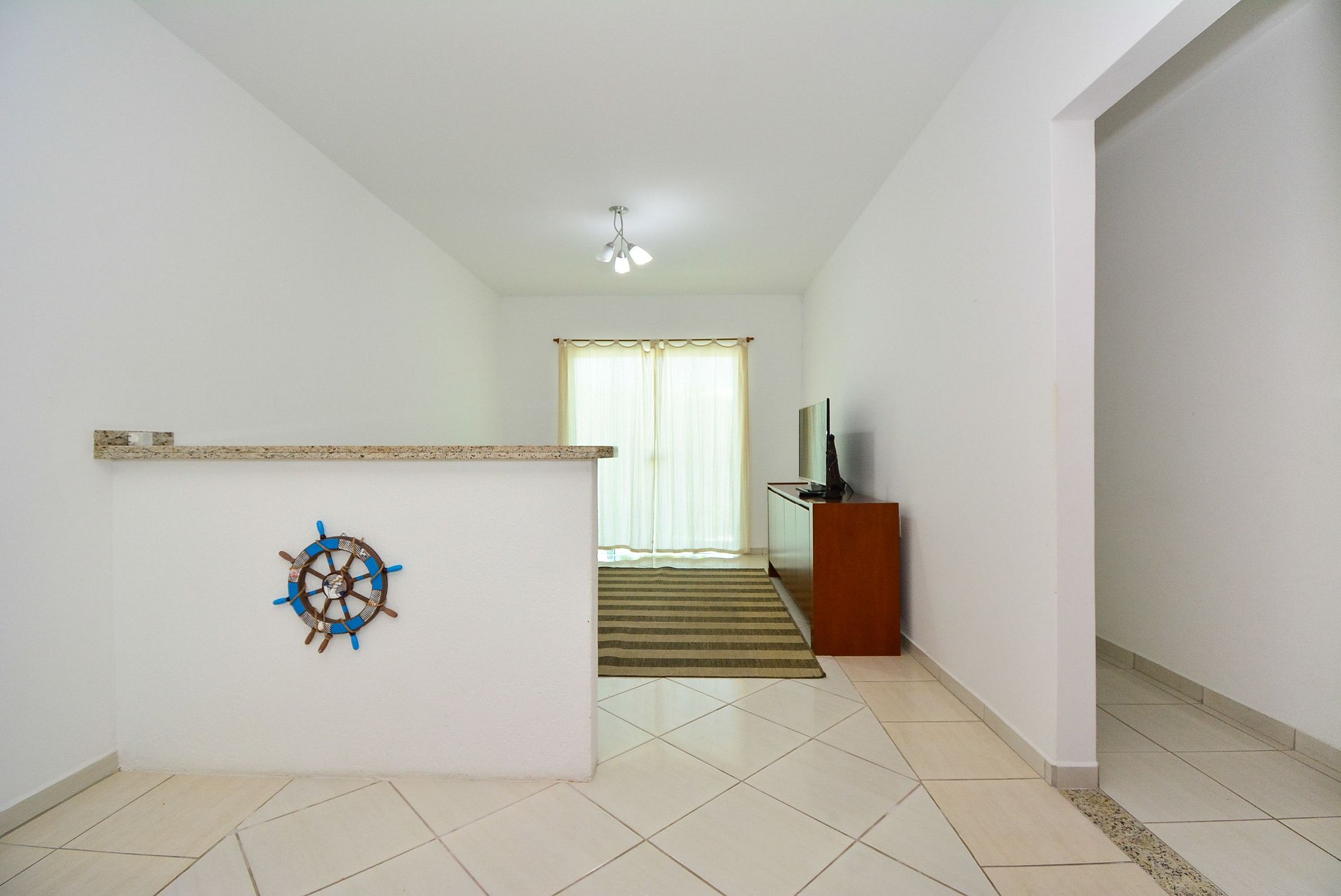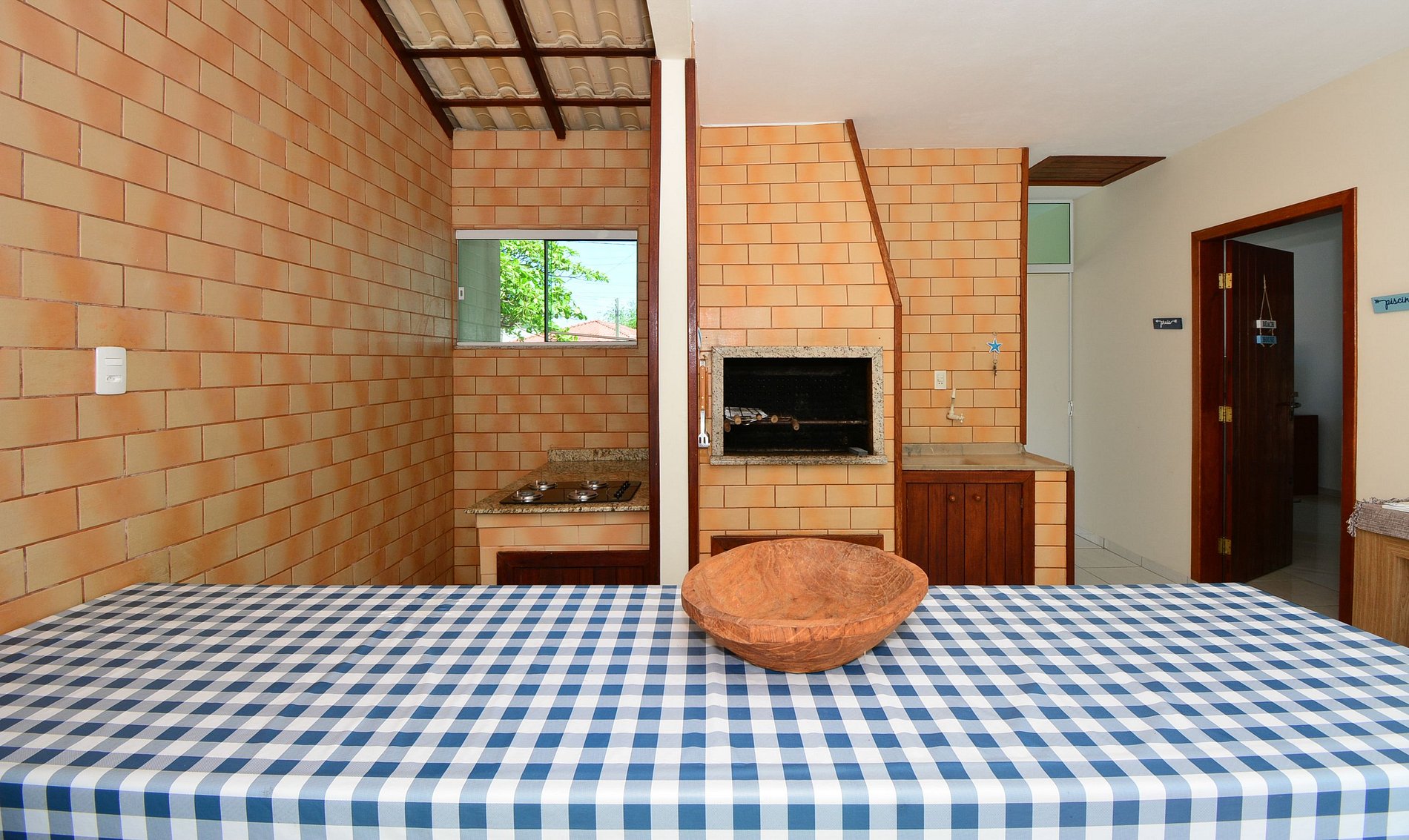 O interior da casa oferece uma sala ampla, ideal para momentos de lazer e convivência, equipada com TV e sofás confortáveis. A cozinha completa possui todas as utensílios necessários, incluindo fogão, geladeira, micro-ondas e utensílios de cozinha para preparar suas refeições.