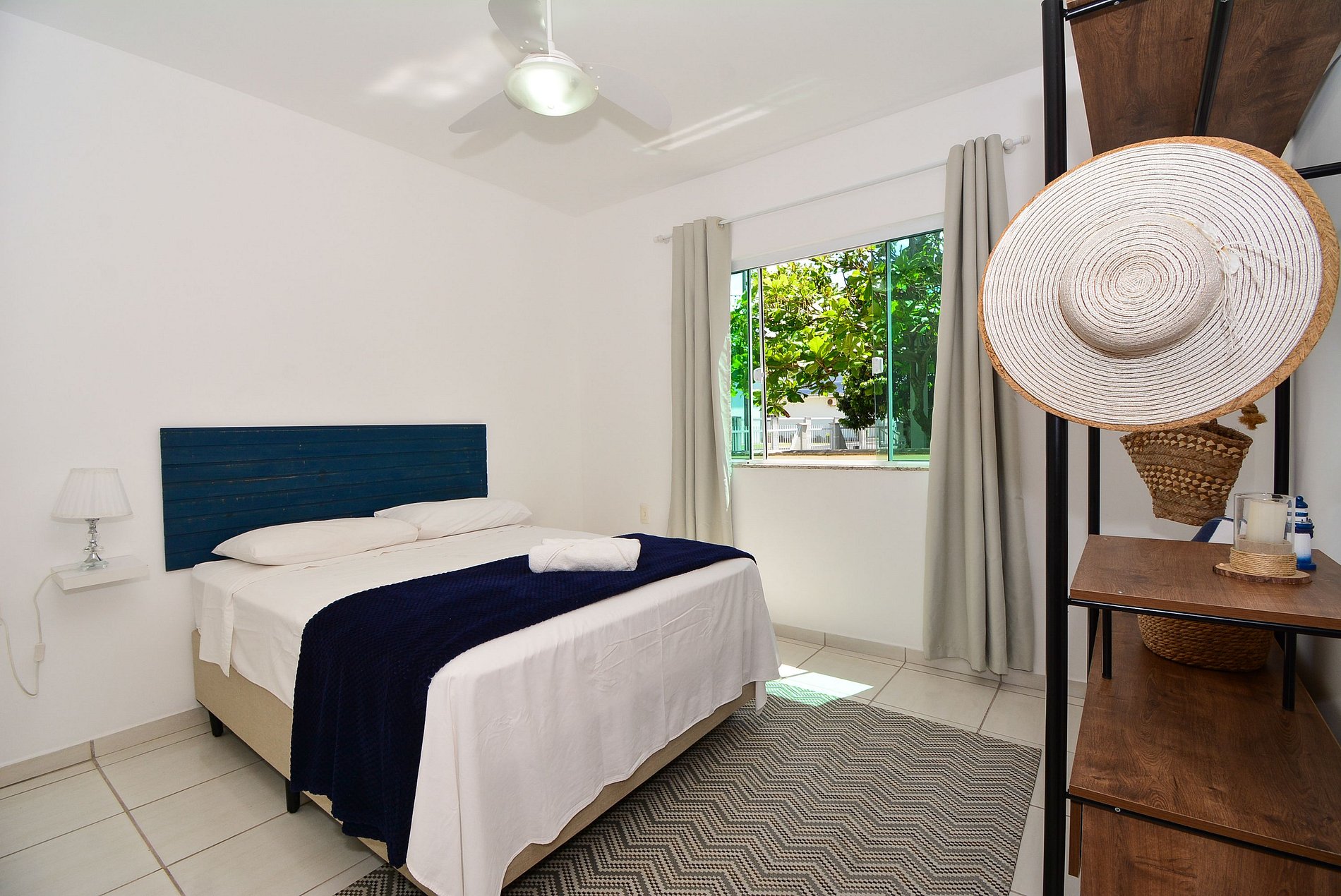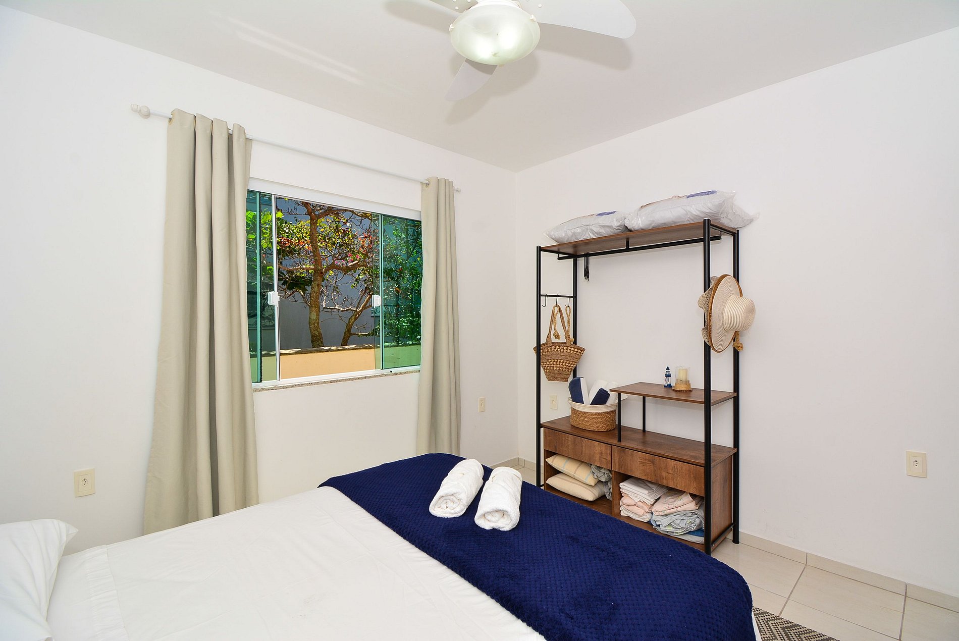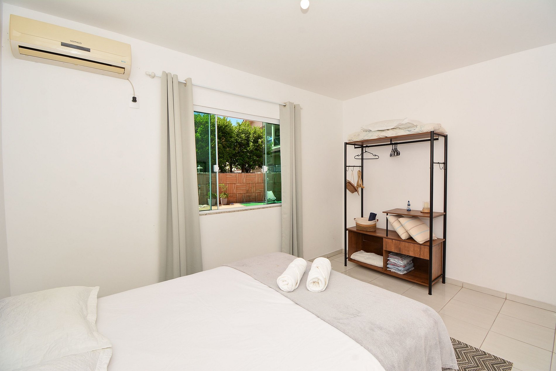 A casa dispõe de três quartos com cama de casal, decorados com bom gosto para oferecer conforto e tranquilidade. Disponibilizamos também mais dois colchões de solteiro para acomodar confortavelmente até oito pessoas. Fornecemos roupas de cama e banho para sua conveniência.
