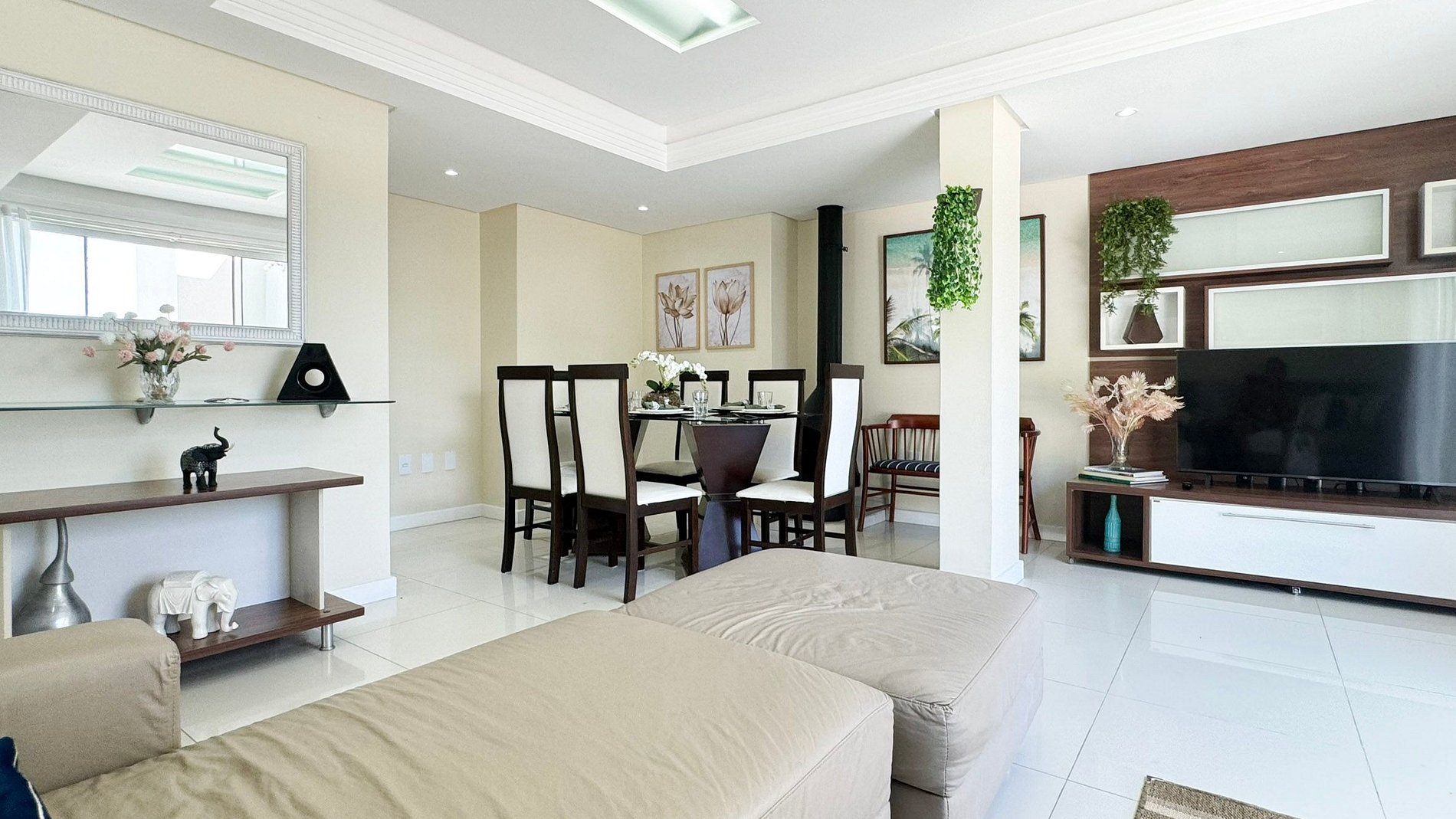 A sala de estar espaçosa e a cozinha totalmente equipada garantem todo o conforto e conveniência necessários.