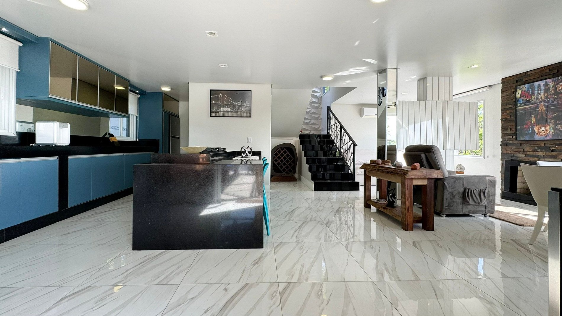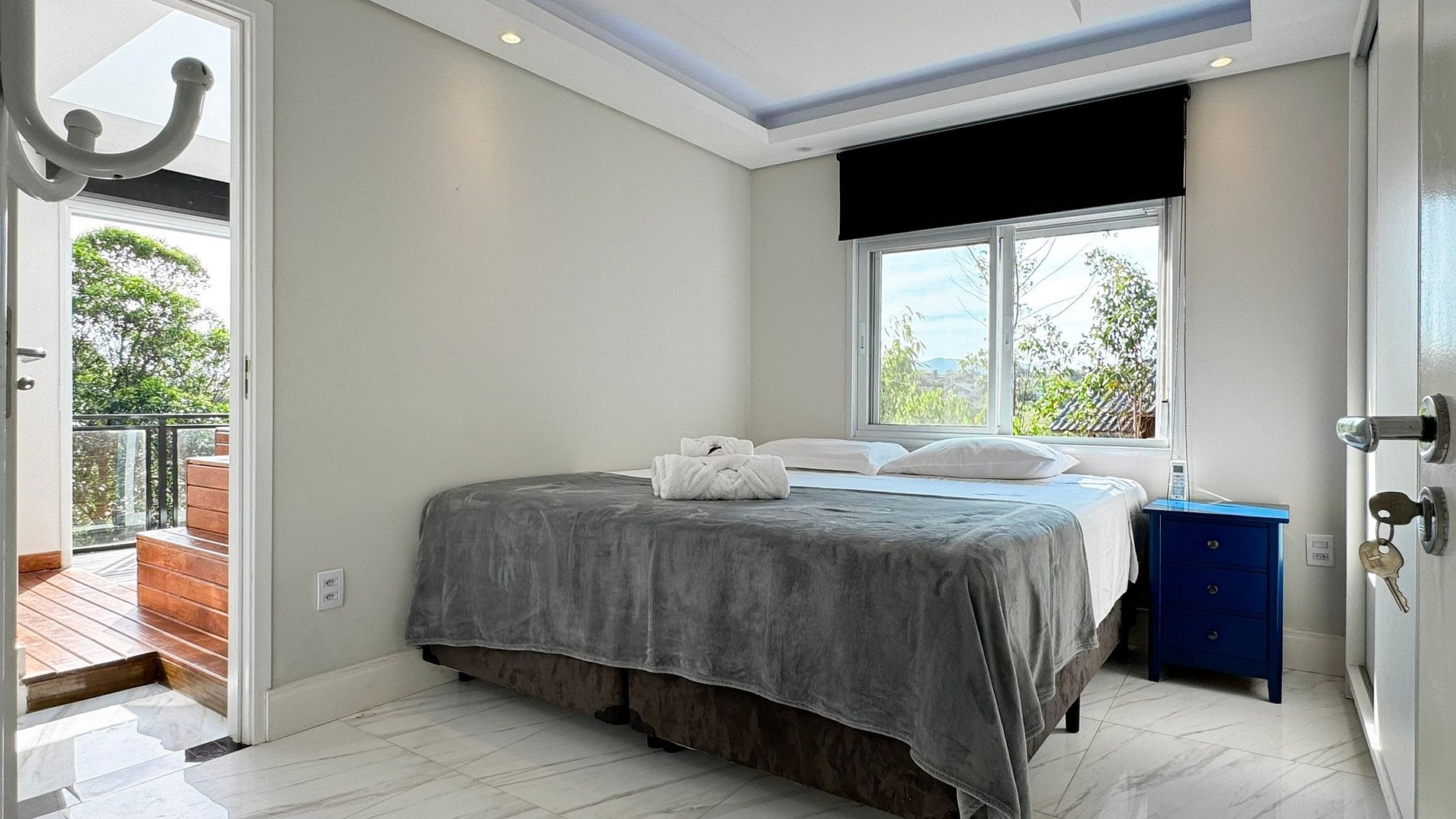 Além da suíte principal, a casa dispõe de outra suíte adicional, ambas com camas king-size, garantindo um sono reparador e conforto absoluto.
