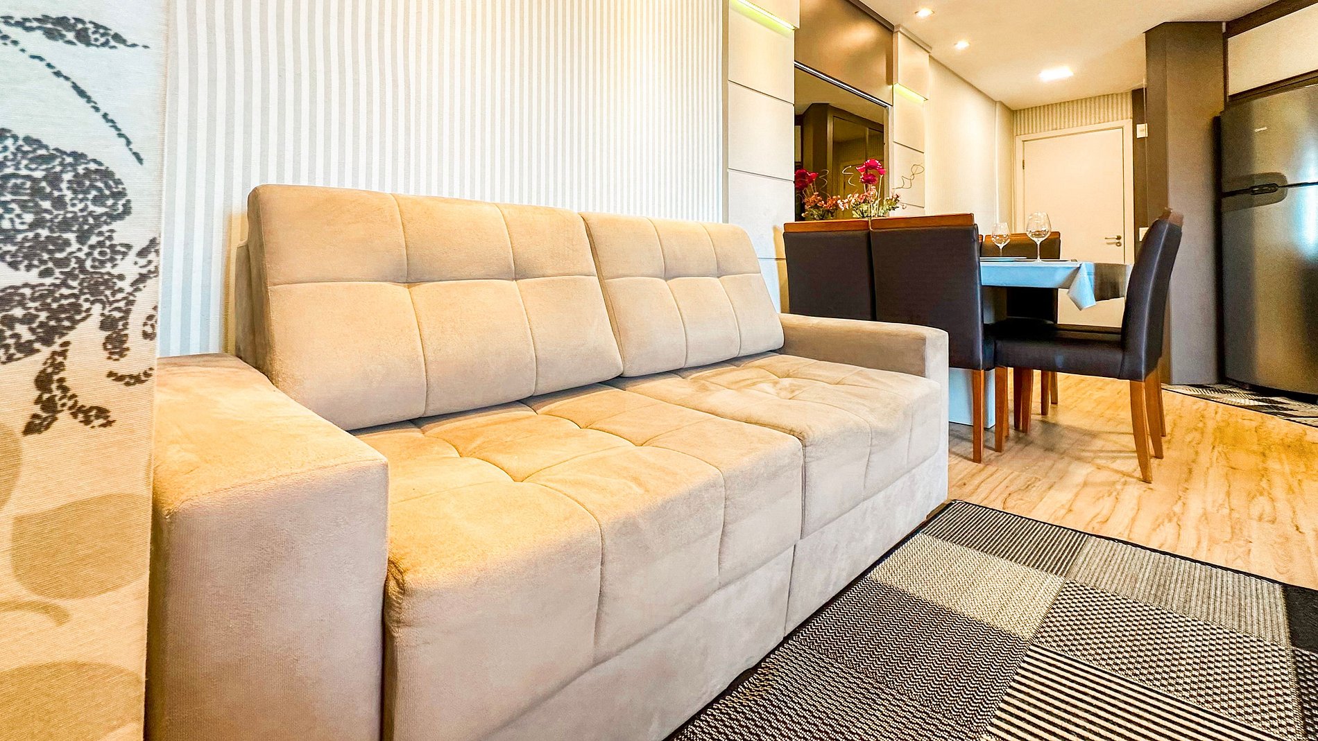 Apartamento com 2 quartos aconchegantes, sendo uma suíte, ampla sala, cozinha completa. Destaque para a sacada integrada com sala com churrasqueira, perfeita para momentos de confraternização.