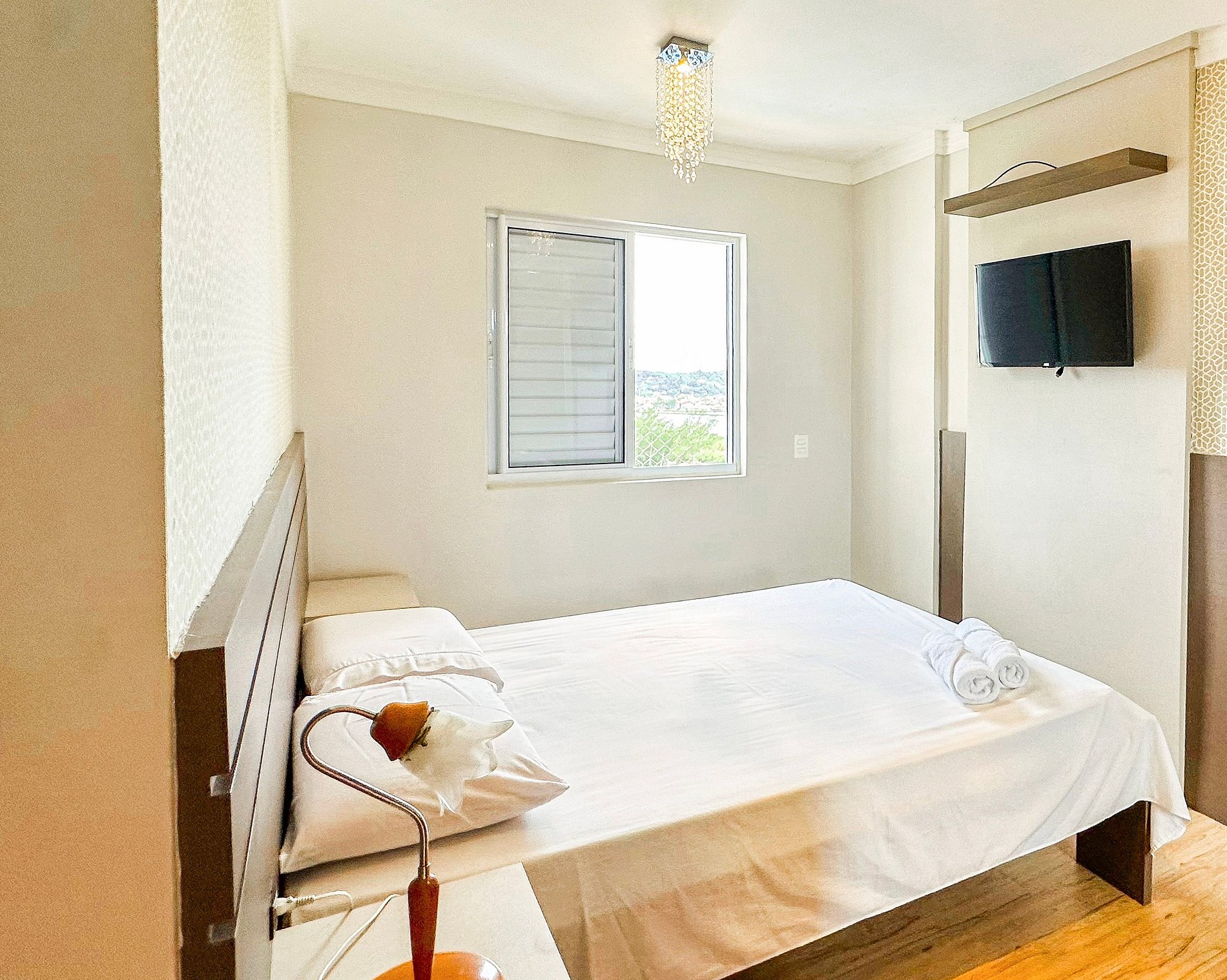 Nosso apartamento é espaçoso e acolhedor, proporcionando conforto aos nossos hóspedes com roupas de cama e banho disponíveis para garantir uma estadia aconchegante.