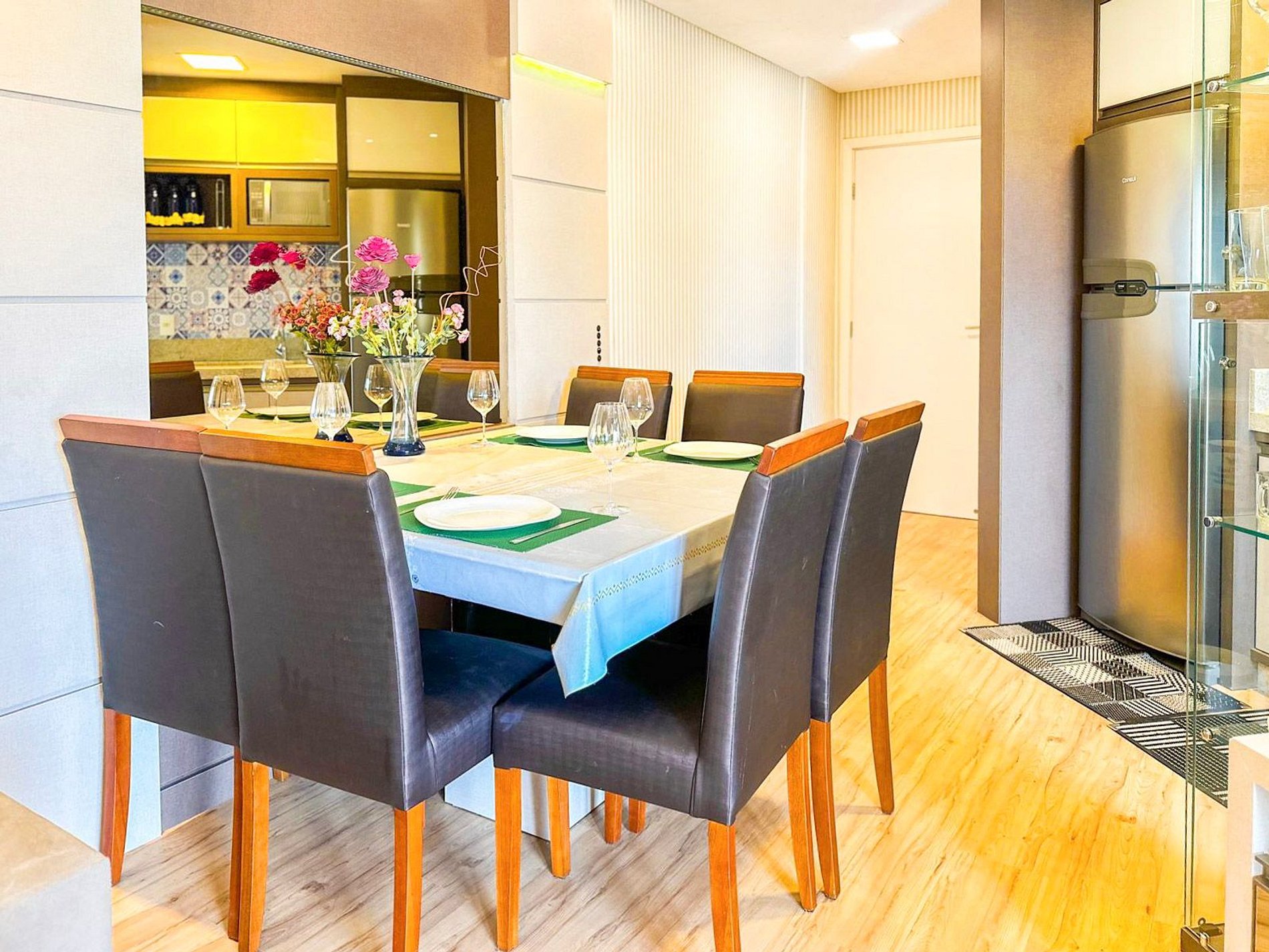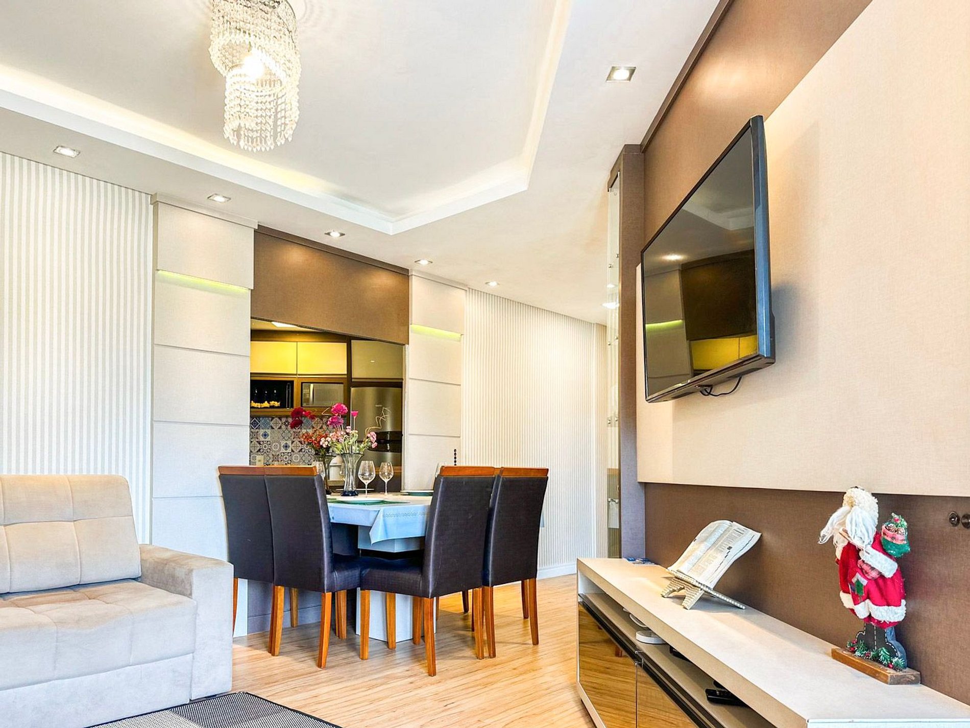 Apartamento com 2 quartos aconchegantes, sendo uma suíte, ampla sala, cozinha completa. Destaque para a sacada integrada com sala com churrasqueira, perfeita para momentos de confraternização.