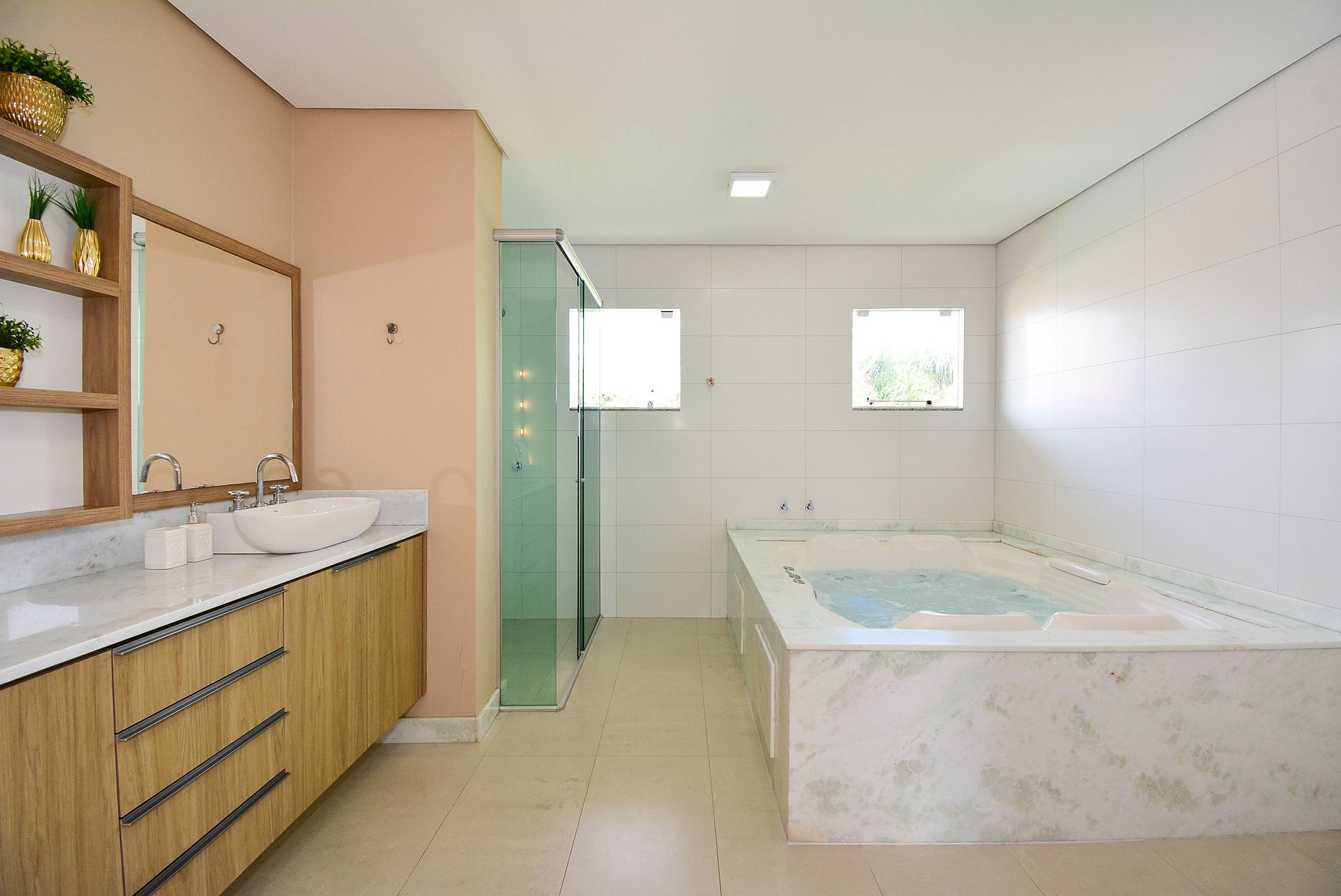 A casa acomoda confortavelmente até 10 pessoas e dispõe de quatro quartos: um quarto no térreo com uma cama de solteiro e uma cama auxiliar de solteiro, comodidade e conforto; duas suítes, cada uma equipada com uma cama de casal, garantindo privacidade e um ambiente acolhedor para descanso; e uma suíte master equipada com uma cama king-size e uma banheira de hidromassagem, ideal para momentos de relaxamento e conforto. Uma sala de tv com um colchão extra de viúva. Para seu maior conforto, forneça roupas de cama e banho de alta qualidade.