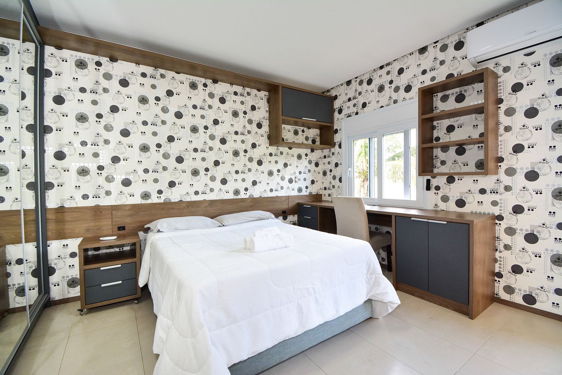 A casa acomoda confortavelmente até 10 pessoas e dispõe de quatro quartos: um quarto no térreo com uma cama de solteiro e uma cama auxiliar de solteiro, comodidade e conforto; duas suítes, cada uma equipada com uma cama de casal, garantindo privacidade e um ambiente acolhedor para descanso; e uma suíte master equipada com uma cama king-size e uma banheira de hidromassagem, ideal para momentos de relaxamento e conforto. Uma sala de tv com um colchão extra de viúva. Para seu maior conforto, forneça roupas de cama e banho de alta qualidade.
