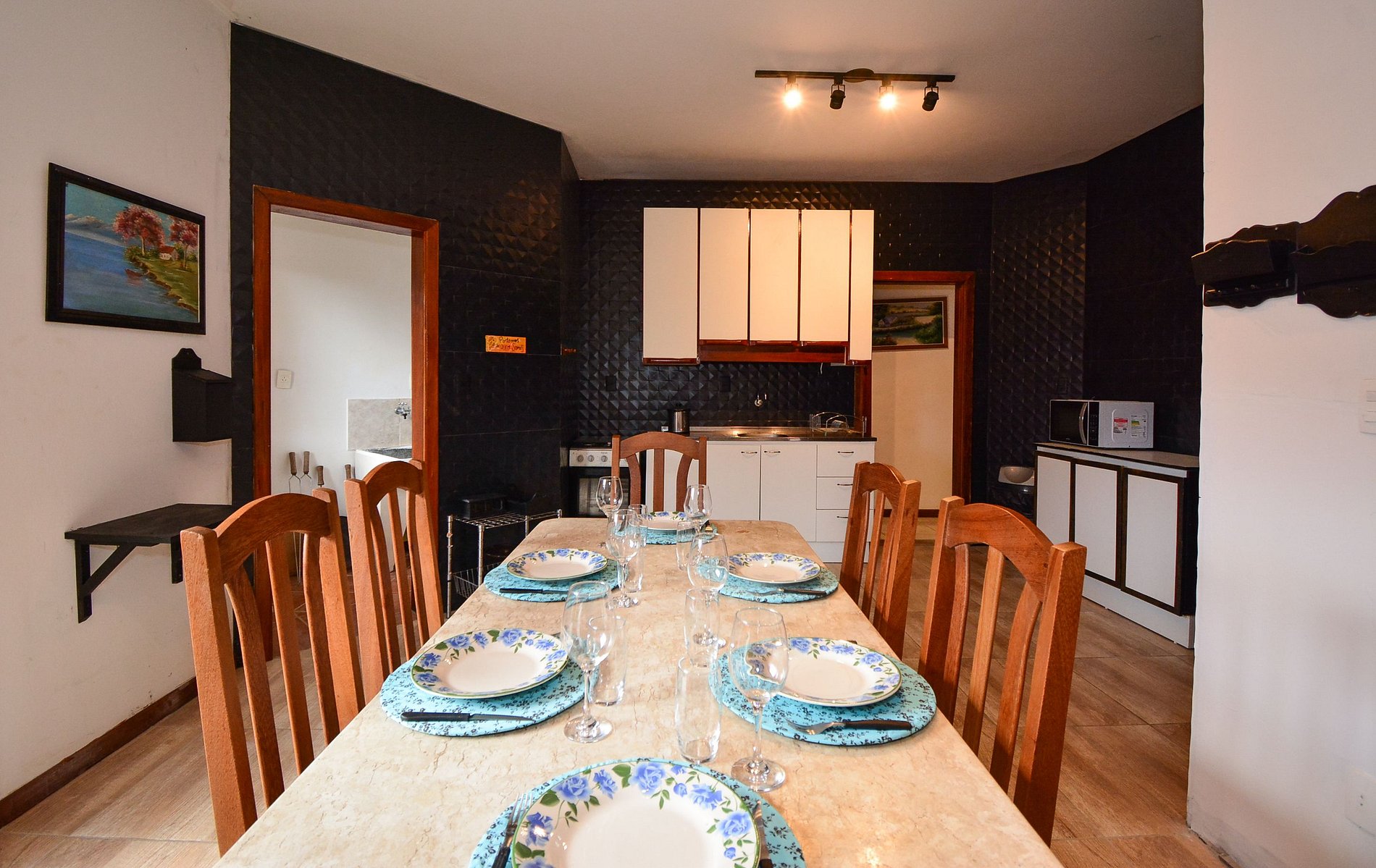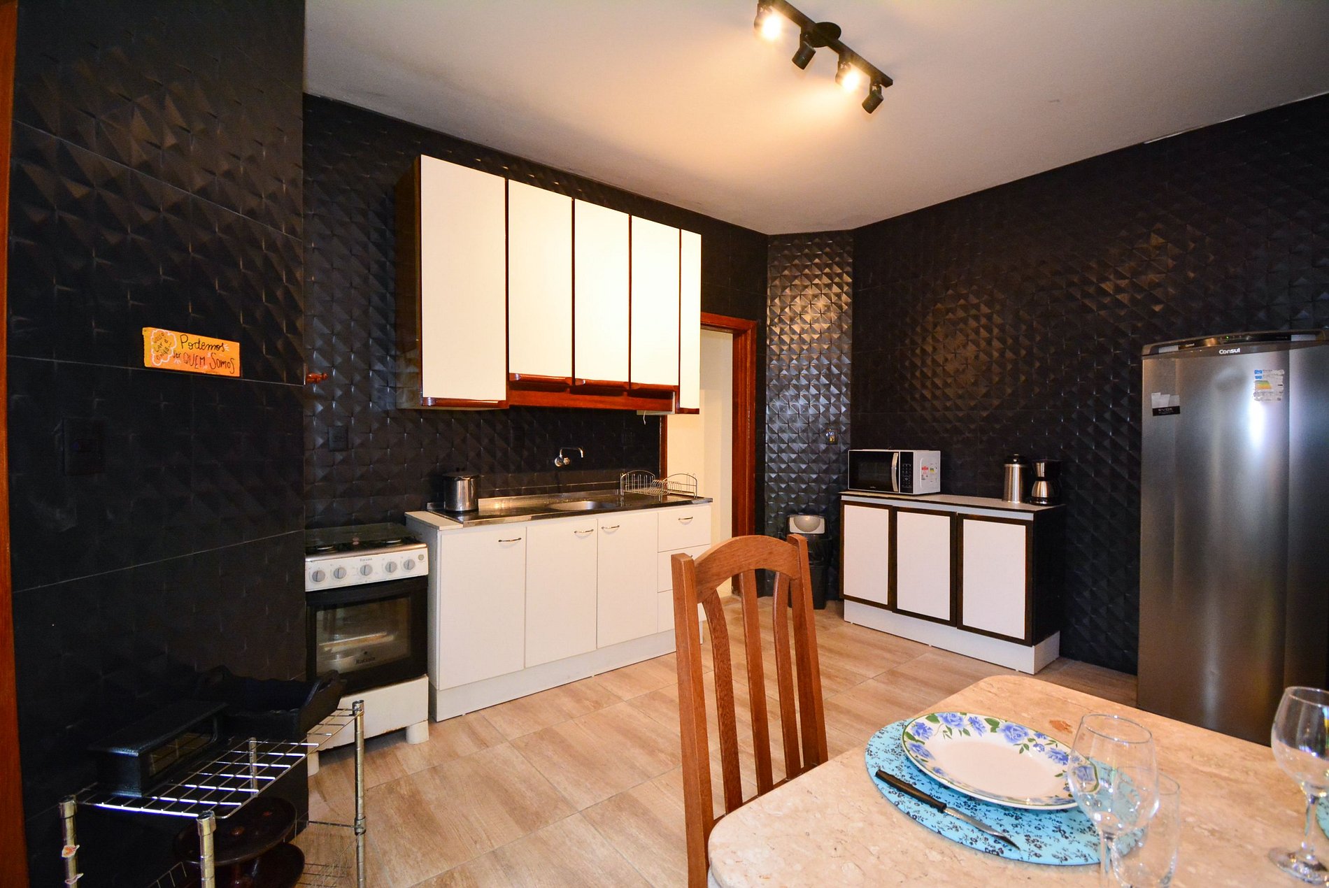 A sala é espaçosa e acolhedora, equipada com uma TV de tela plana para entretenimento. A cozinha é completa e bem equipada com todos os utensílios necessários, como geladeira, fogão, micro-ondas, cafeteira, panelas, pratos, talheres, copos e taças permitindo que você prepare refeições como se estivesse em casa.