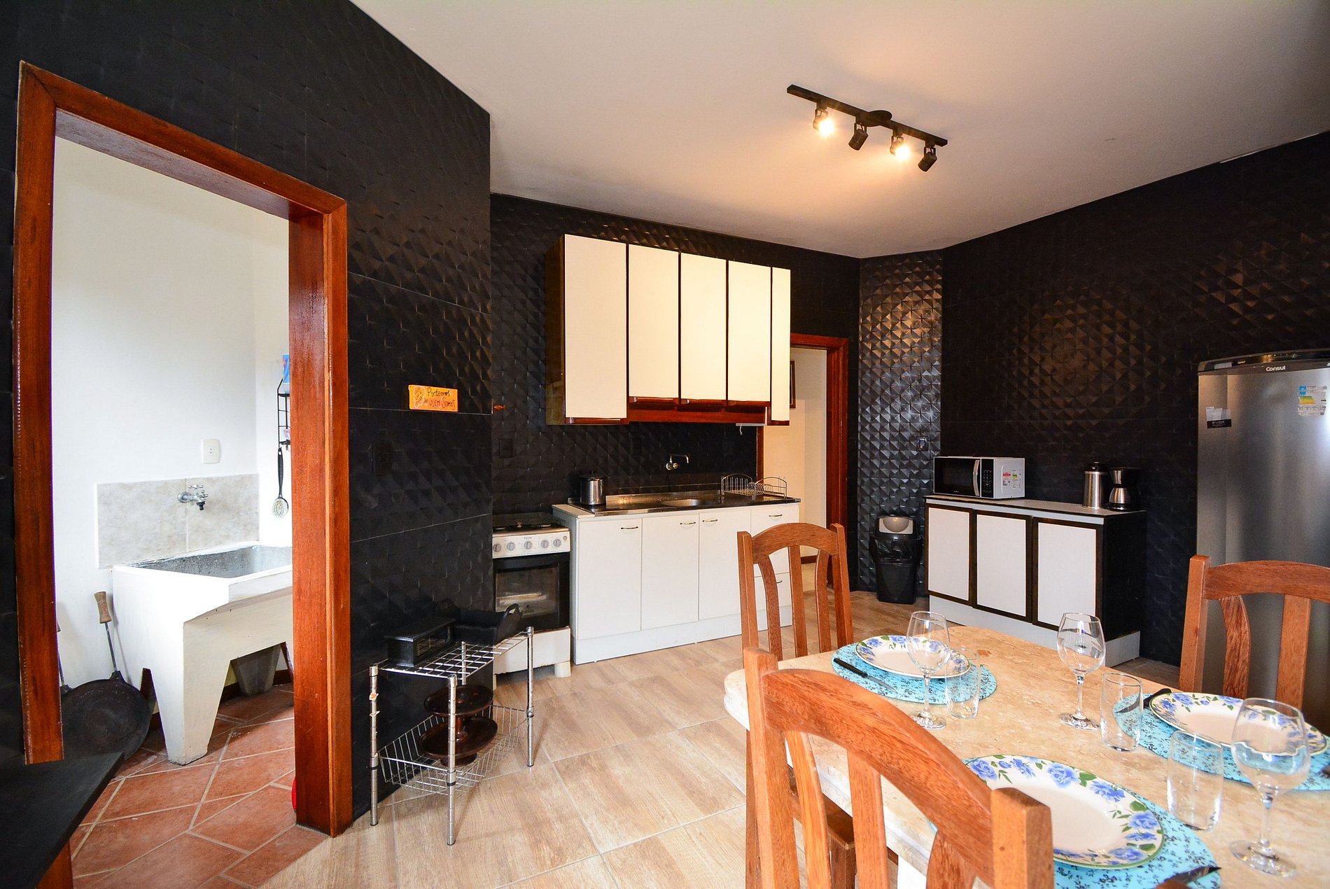 A sala é espaçosa e acolhedora, equipada com uma TV de tela plana para entretenimento. A cozinha é completa e bem equipada com todos os utensílios necessários, como geladeira, fogão, micro-ondas, cafeteira, panelas, pratos, talheres, copos e taças permitindo que você prepare refeições como se estivesse em casa.