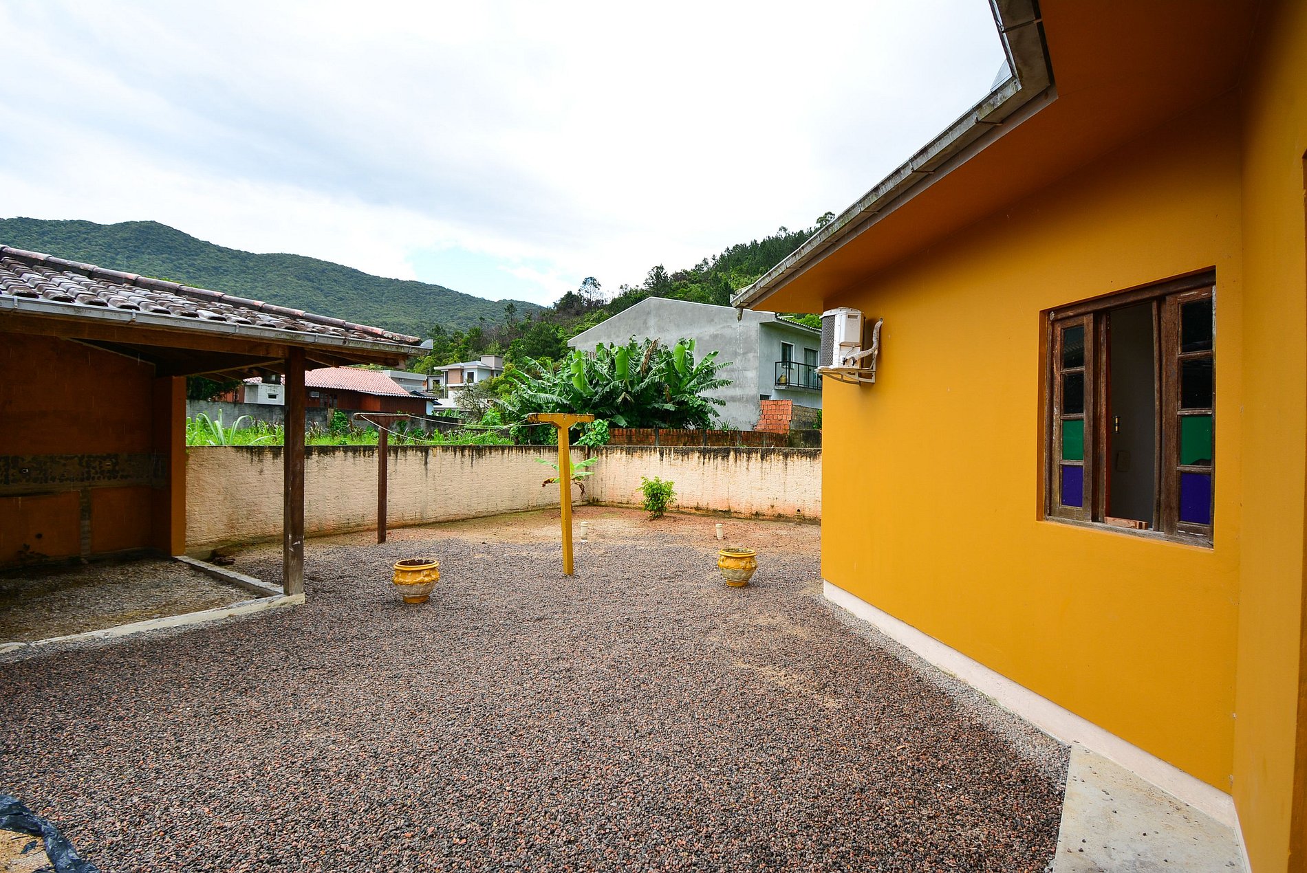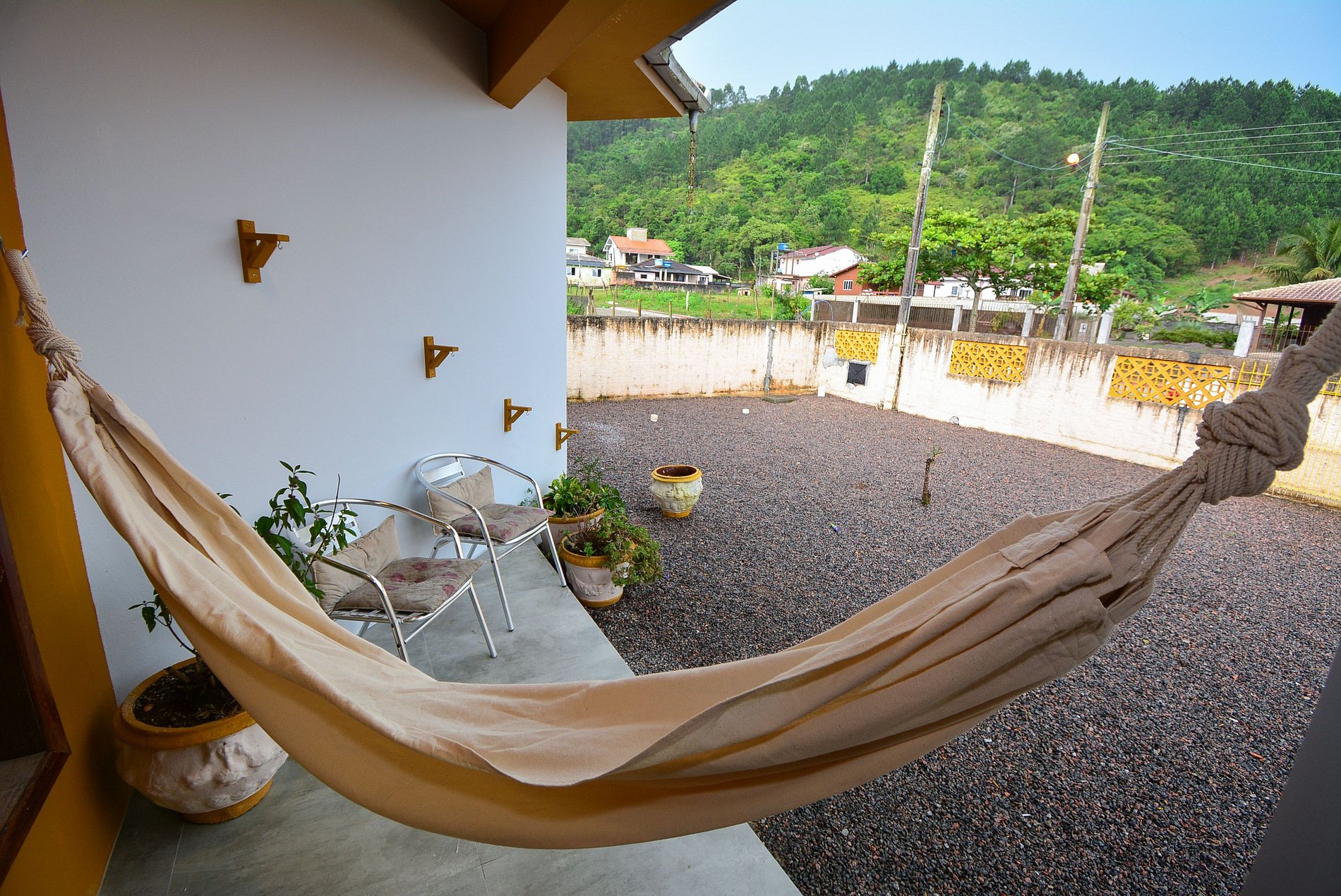 Na varanda, você encontrará uma rede de descanso, perfeita para relaxar. A casa conta com um grande pátio frontal, ideal para estacionar veículos ou para atividades ao ar livre, e um amplo pátio traseiro, com muito espaço para as crianças brincarem.