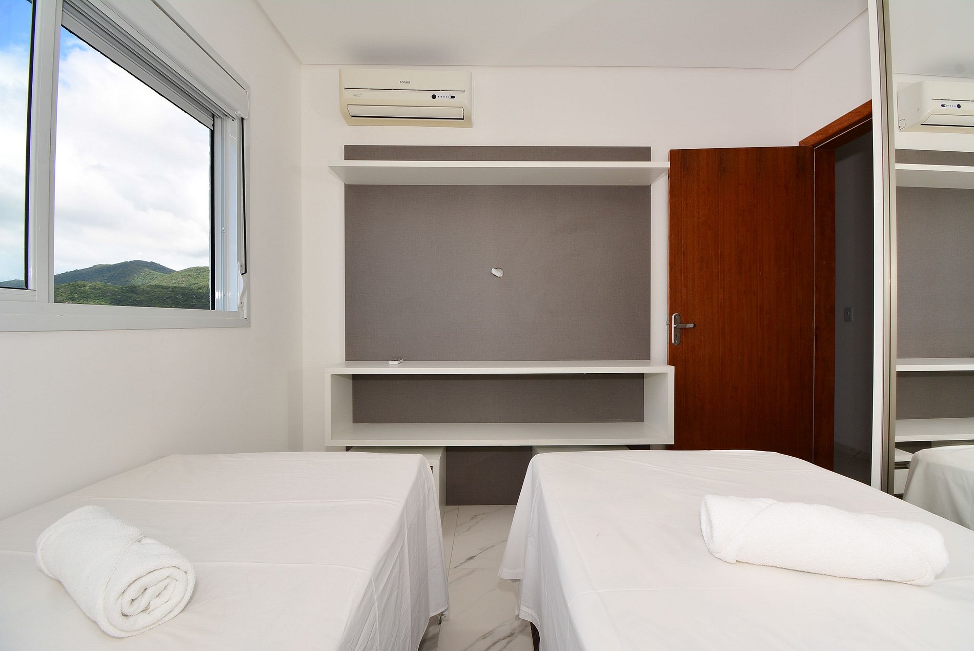Conta com uma cozinha completa e equipada, uma sala de estar confortável com sofá-cama, e dois quartos: um com duas camas de solteiro e uma suíte com cama de casal. Além disso, oferecemos dois colchões de solteiro extras para maior conveniência. Roupas de cama e banho estão incluídas para garantir seu conforto.