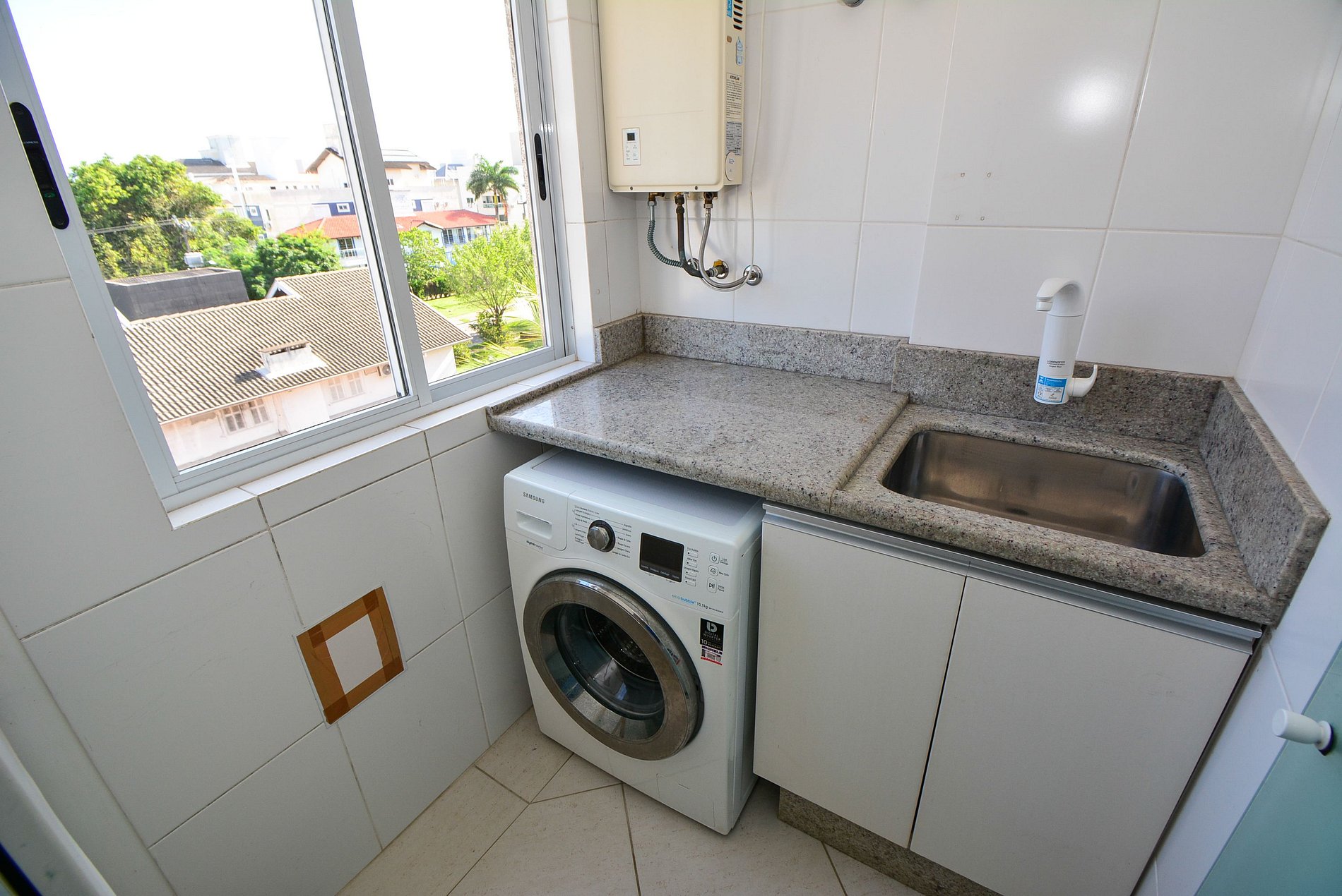 A cozinha moderna e totalmente equipada e com e uma churrasqueira privativa e todos os utensílios e eletrodomésticos necessários para preparar suas refeições com praticidade, além de contar com uma área de serviço com máquina de lavar roupas para maior comodidade.