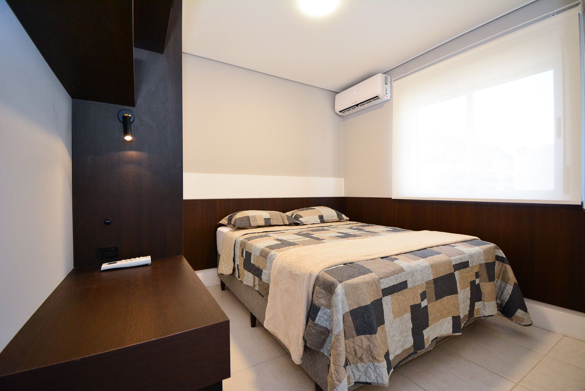 A cobertura possui três quartos confortáveis, todos equipados com ar-condicionado, sendo duas suítes e um terceiro quarto, além de um banheiro social. A suíte principal conta com cama queen e banheiro privativo, a segunda suíte oferece uma cama de casal, e o terceiro quarto possui cama queen, proporcionando noites tranquilas e aconchegantes.