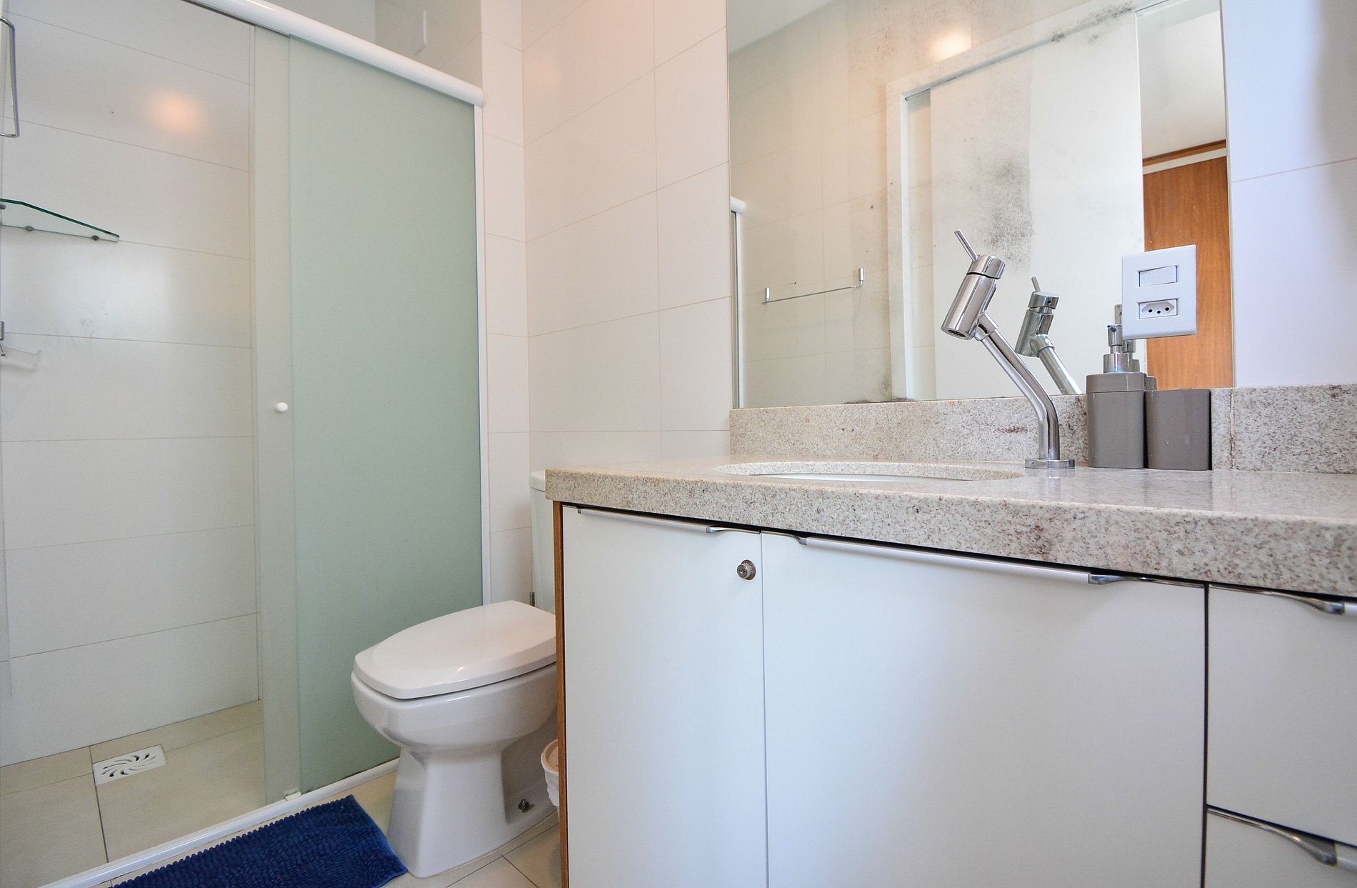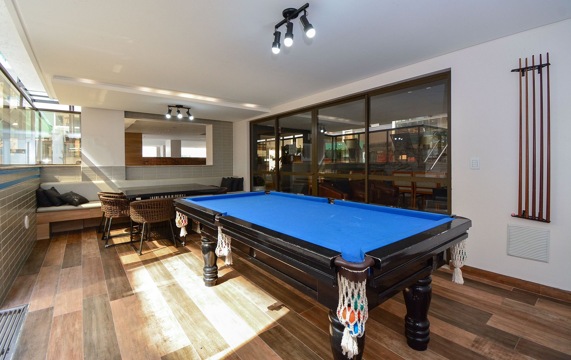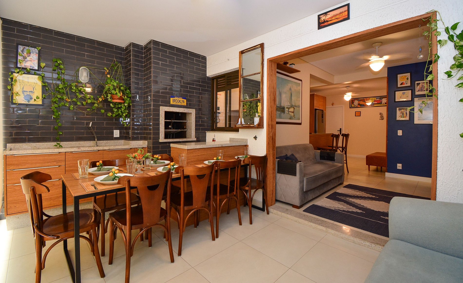 A sacada conta com uma churrasqueira privativa, perfeita para preparar refeições e desfrutar de momentos especiais com a família e amigos. As janelas retráteis permitem a abertura total do ambiente, proporcionando excelente ventilação natural e aproveitamento da luz do dia, tornando o espaço ainda mais agradável. Quando fechadas, garantem conforto térmico e proteção contra vento ou chuva, permitindo que a área seja utilizada em qualquer época do ano. A disposição inteligente desse ambiente possibilita que os hóspedes desfrutem tanto de um espaço aberto e arejado quanto de um local mais reservado e aconchegante, conforme a necessidade.