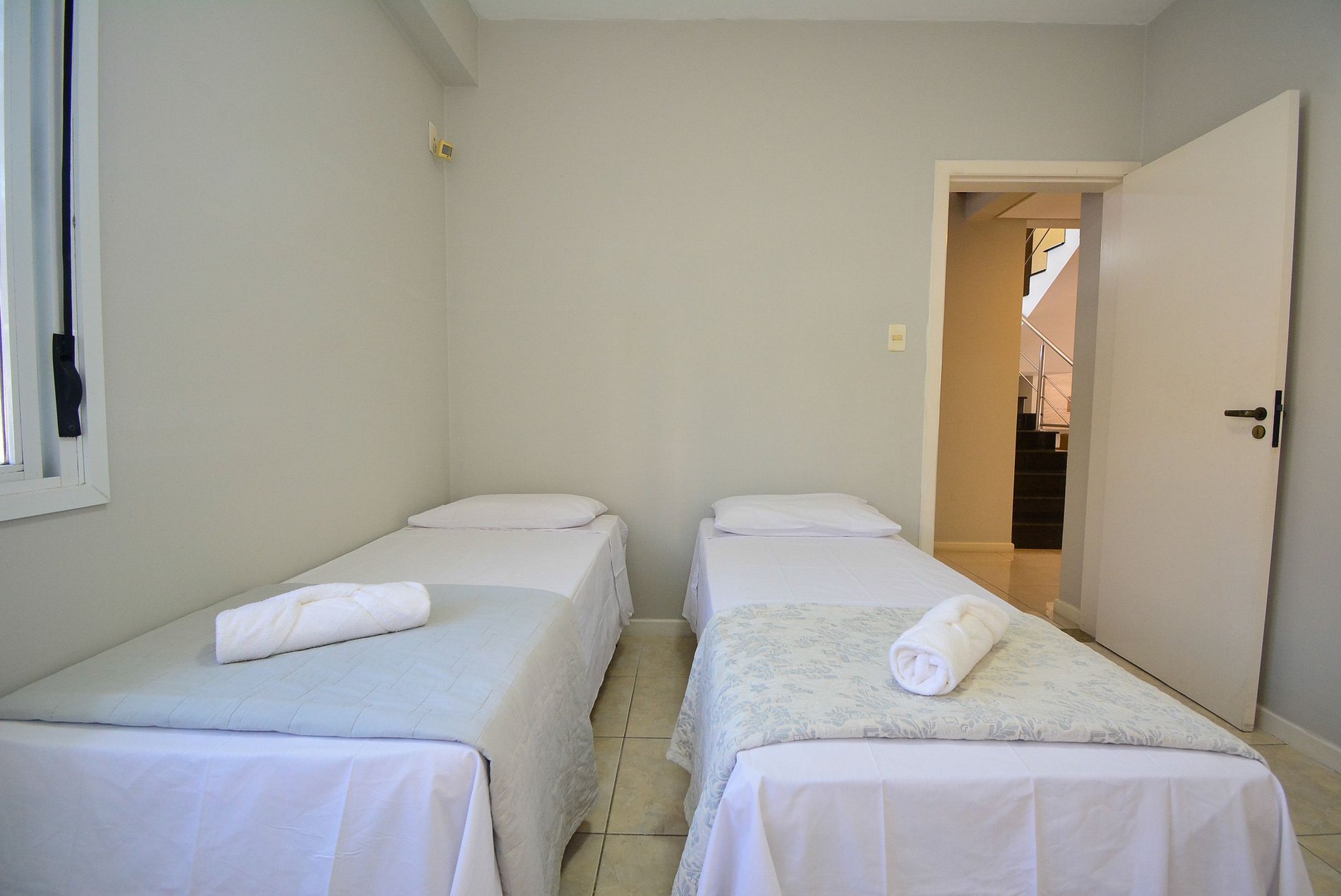 A casa possui 4 suítes climatizadas. No térreo, há uma suíte com duas camas de solteiro que podem ser unidas para formar uma cama de casal. No piso superior, estão três suítes aconchegantes, sendo uma com cama de casal, outra com cama queen e a suíte principal, que conta com cama queen e uma banheira de hidromassagem para relaxar. Além disso, disponibilizarmos um colchão extra de solteiro para maior flexibilidade. Para quem precisa conciliar lazer e trabalho, dois quartos possuem mesas de escritório e também oferece conexão Wi-Fi de alta velocidade, garantindo um espaço tranquilo e confortável para home office.