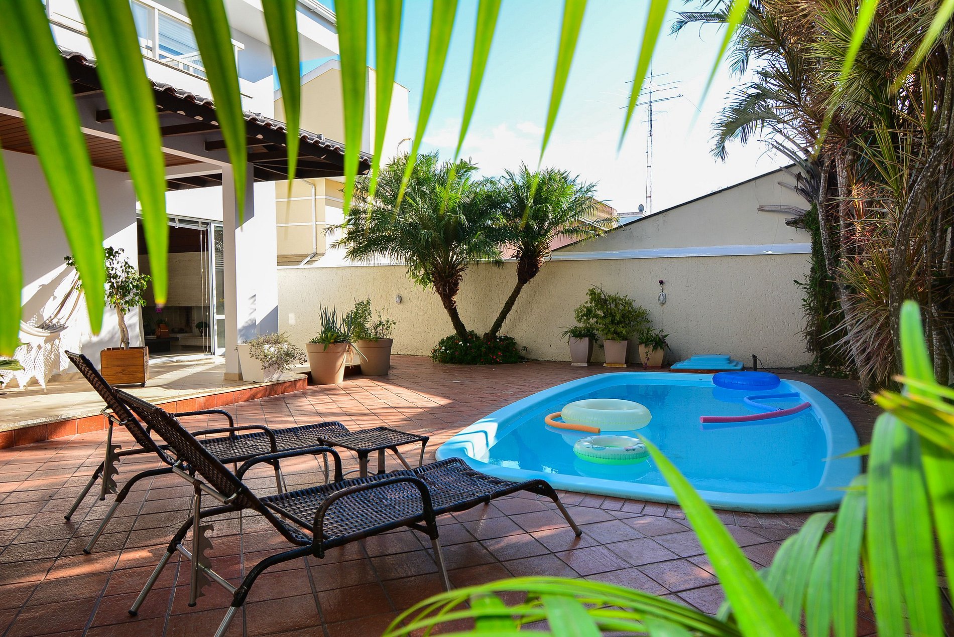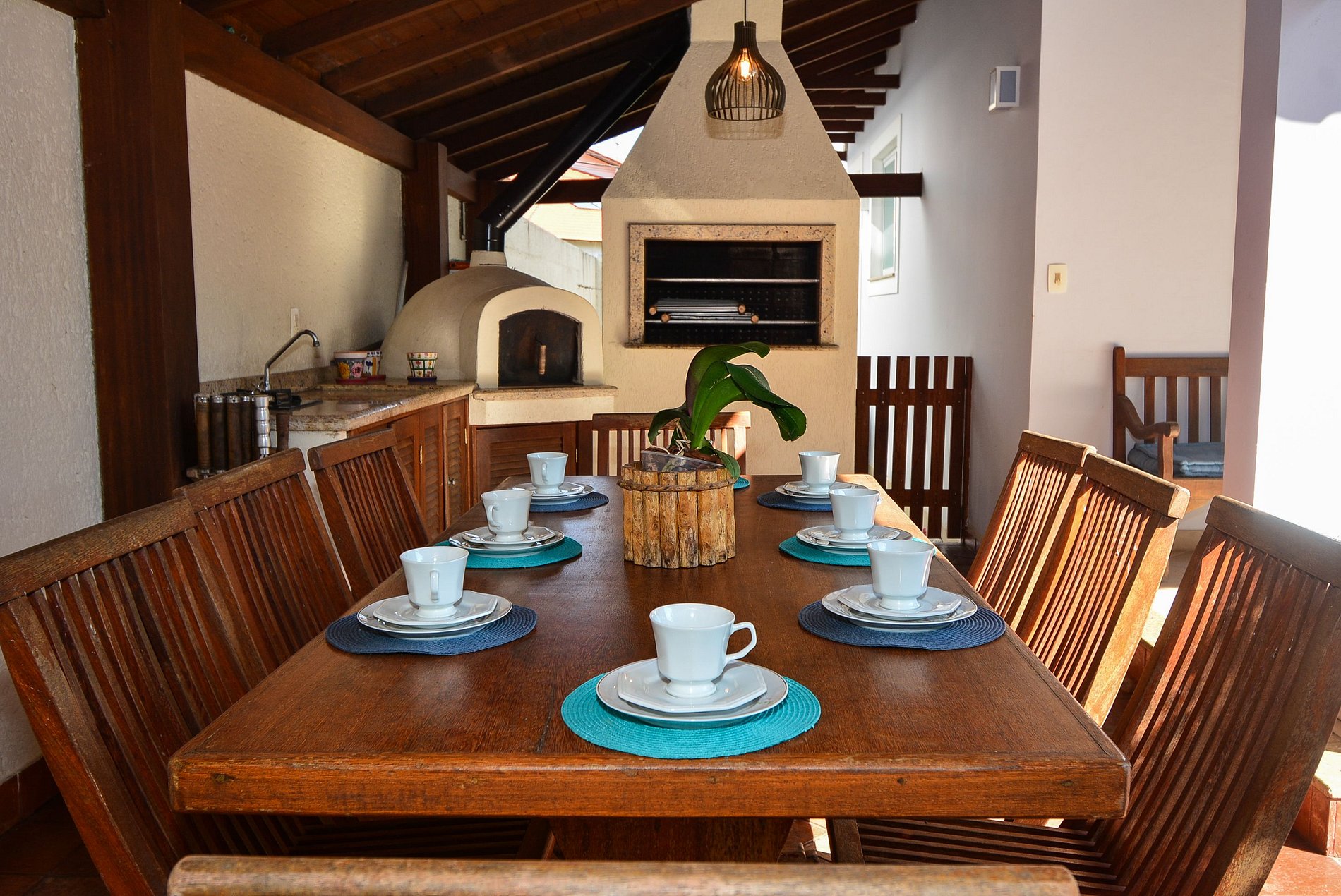 A área externa é um dos grandes destaques, oferecendo piscina, jardim e um espaço gourmet muito agradável, com churrasqueira, forno de pizza e uma mesa espaçosa, ideal para confraternizações. Cada detalhe foi pensado para proporcionar momentos inesquecíveis.